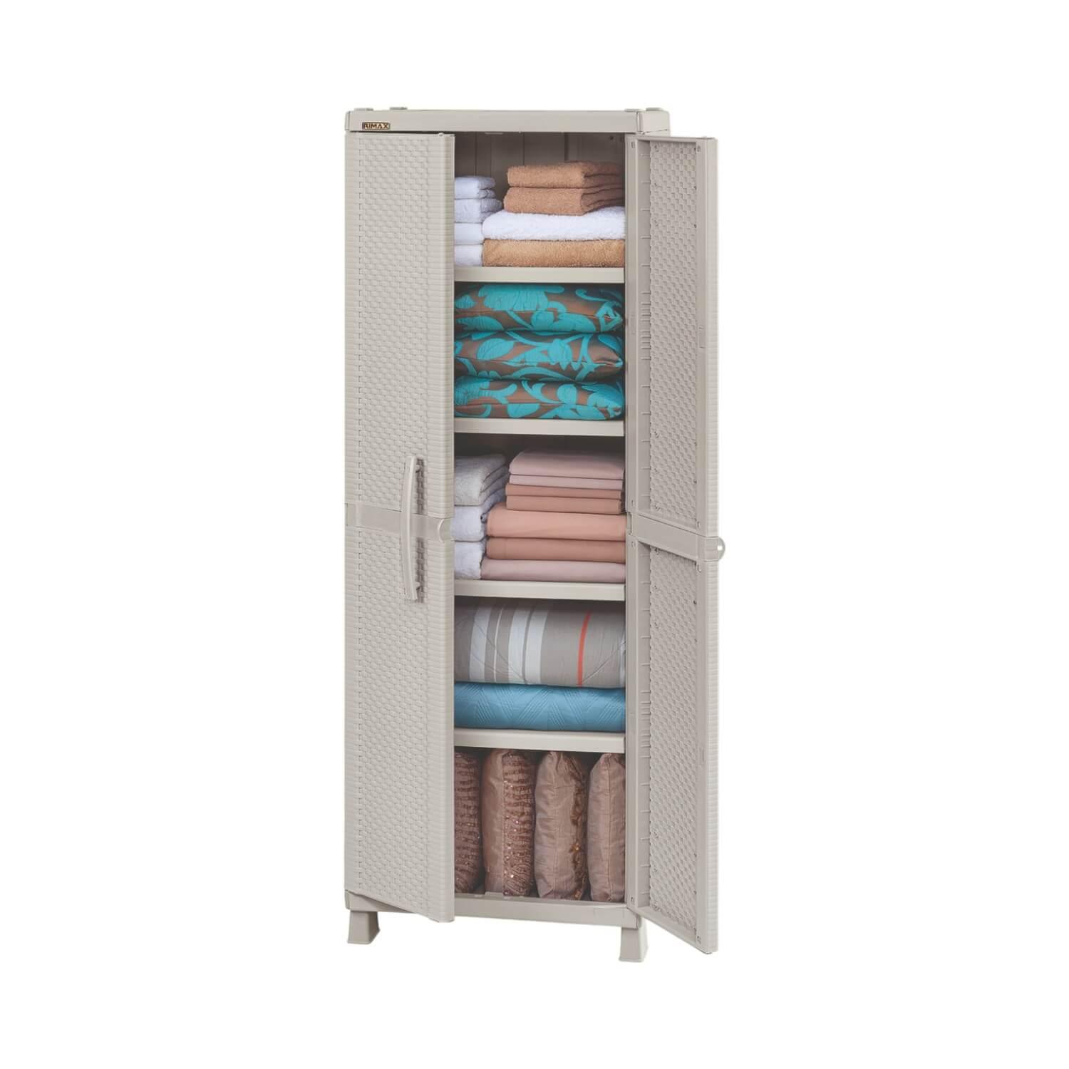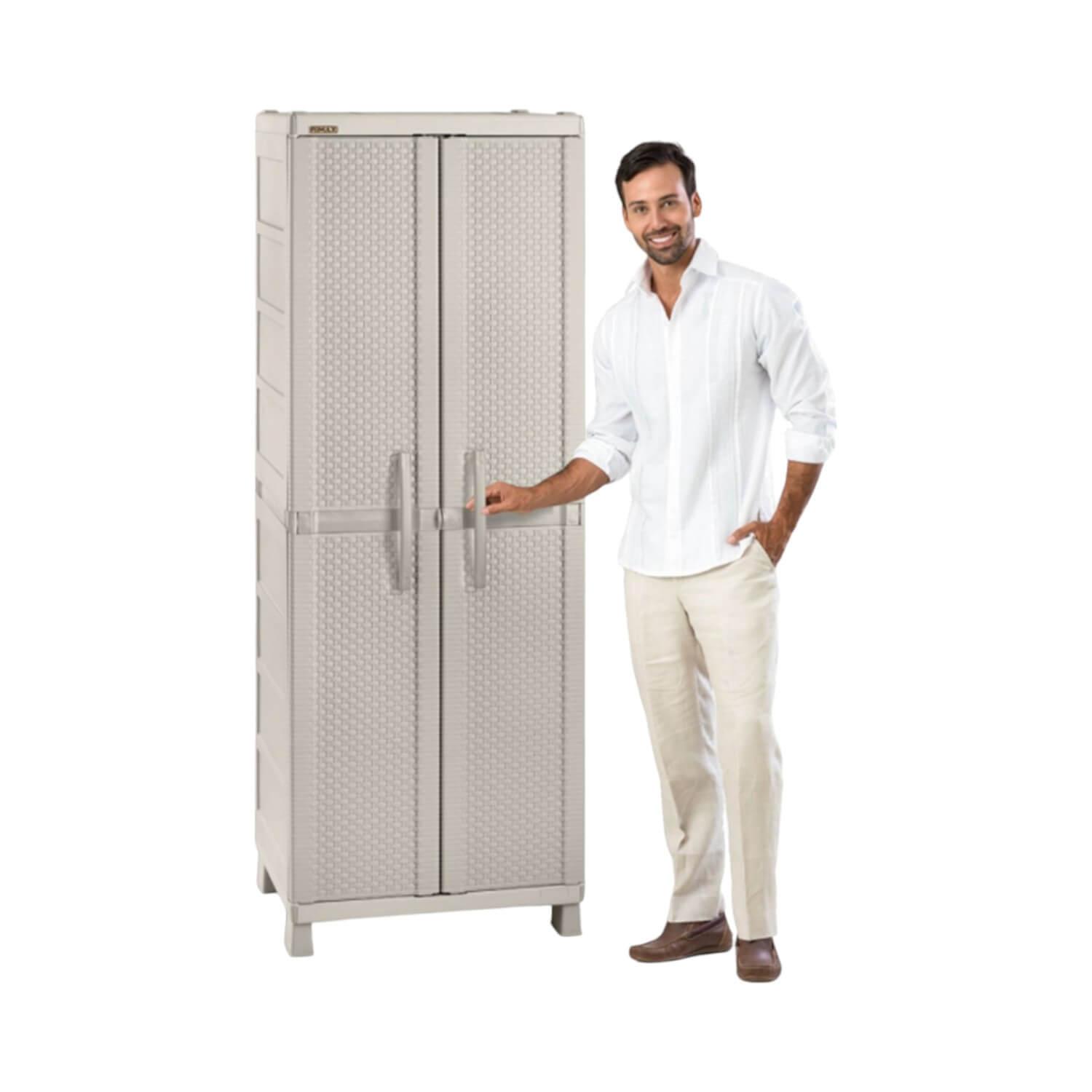 Imagina abrir las puertas de este armario y sentir una ola de tranquilidad y orden. Cada estante, cada compartimento es como un lienzo en blanco esperando ser llenado con tus pertenencias más preciadas. La textura y el tono del rattan taupe añaden un toque de distinción, creando un ambiente cálido y acogedor en cualquier rincón de tu hogar.