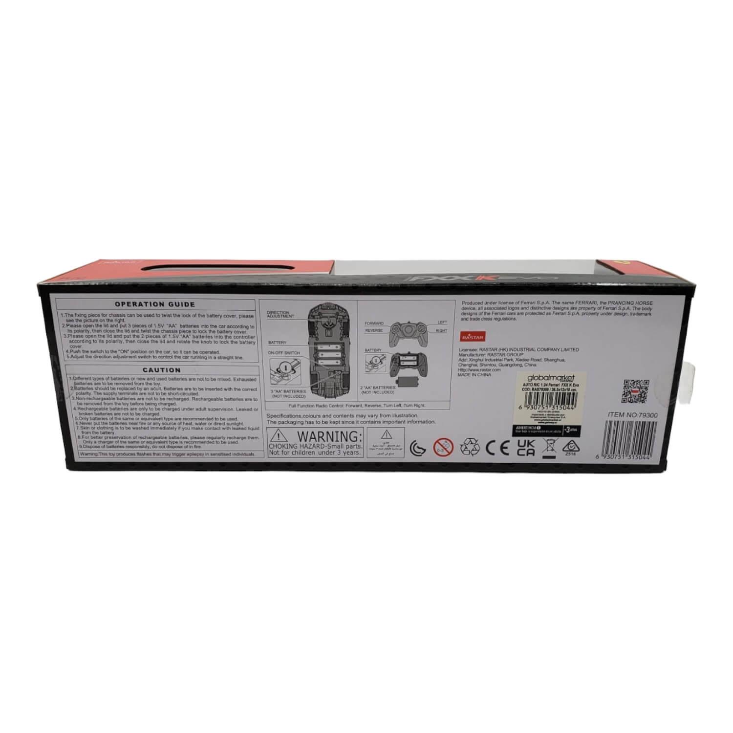• El modelo Ferrari Fxx-k funciona bien en superficies lisas, apto para jugar en interiores y exteriores.