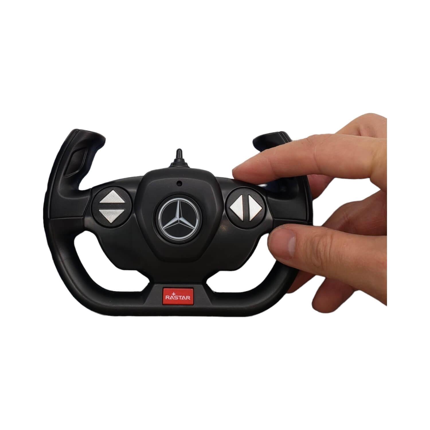¡Vive la emoción con el auto radiocontrolado Mercedes-Benz de Rastar! Diseñado para +6 años, este modelo blanco avanza, retrocede y gira con autenticidad, mientras las luces delanteras y traseras iluminan el camino de la diversión.