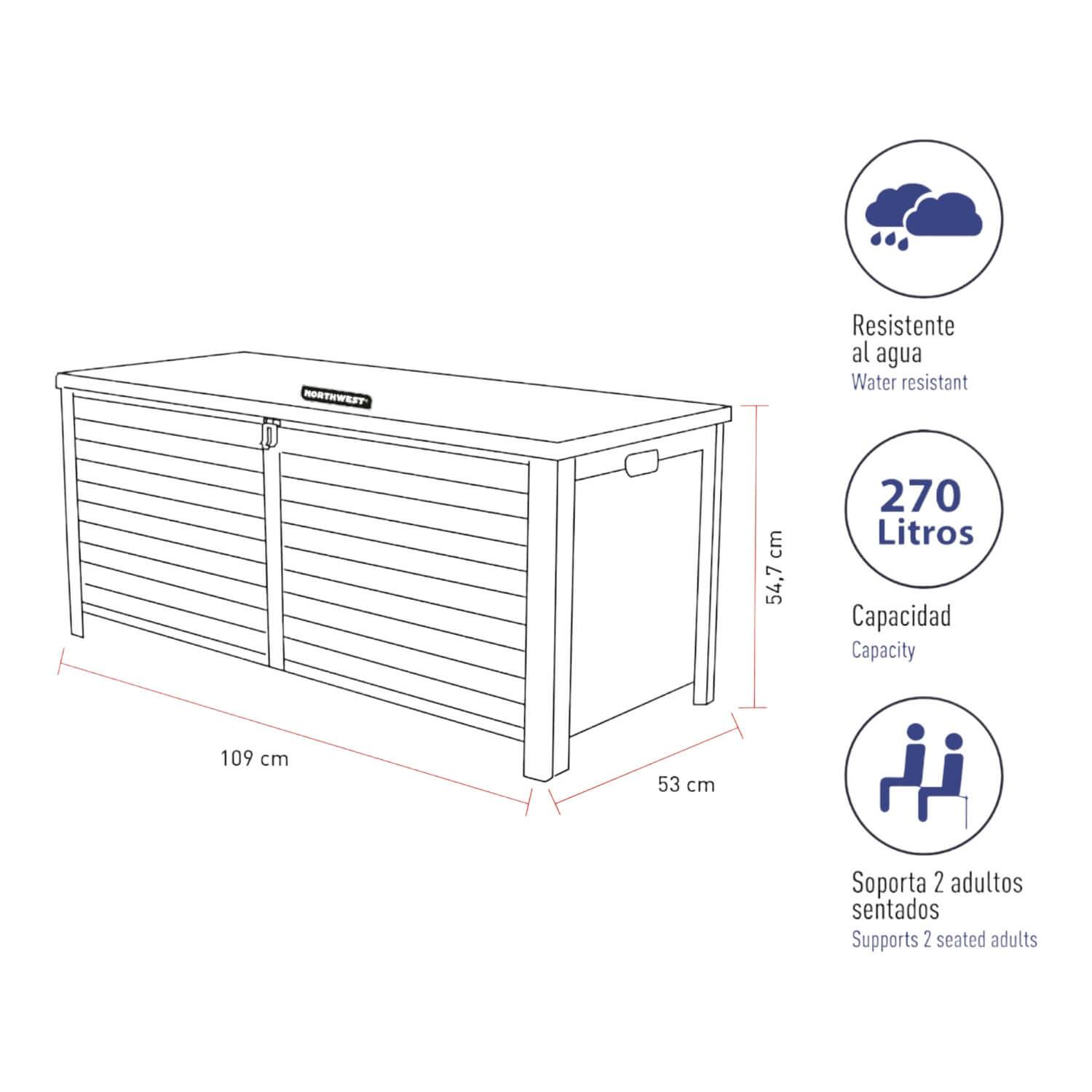 Baúl Bodega Caja Almacenaje 270L Gris Northwest