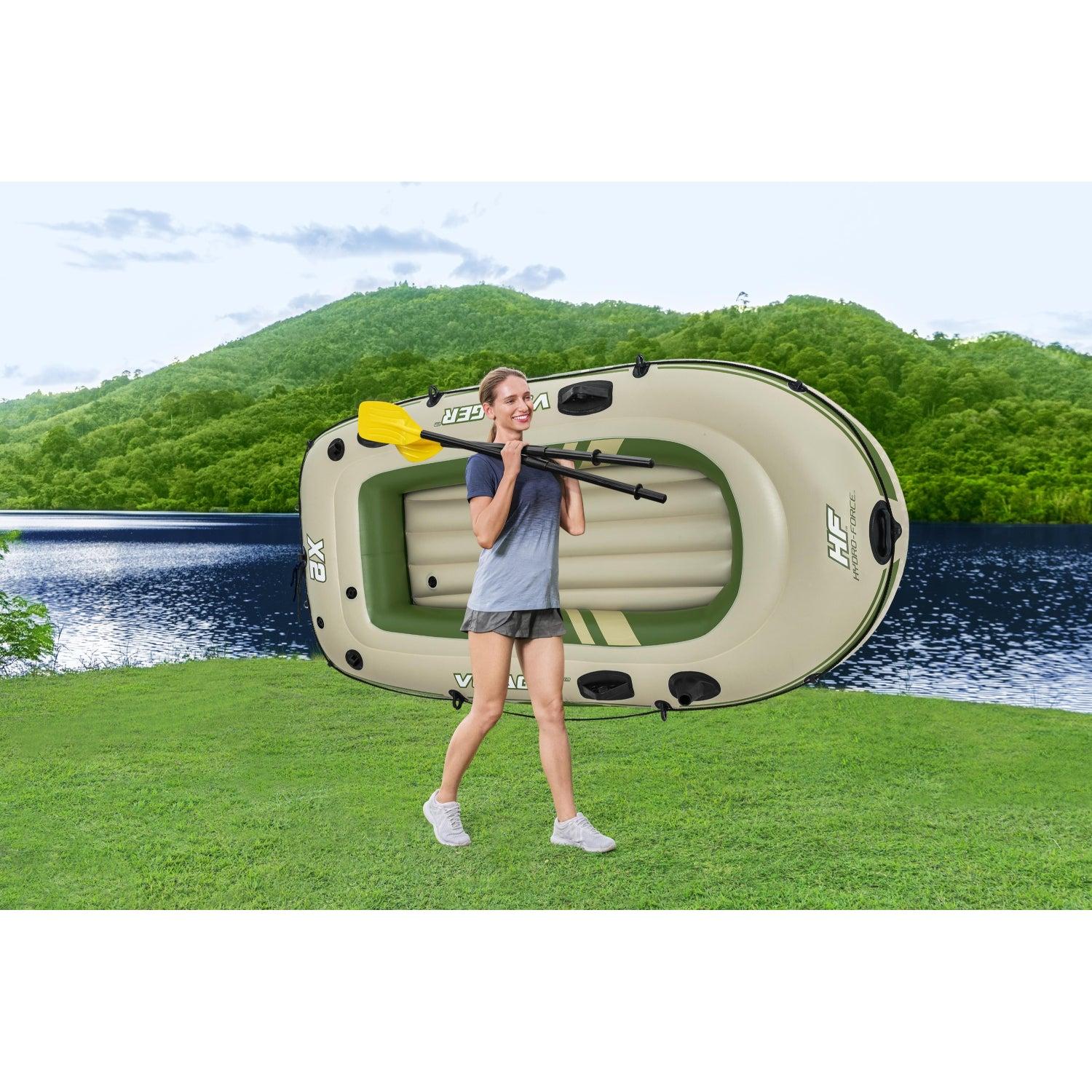 • Contenido: 1 bote, 1 par de remos, 1 bomba manual, 1 bolsa de transporte, parche de reparación