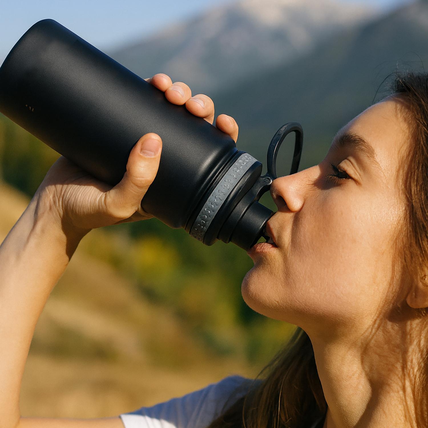 Su silueta estilizada, es cómoda de sujetar y fácil de transportar en mochila, bolso o portabotellas. La tapa plástica de alta resistencia, con cierre roscado y sistema antifugas, asegura que puedas moverte sin preocupaciones, manteniendo tu bebida segura y lista en todo momento. Ideal para quienes valoran la funcionalidad sin renunciar a un diseño moderno y atemporal.