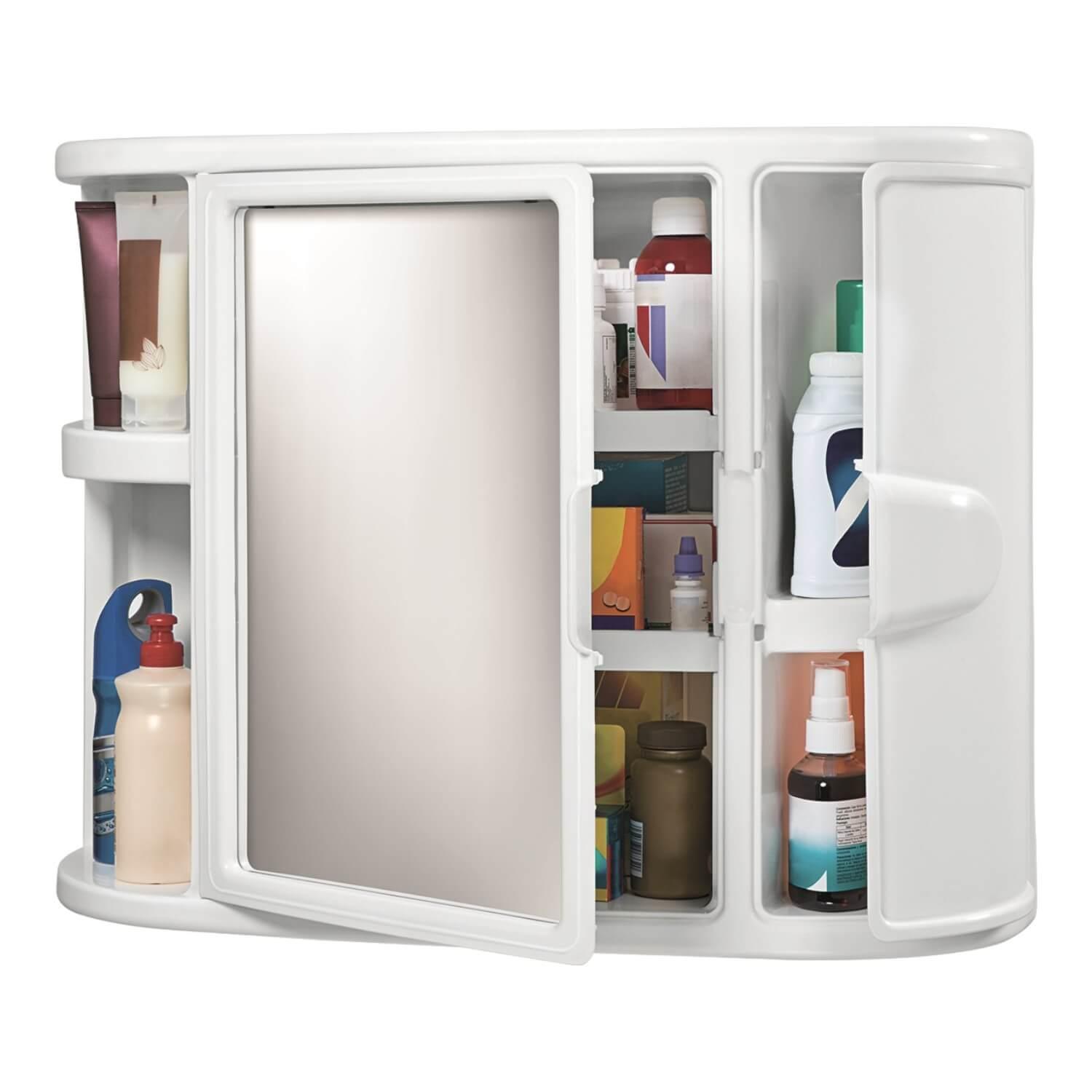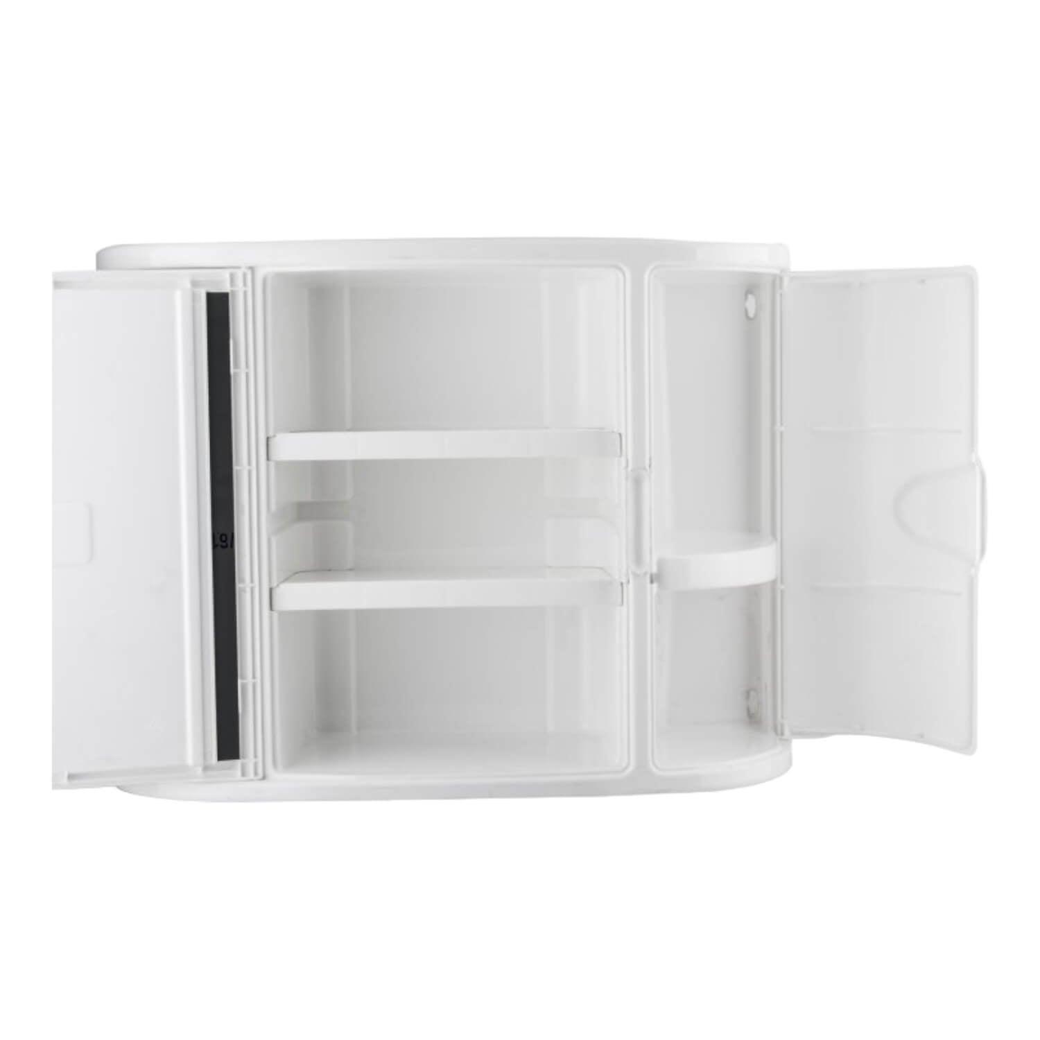 Gabinete para baño con espejo, ideal para uso en el baño por que es resistente a la humedad. Con tres espacios independientes para almacenar, dos puertas, una de ellas con espejo y 2 entrepaños removibles. No se oxida, fácil de limpiar y de cuidar.