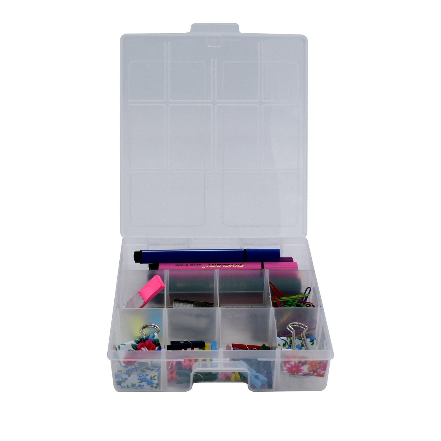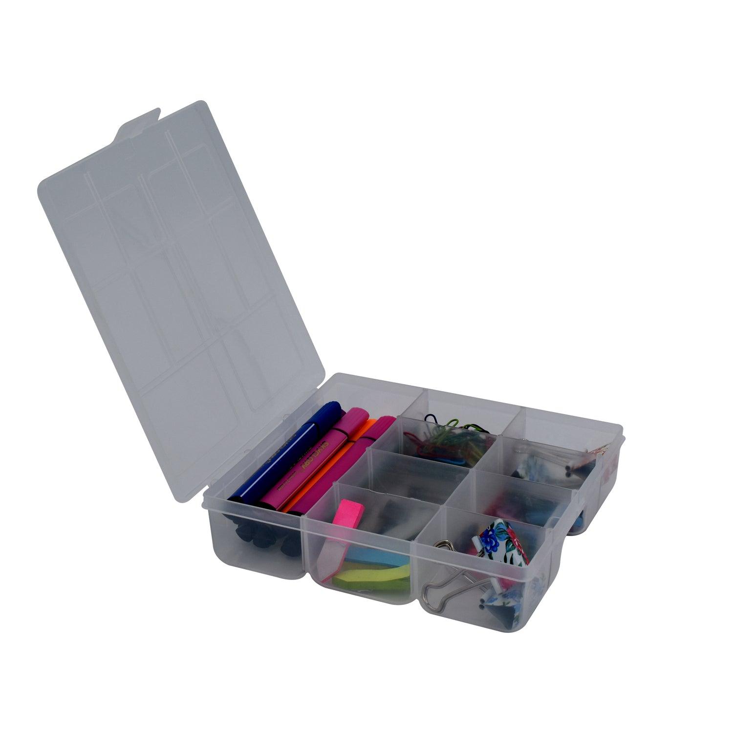 Caja Organizadora plástica con divisiones internas para clasificar y guardar objetos y accesorios pequeños. Ideal para botones, medicamentos, y elementos de manualidades. También se usa para tornillos y otros.