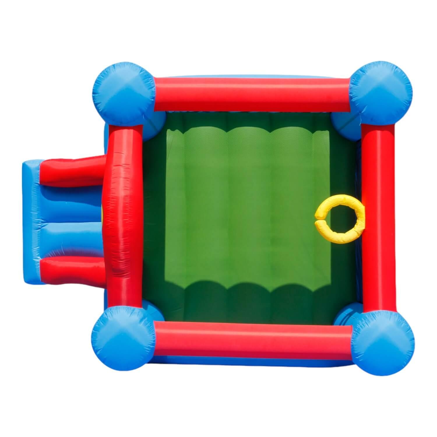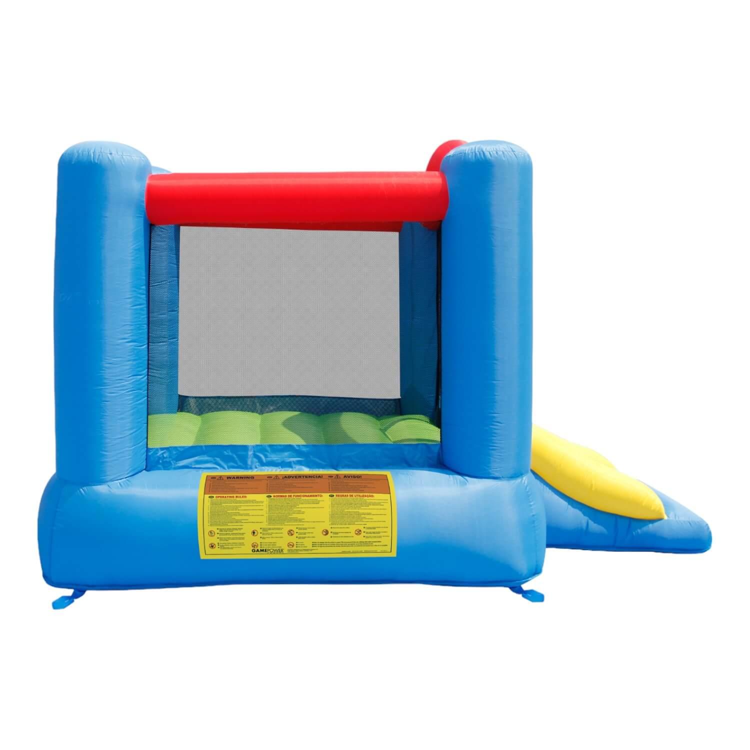 Incluye: 1 inflable, 1 turbina de inflado, 4 piquetas para anclaje, 1 bolsa de transporte, 1 kit de reparaciones, 4 piquetes de anclaje para turbina de anclado