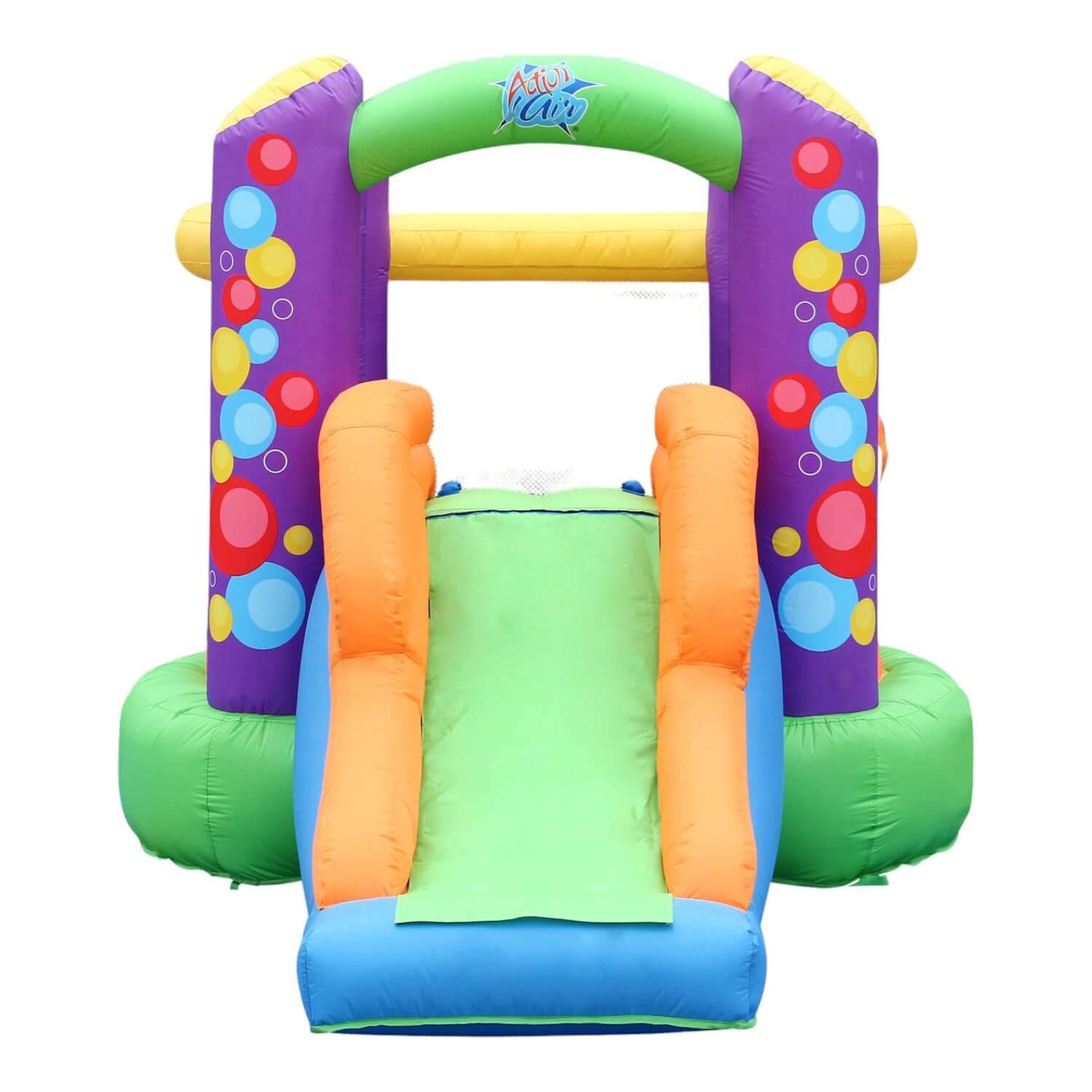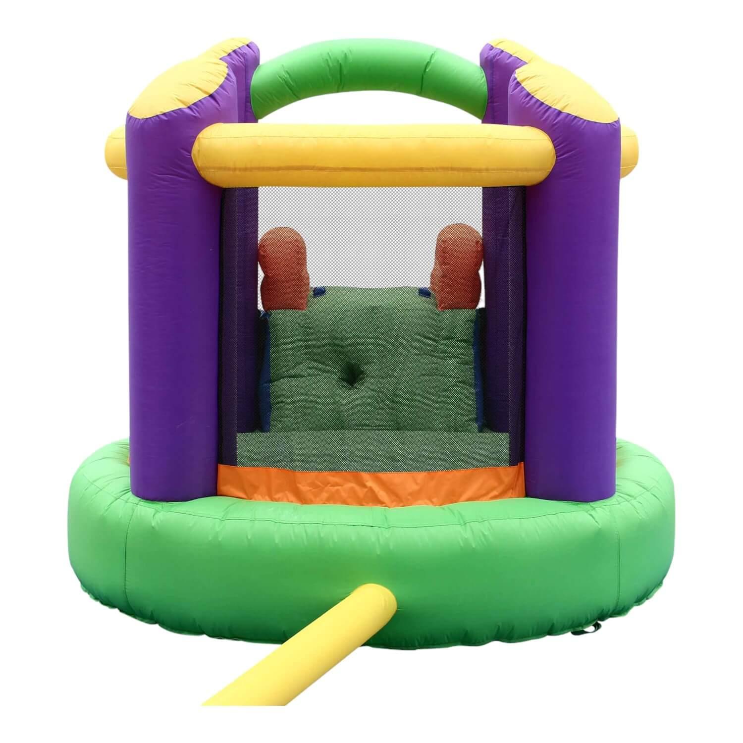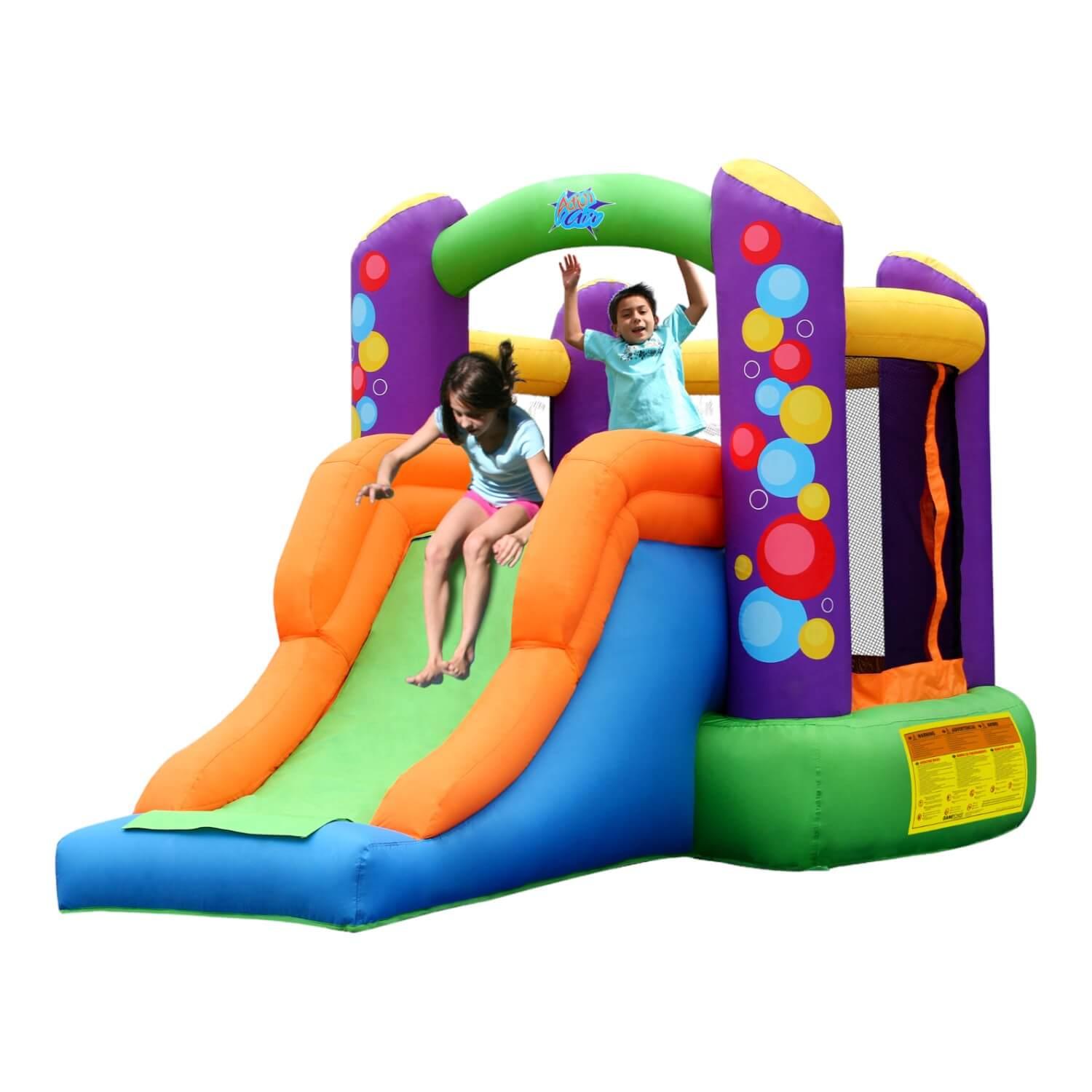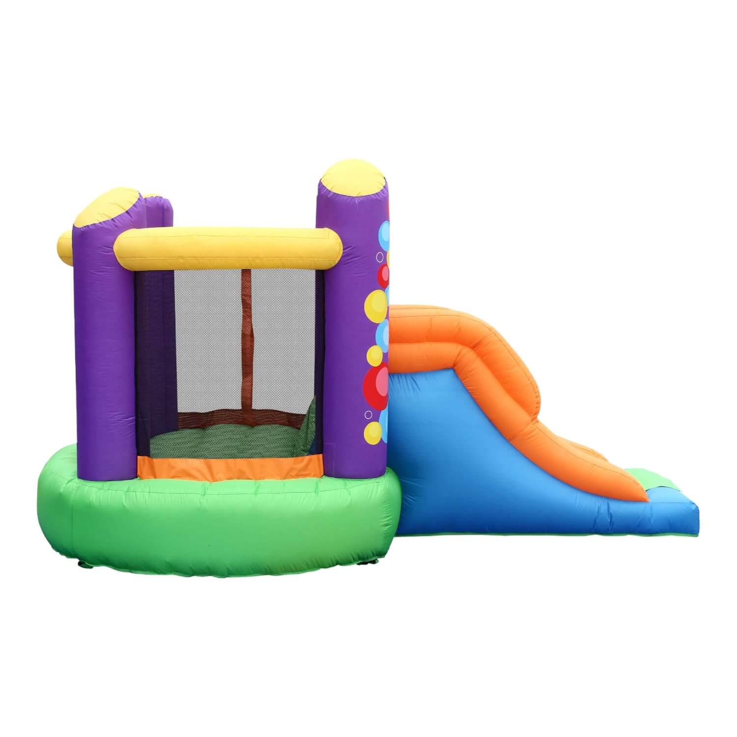 Incluye: 1 inflable, 1 turbina de inflado, 4 piquetas para anclaje, 1 bolsa de transporte, 1 kit de reparaciones, 4 piquetes de anclaje para turbina de anclado