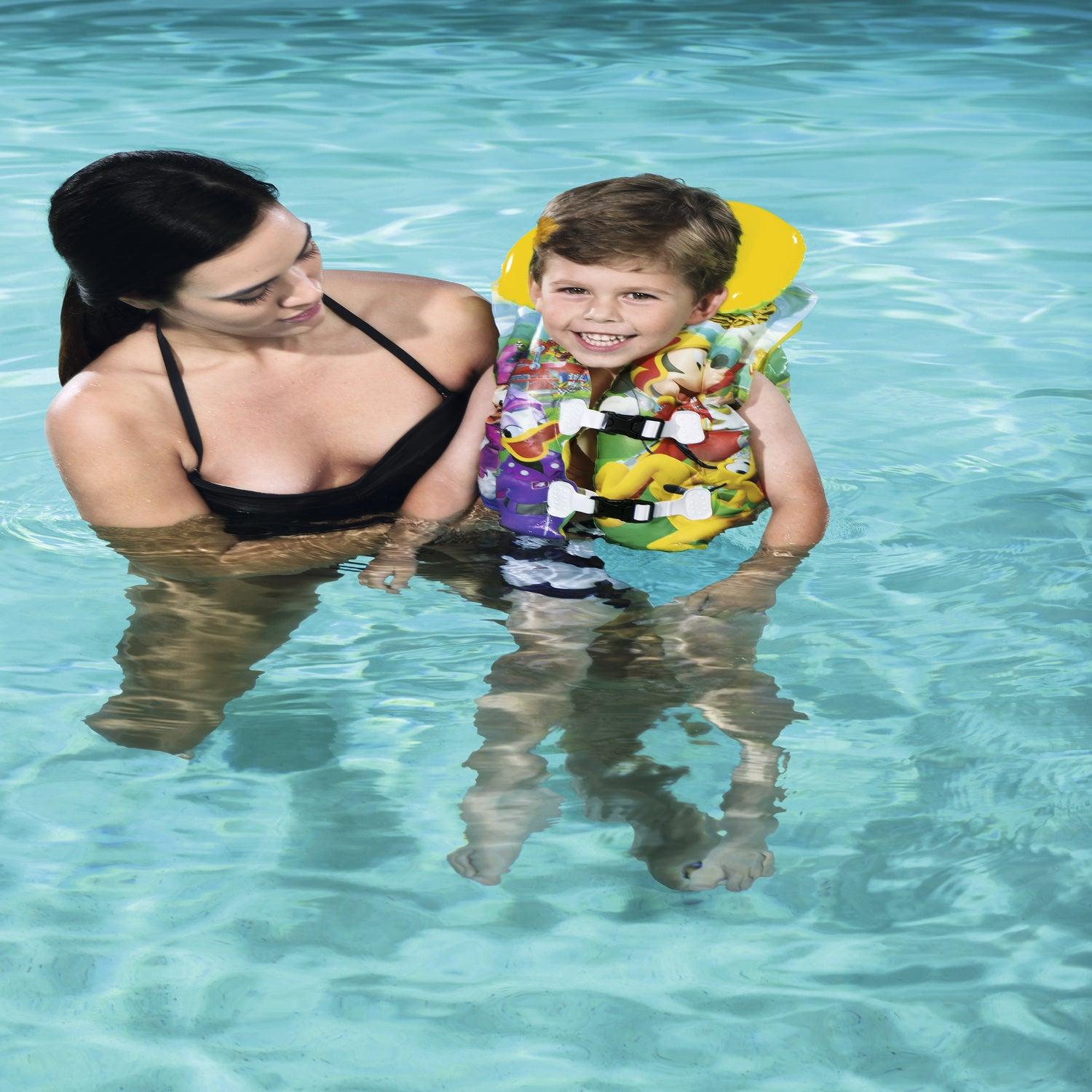 ¡Hay que prepararse para la diversión con el chaleco de La Casa de Mickey Mouse de Bestway! Este chaleco tiene un diseño brillante y colorido de Mickey y sus amigos. Con 2 hebillas ajustables de apertura rápida y un collarín hinchable, a los peques les encantará flotar en el agua. ¡El chaleco de natación de La Casa de Mickey Mouse hará que se diviertan chapoteando bajo el sol como nunca!