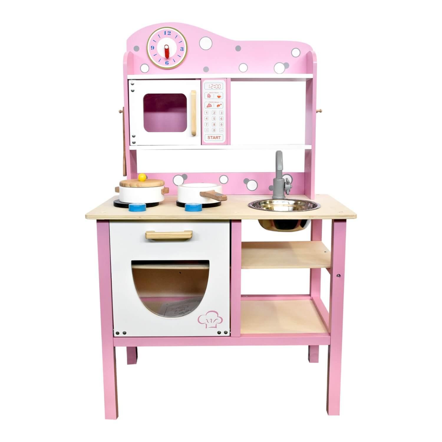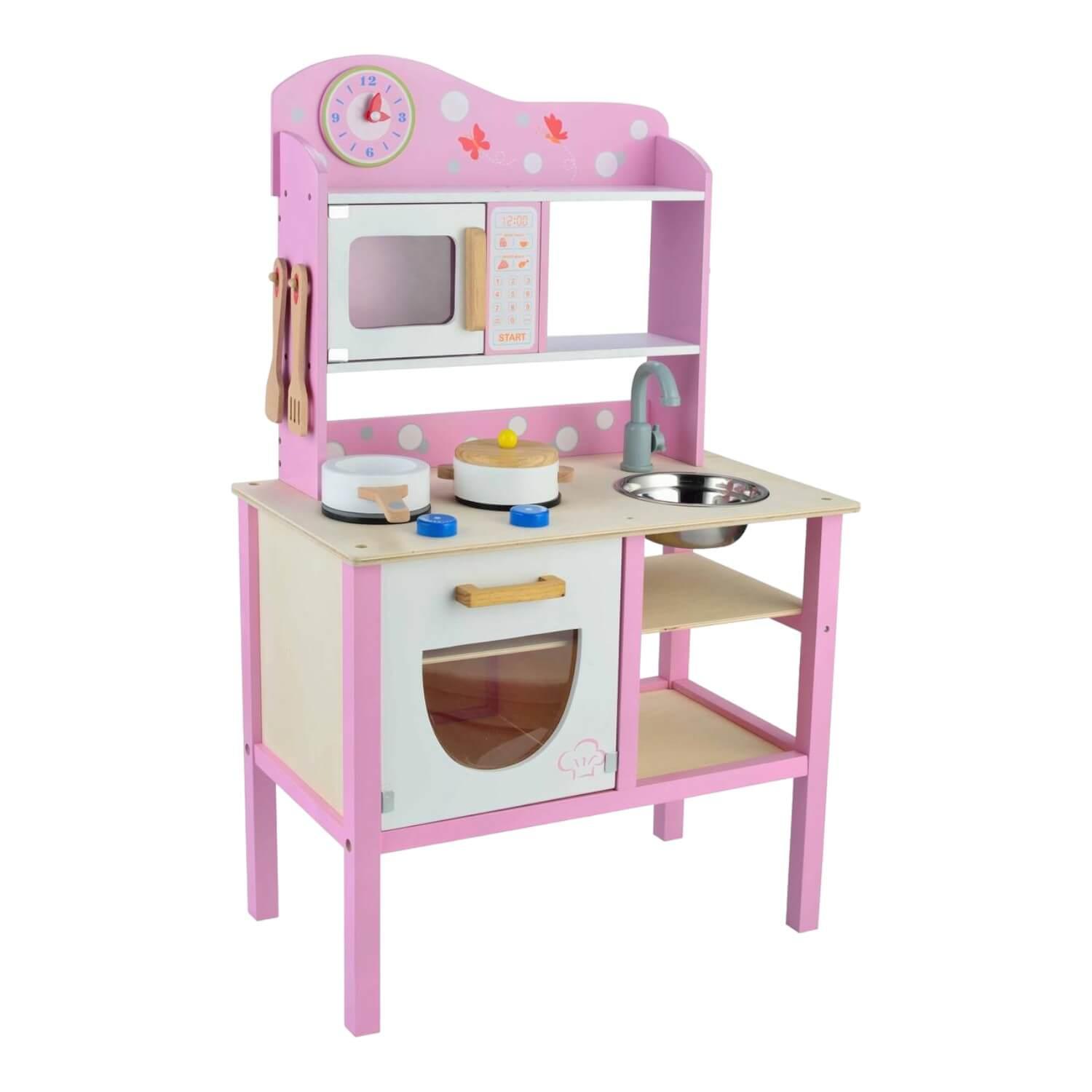 Las cocinitas de madera no pasan de moda. Y aunque no todas tengan sonidos espectaculares o luces, no los necesitan.Estas cocinitas de juguete tienen su propio encanto y les basta para conquistar a los peques.Su material es más resistente, más natural, y por la cantidad de modelos que hay puedes escoger para niños o niñas.Es un juguete didáctico ideal para que los niños desarrollen su creatividad y habilidades culinarias mientras juegan. Juego de roles que fomenta la imaginación y la creatividad de los niños, así como el desarrollo de habilidades importantes como sensoriales, afectivas y la coordinación mano-ojo.