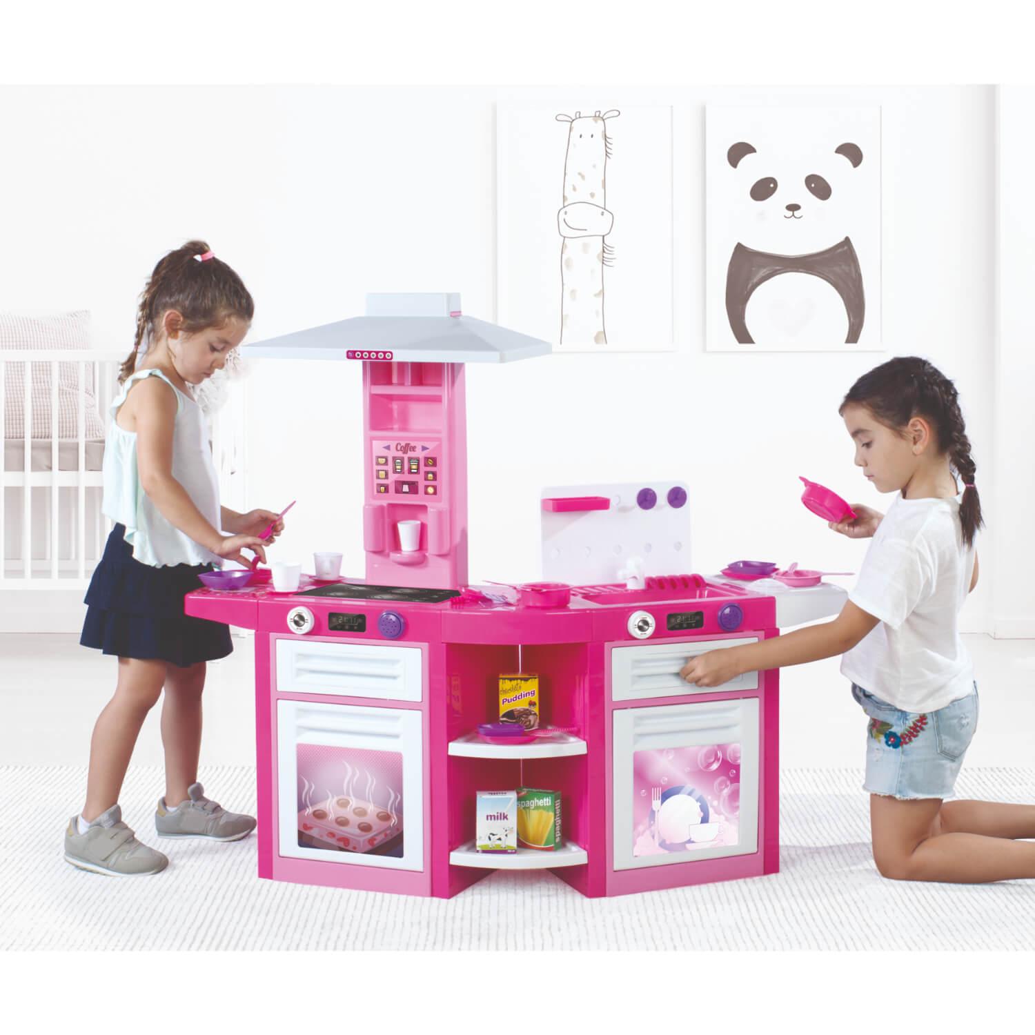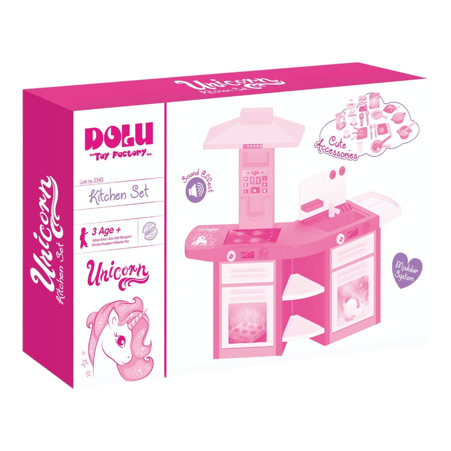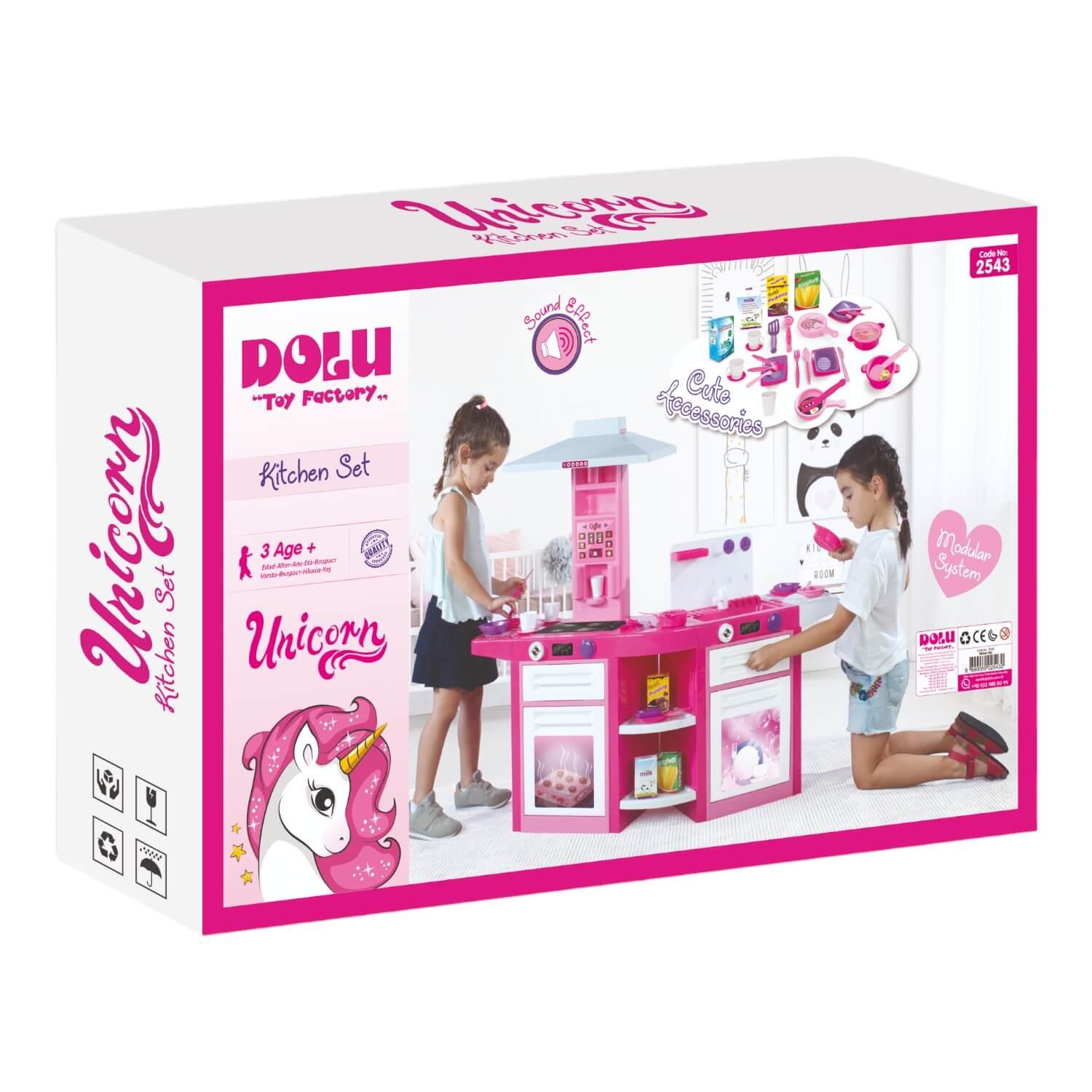 La mejor cocina para niños está aquí con los juegos de horno y lavavajillas Dolu con temática de unicornio combinados. Entre el horno y la estufa, los mini chefs pueden usar su imaginación para preparar una tormenta, servida con una guarnición de café, antes de limpiarlo todo usando el lavaplatos y el fregadero. ¡Con efectos de sonido en todo el juego para hacerlo aún más realista, así como varios accesorios para agregar a la diversión!