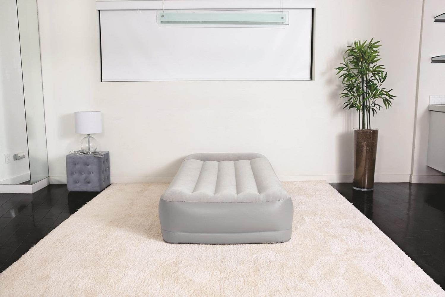 En la cómoda cama inflable Restaira de Bestway, los huéspedes pueden disfrutar de un sueño reparador durante toda la noche. Así lo garantiza el material TriTech de tres capas. Consiste en una capa de malla de poliéster rodeada por dos capas de PVC. Esto, junto a la estructura de vigas de “doble T”, garantiza que la cama inflable conserve la presión del aire y la forma. Para una cómoda experiencia de sueño, el colchón inflable individual está equipado con una superficie flocada, extremadamente suave, y almohada integrada.