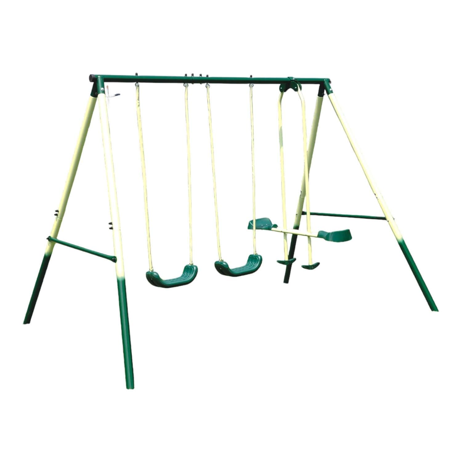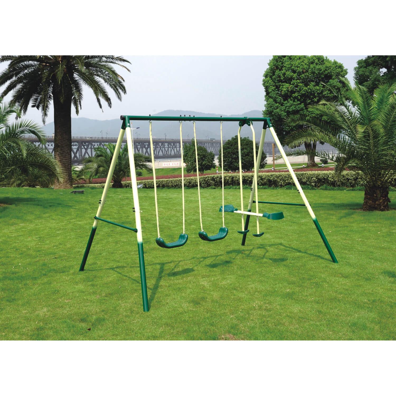 • Estación de juegos para niños. Incluye: 2 columpios y 1 balancín