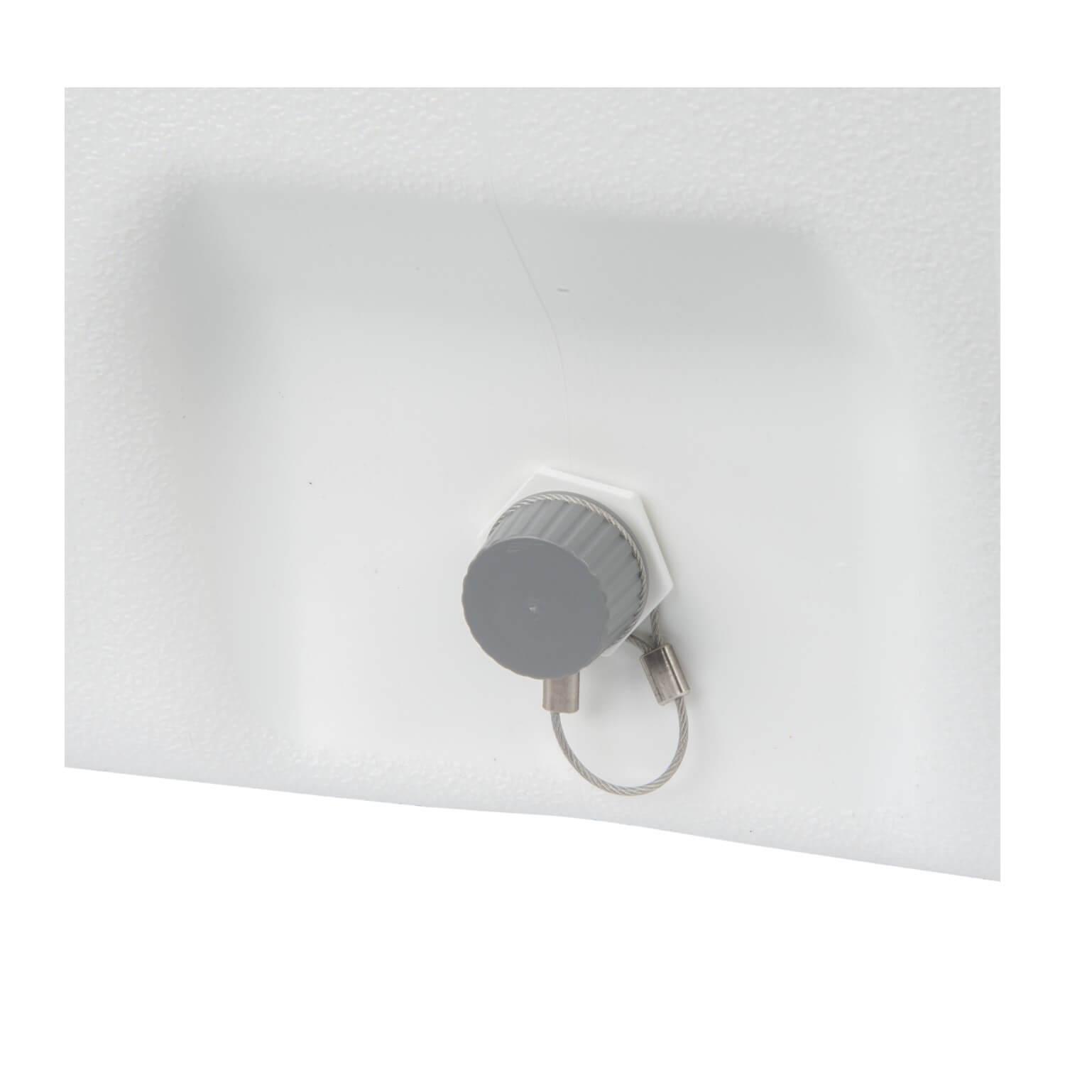• El tapón de drenaje roscado con correa de acero inoxidable es compatible con una manguera de jardín