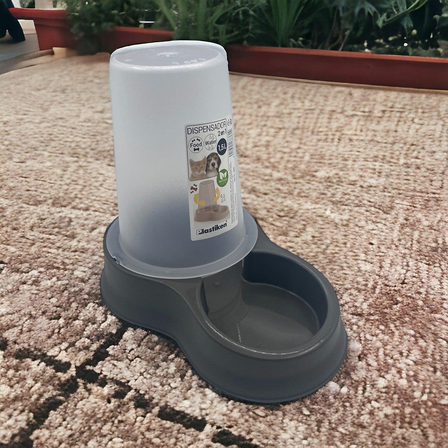Mantén a tu mascota bien hidratada y alimentada con este dispensador de 1,5 litros en color negro de Plastiken. Ideal para perros y gatos, este dispensador combina un diseño moderno con funcionalidad, permitiendo que tu mascota disfrute de comida y agua fresca en todo momento. Fácil de rellenar y limpiar.
