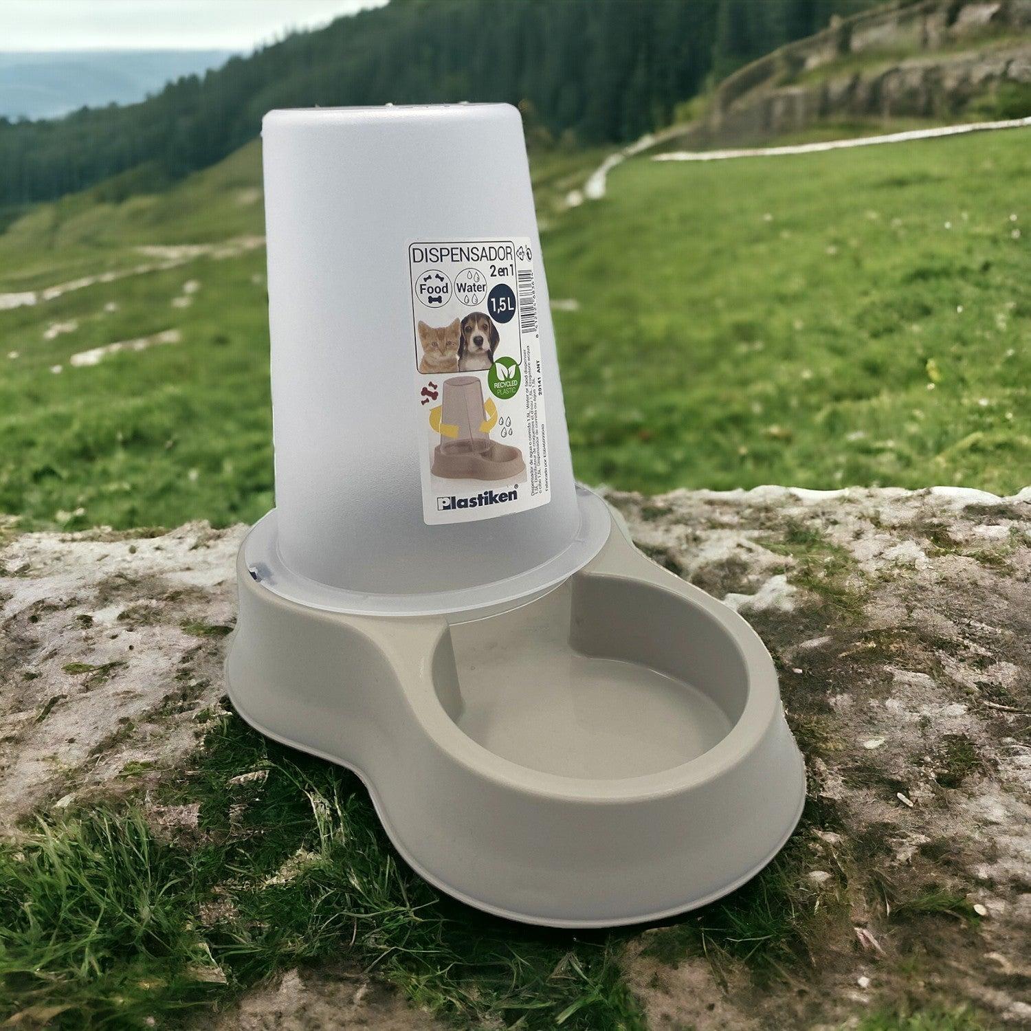 Mantén a tu mascota bien hidratada y alimentada con este dispensador de 1,5 litros en color beige de Plastiken. Ideal para perros y gatos, este dispensador combina un diseño moderno con funcionalidad, permitiendo que tu mascota disfrute de comida y agua fresca en todo momento. Fácil de rellenar y limpiar.