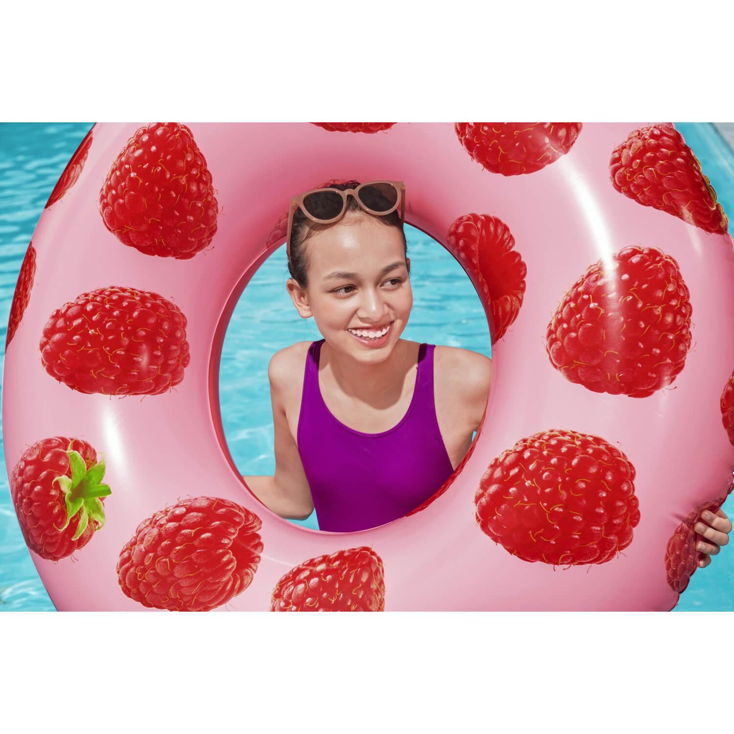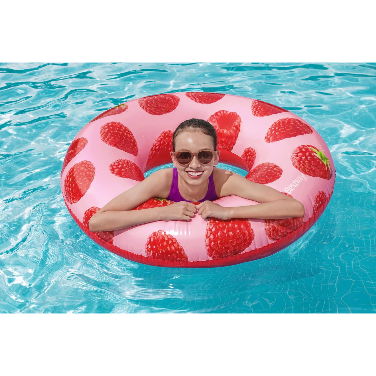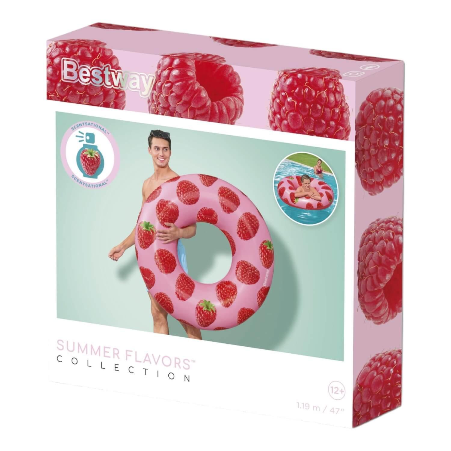 Deja que el delicioso olor a bayas del Flotador Bestway® Scentsational™ de Frambuesa te lleve a tu lugar feliz del verano. Este flotador está impregnado de una fresca y afrutada fragancia de frambuesa, y su delicioso aroma es dulce y fresco, sin ser demasiado potente ni abrumador. El Flotador de Piscina Scentsational de Frambuesa hará que todo el mundo hable – y lo huela – este verano. Además, el bonito y moderno estampado de frambuesa es perfecto para una fiesta veraniega en la piscina llena de diversión y relajación. ¡La gente no podrá apartar los ojos (o las narices) de este divertido flotador inflable!