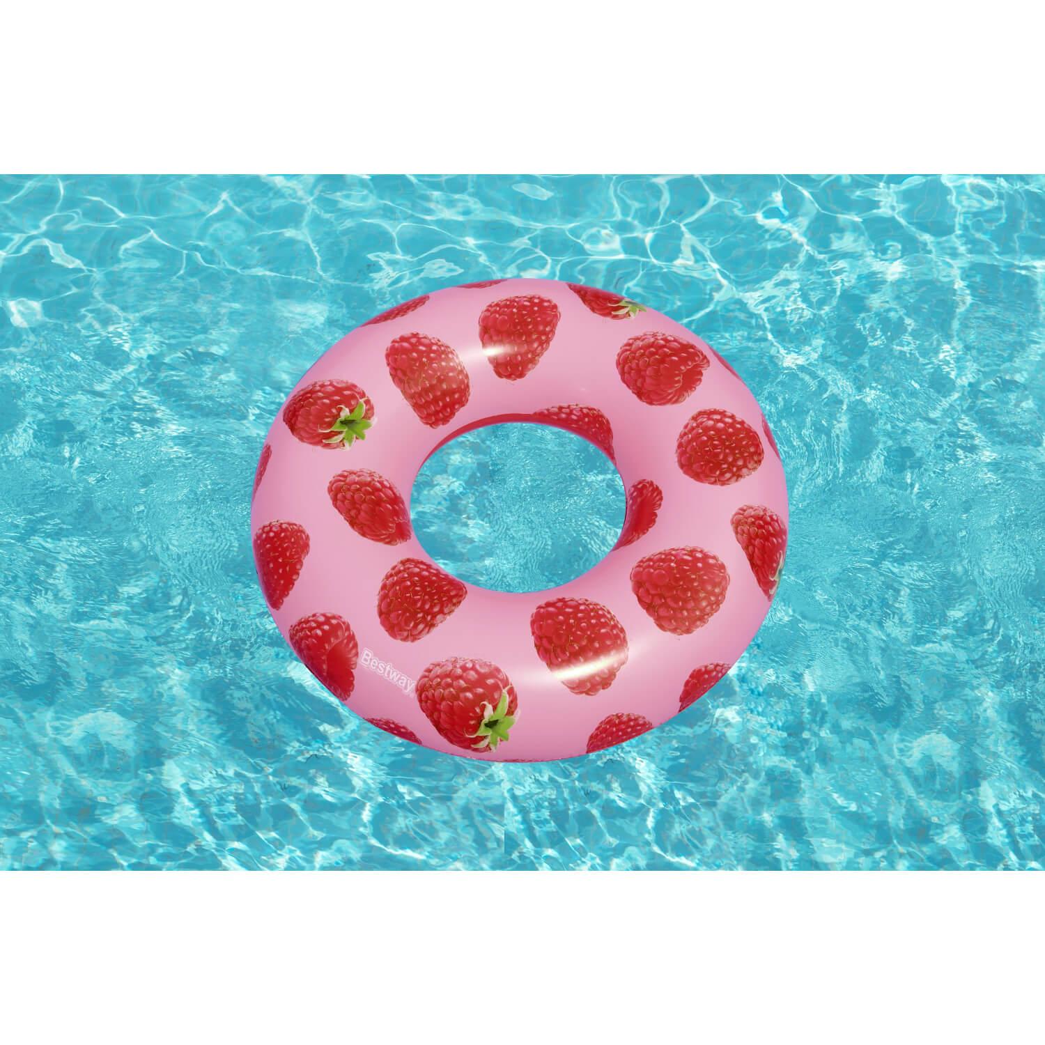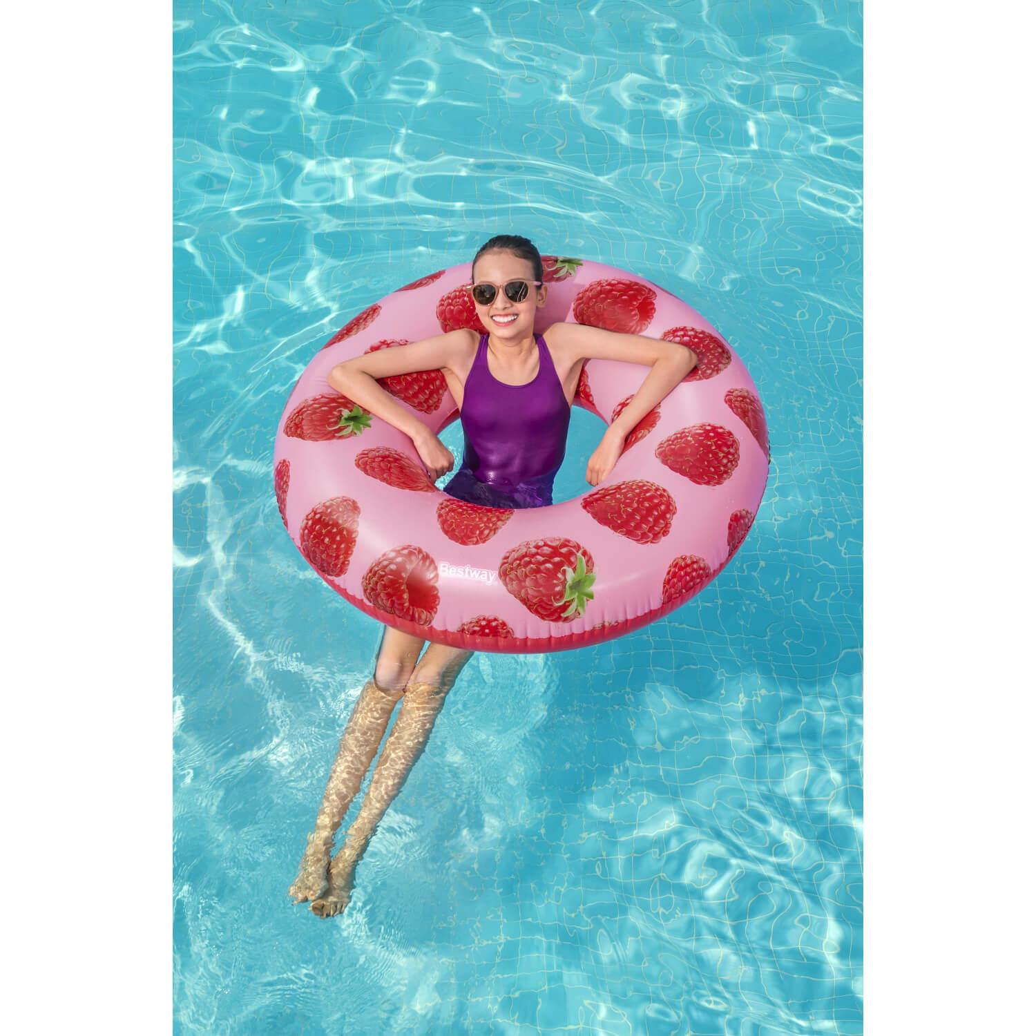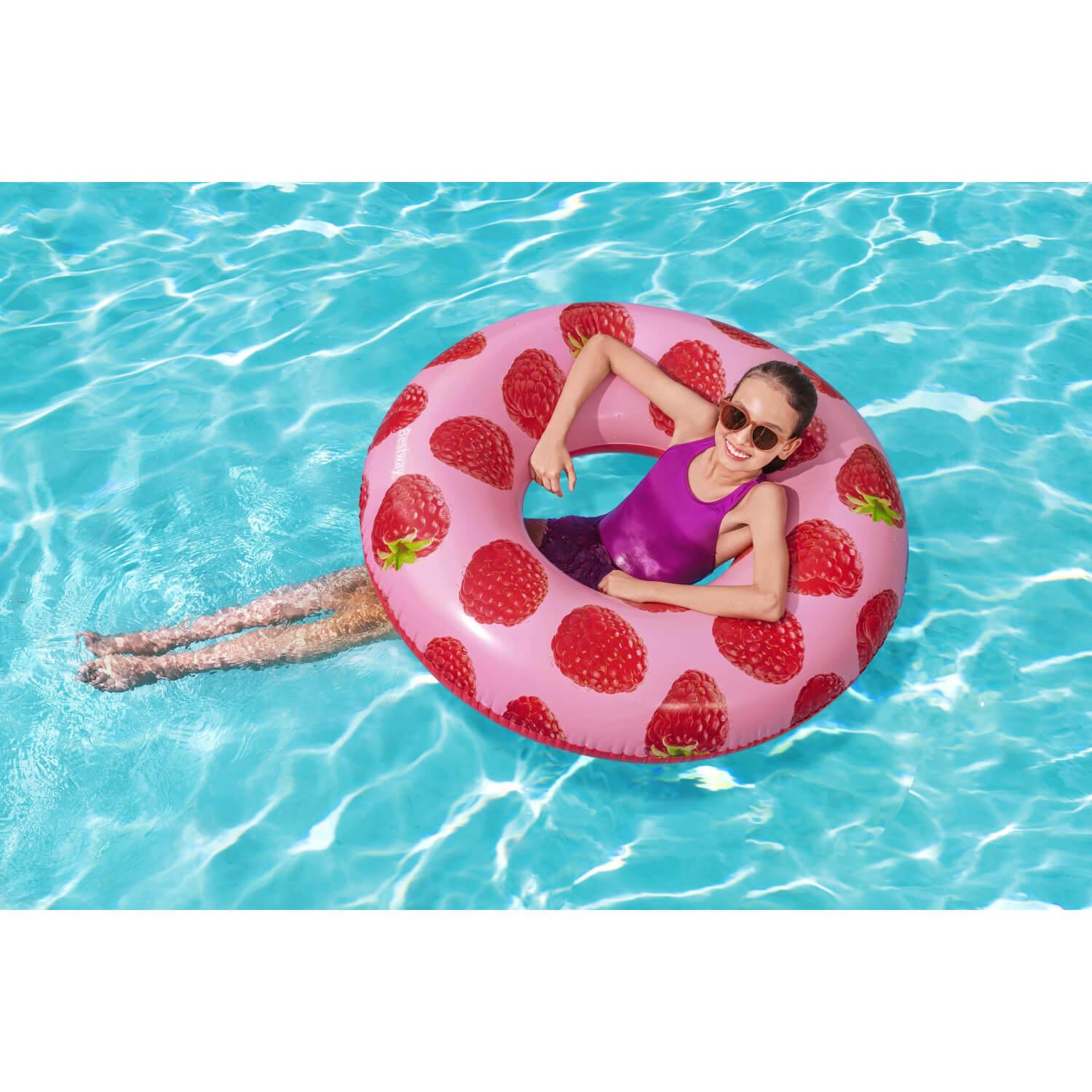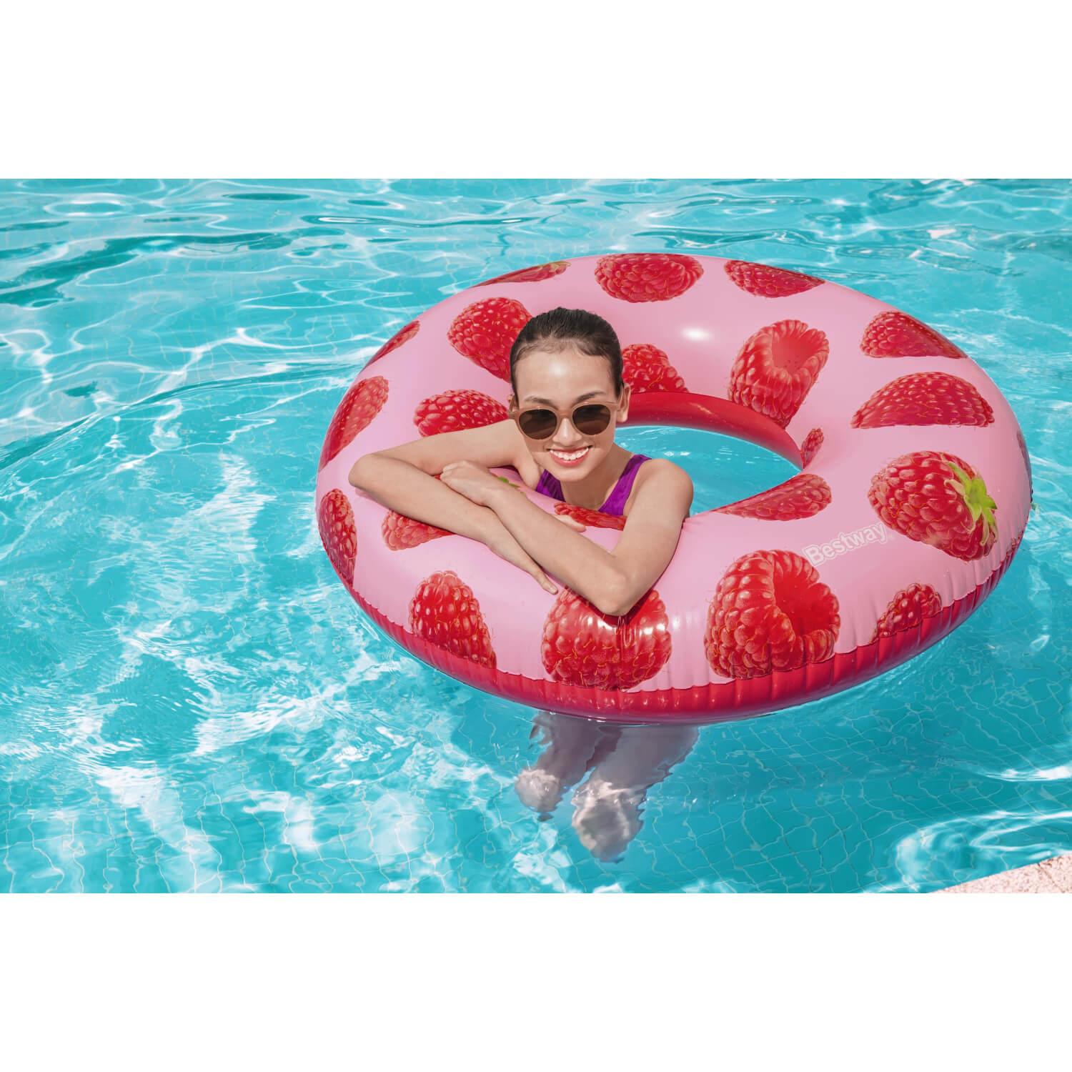 Deja que el delicioso olor a bayas del Flotador Bestway® Scentsational™ de Frambuesa te lleve a tu lugar feliz del verano. Este flotador está impregnado de una fresca y afrutada fragancia de frambuesa, y su delicioso aroma es dulce y fresco, sin ser demasiado potente ni abrumador. El Flotador de Piscina Scentsational de Frambuesa hará que todo el mundo hable – y lo huela – este verano. Además, el bonito y moderno estampado de frambuesa es perfecto para una fiesta veraniega en la piscina llena de diversión y relajación. ¡La gente no podrá apartar los ojos (o las narices) de este divertido flotador inflable!