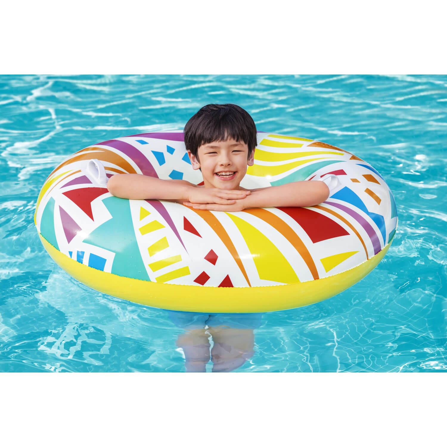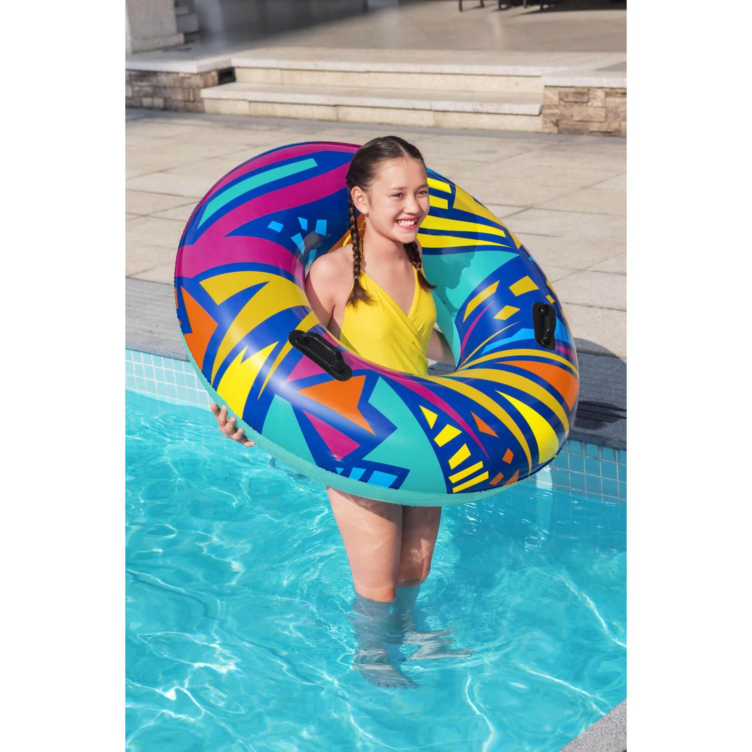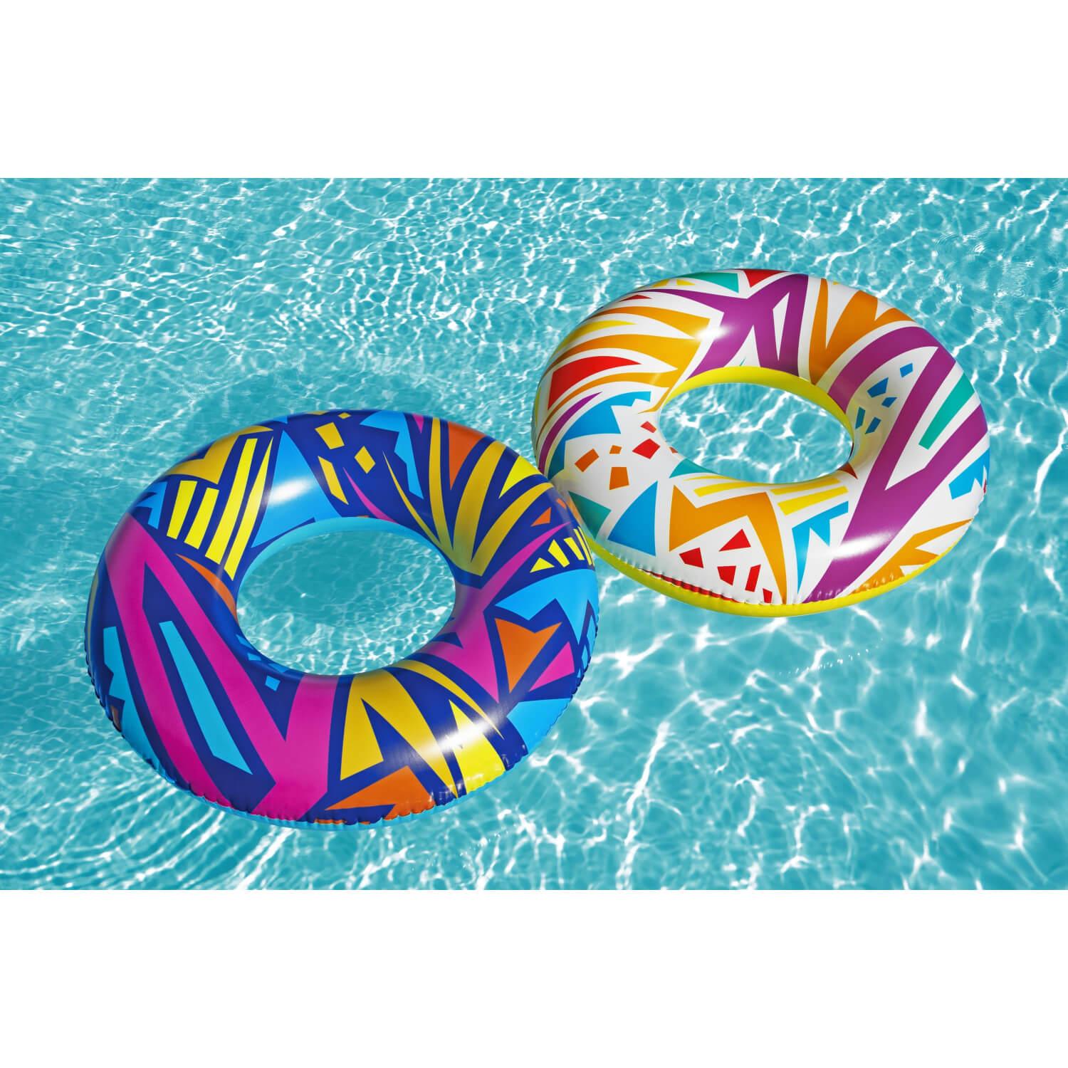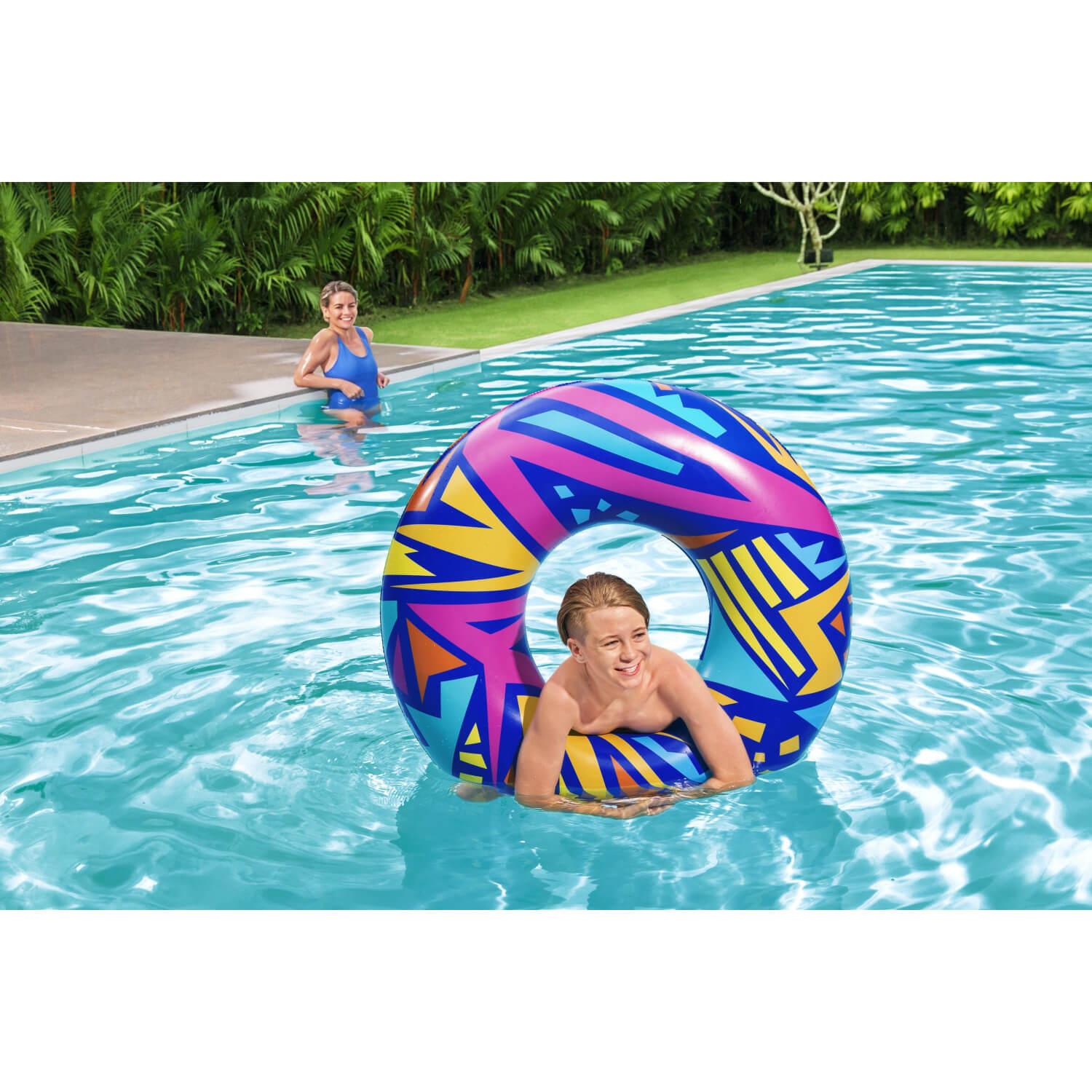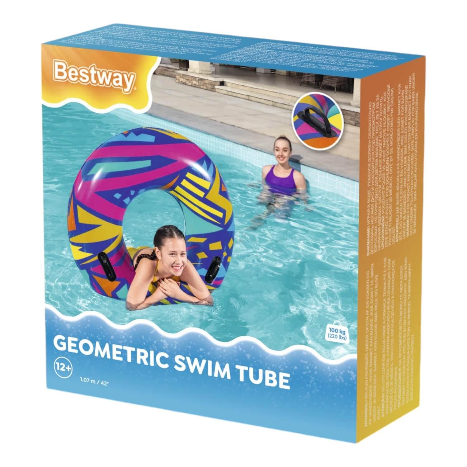 El anillo de natación geométrico Bestway® presenta gráficos creativos con un toque retro. El material resistente está diseñado para inflar y desinflar repetidamente sin dejar de ser liviano. Simplemente infle el anillo y estará listo para flotar. Desinflar el anillo es rápido y fácil, por lo que puede guardarlo fácilmente. Relájate y relájate con estilo con el anillo de natación geométrico Bestway.