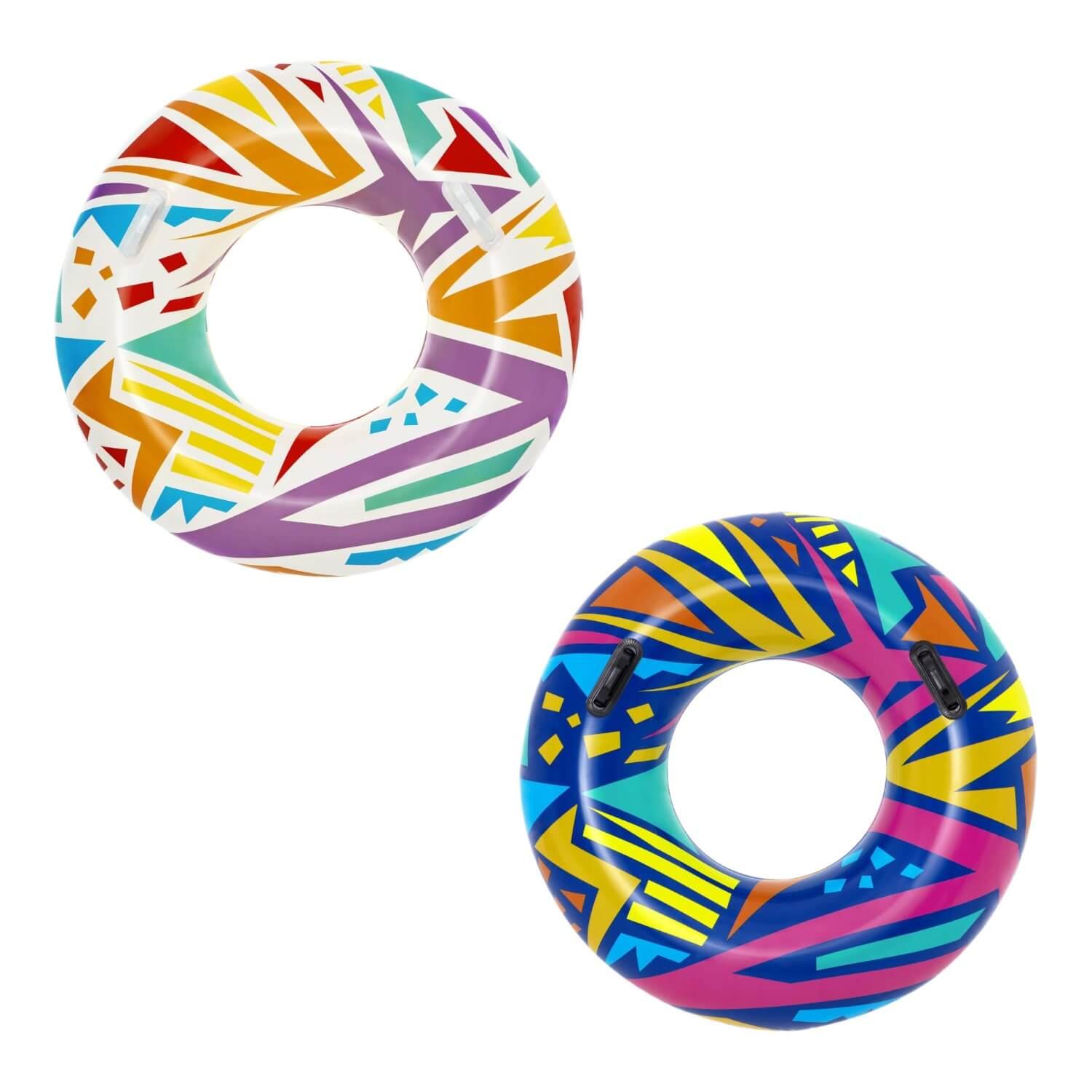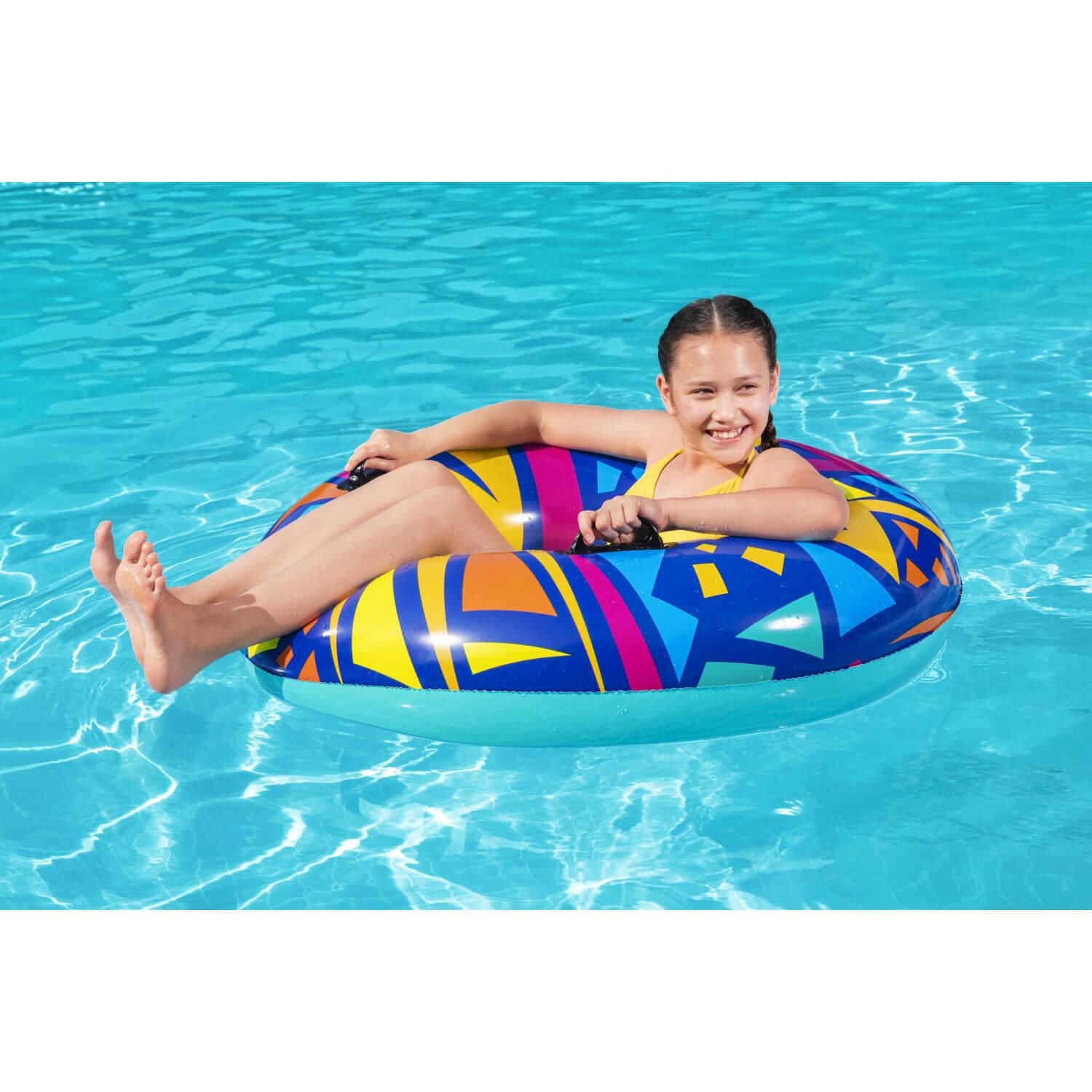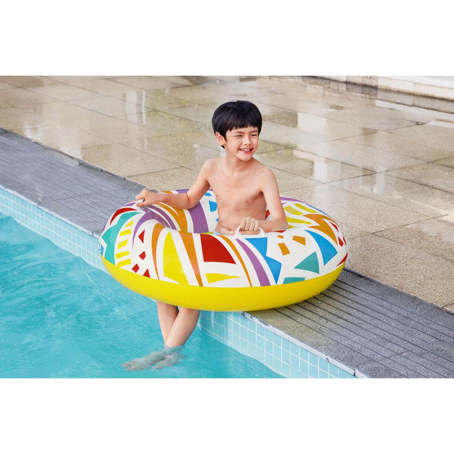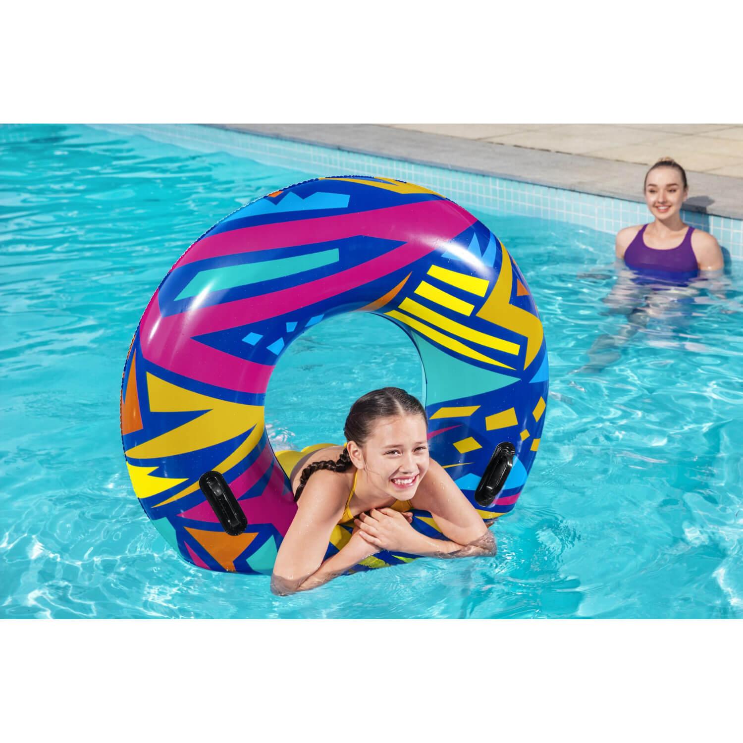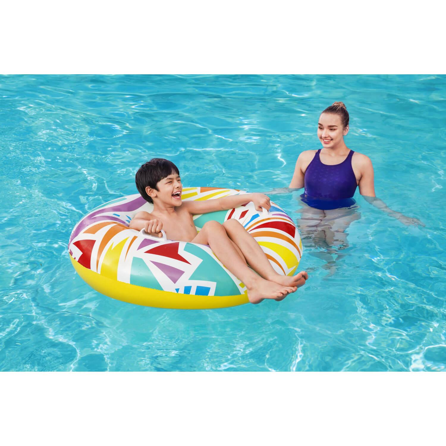 El anillo de natación geométrico Bestway® presenta gráficos creativos con un toque retro. El material resistente está diseñado para inflar y desinflar repetidamente sin dejar de ser liviano. Simplemente infle el anillo y estará listo para flotar. Desinflar el anillo es rápido y fácil, por lo que puede guardarlo fácilmente. Relájate y relájate con estilo con el anillo de natación geométrico Bestway.