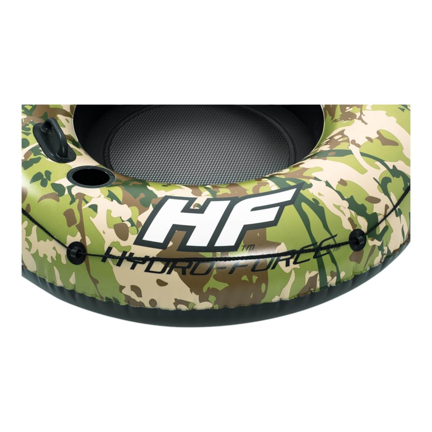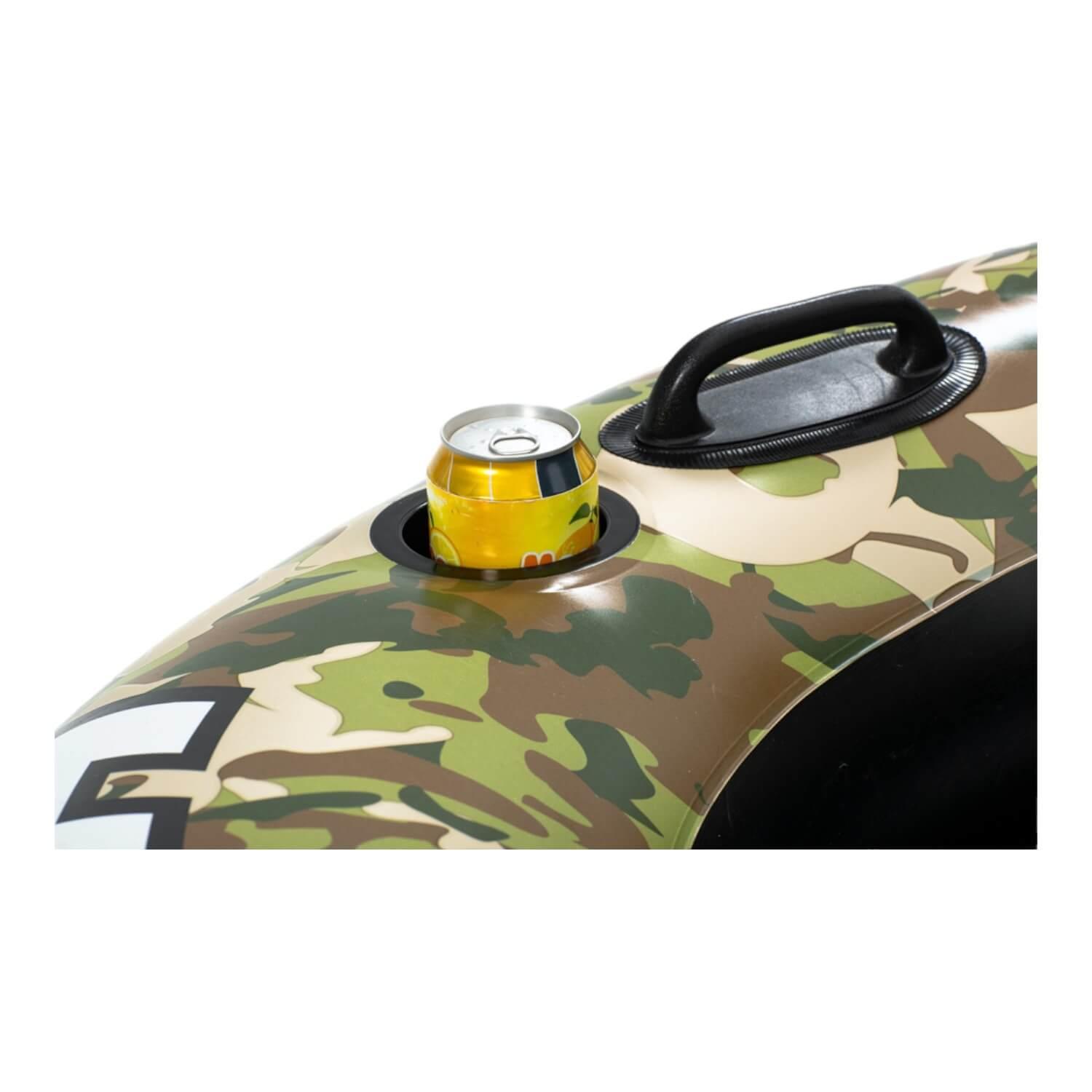 Cazadores, entusiastas del aire libre y amantes del camuflaje … ¡Este es el tubo perfecto para ti! El Hydro•Force ™ Camo Cruiser es resistente y perfecto para su día al aire libre. Flota el río o el lago con comodidad y estilo. Este tubo presenta una construcción premium con respaldo para mayor soporte y mayor comodidad y un fondo de malla para mantenerte fresco mientras flotas en el agua. También hay un portavasos y una cuerda de agarre envolvente para permitirle atar múltiples tubos juntos o a su refrigerador. Este tubo de camuflaje definitivamente no se mezclará con el fondo, ¡seguramente será la charla del verano!