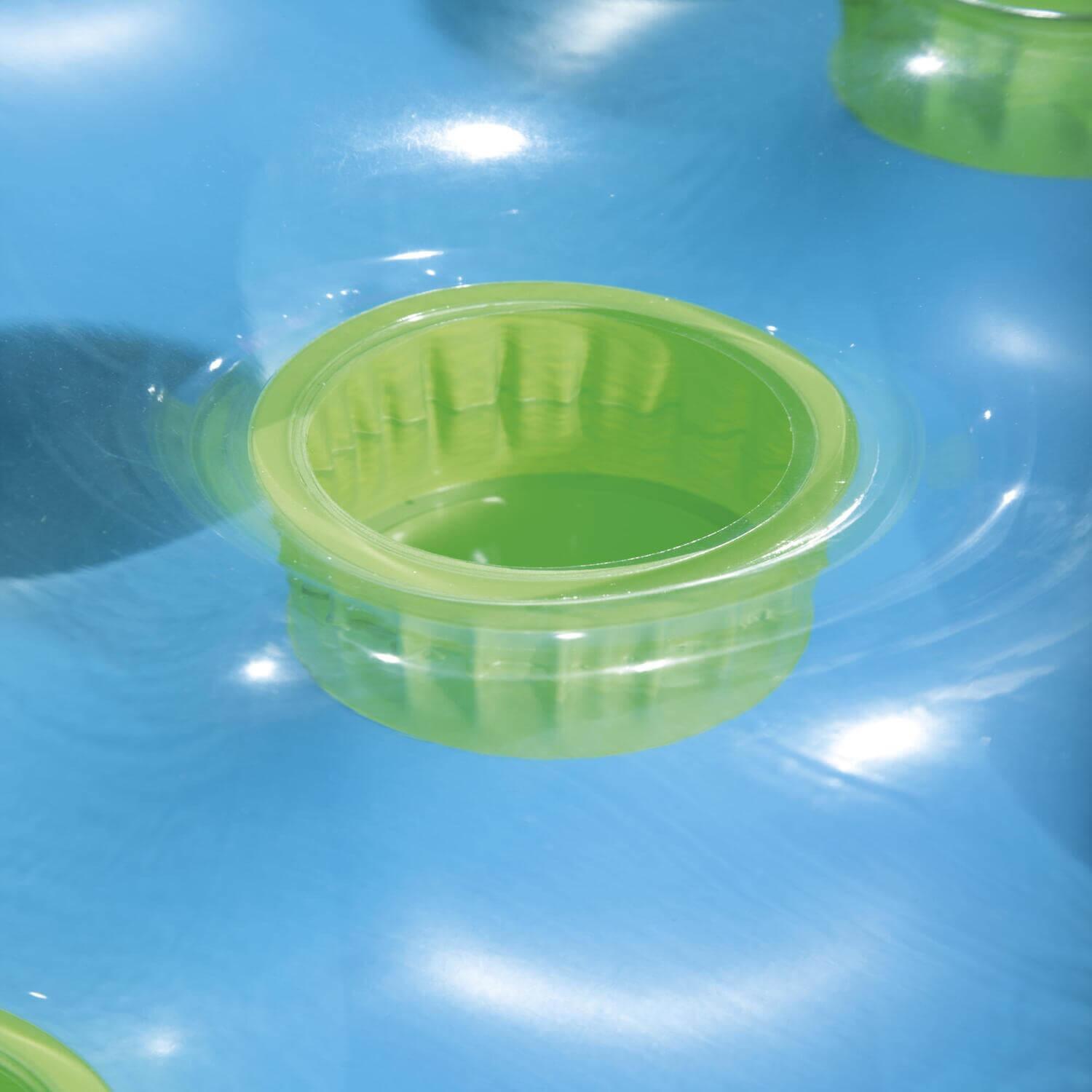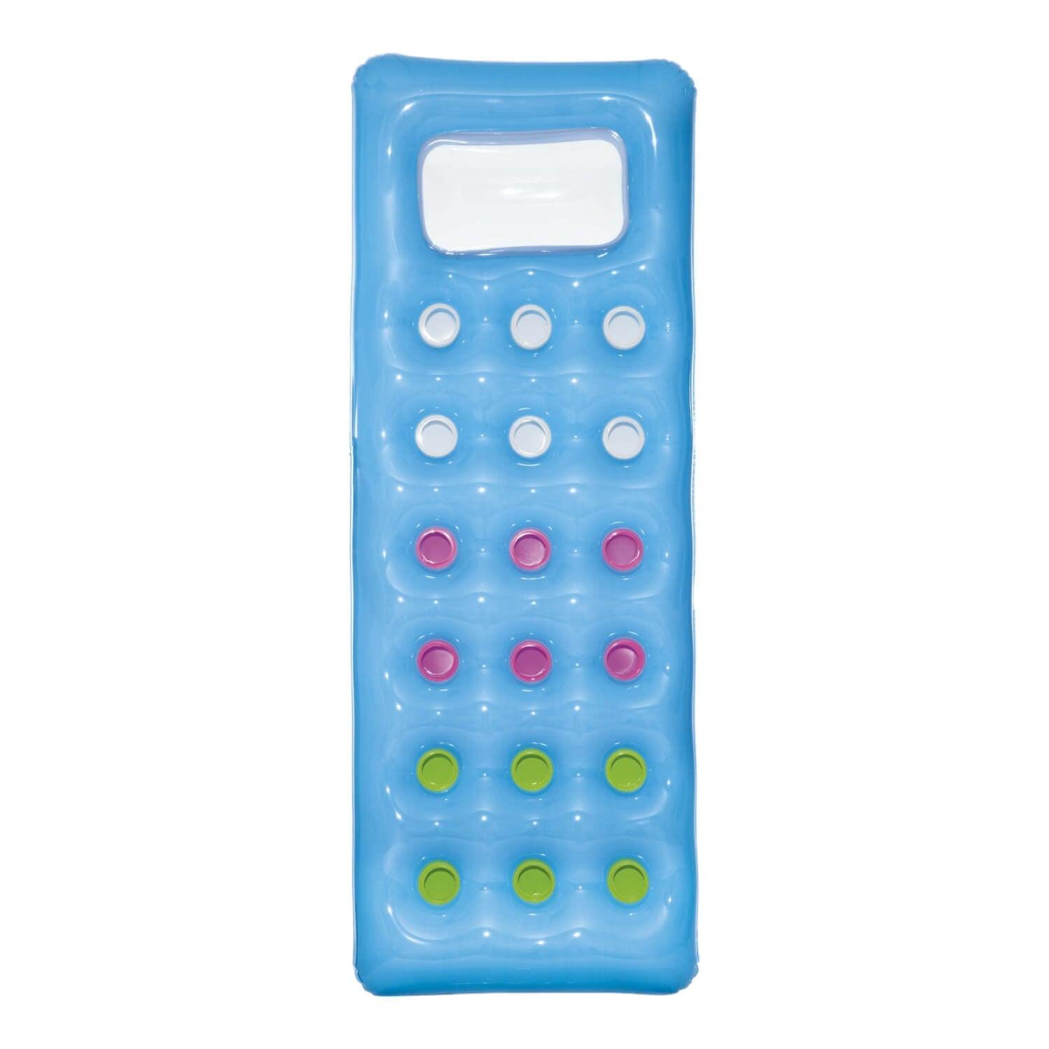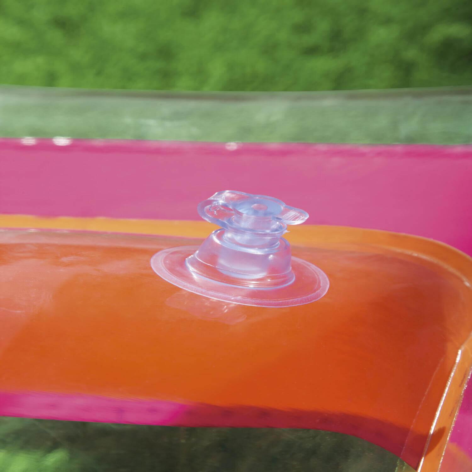 Vaya a la piscina o a la playa con el moderno y elegante Fashion Lounge. No tire la moda por la ventana cuando llegue la próxima ola de calor, use esta colchoneta para mantenerse fresco, en más de un sentido. No se preocupe por trabajar con el inflado, ya que el diseño de dos cámaras de aire lo hace rápido y fácil. La almohada incorporada es lo suficientemente cómoda para las siestas de la tarde y es transparente para lograr un efecto divertido. Los coloridos puntos de la bobina son visibles a través del flotador.
