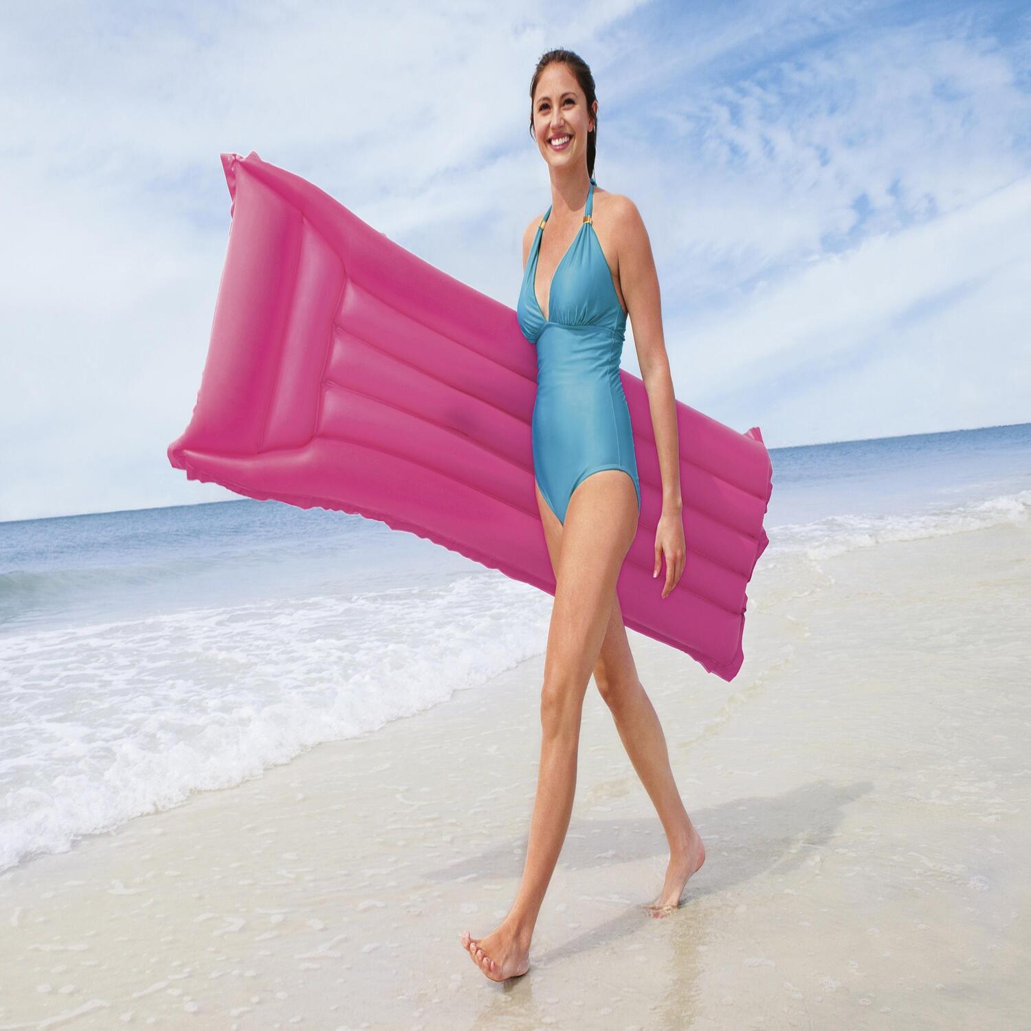 La colchoneta inflable Acabado Mate es todo lo que necesitas para relajarte en la piscina este verano. Este inflable tiene un elegante acabado mate de aspecto muy agradable y proporciona gran comodidad. El reposacabezas tiene dos cámaras de aire para crear el efecto de una almohada normal. Está disponible en cuatro colores distintos: rosa, azul, amarillo y verde. Elaborada con un vinilo resistente y probado. Las válvulas de seguridad facilitan el inflado y el desinflado y garantizan que la colchoneta no se desinfle y mantenga la flotabilidad.
