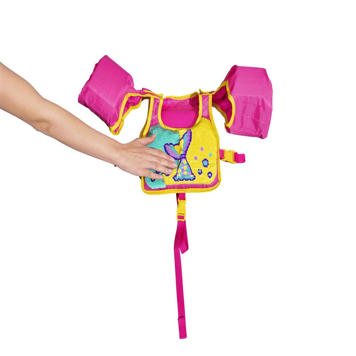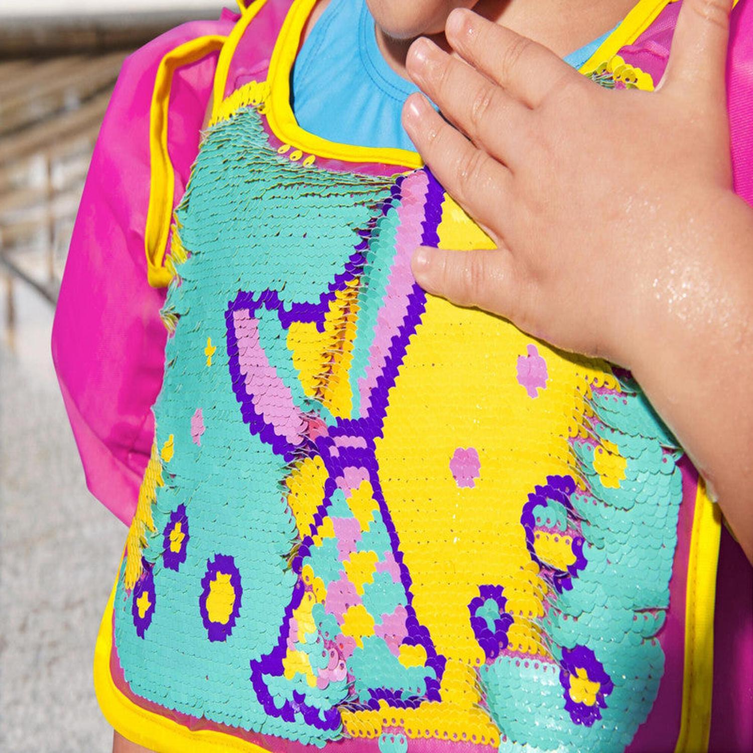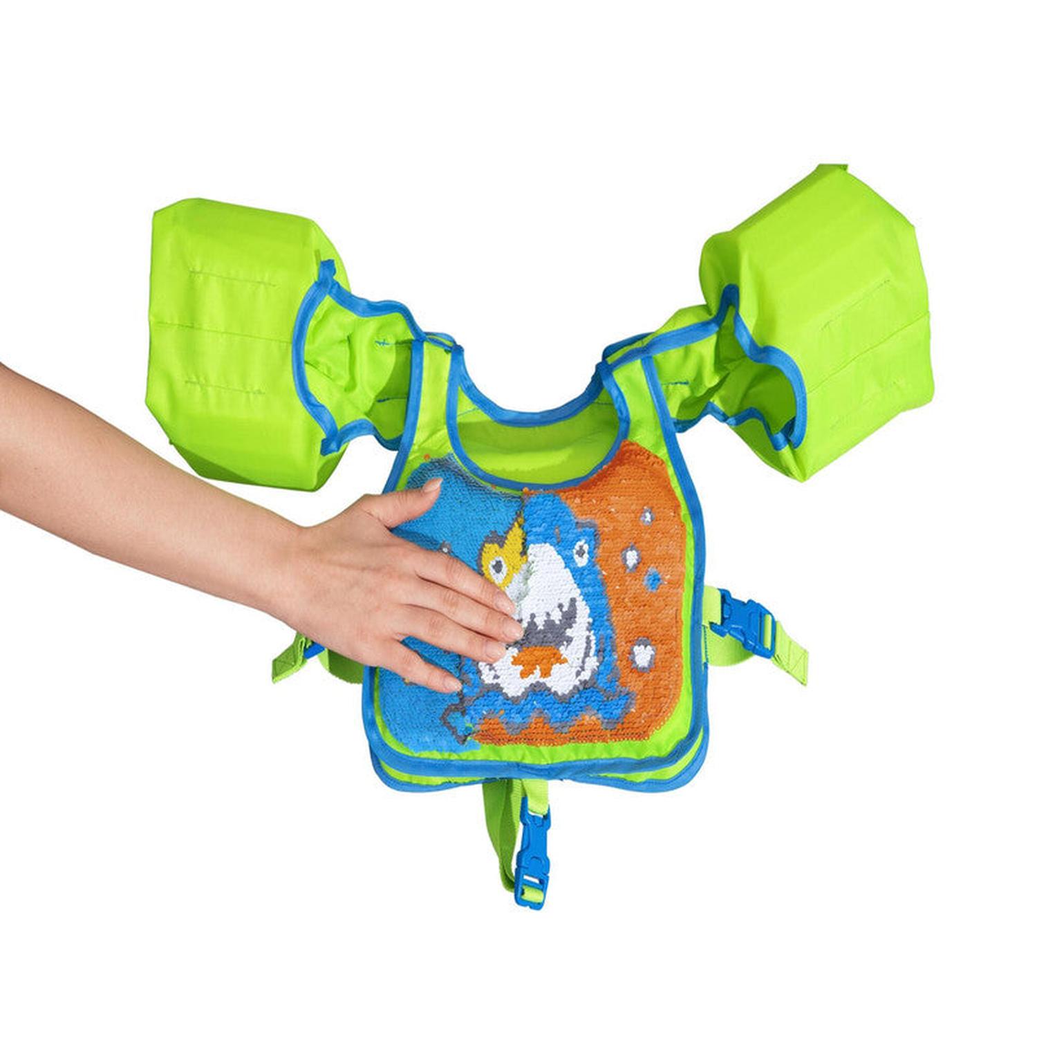 Mantén a los niños seguros durante todo el verano con nuestro divertido Chaleco de Lentejuelas Flip ‘n Reveal™. Estar seguro en la piscina y en la playa nunca ha sido tan fácil ni tan divertido. Nuestro chaleco hará que los niños salpiquen y exploren el agua a su ritmo. Deja que sus personalidades brillen y sus mentes crezcan mientras voltean las lentejuelas para cambiar el color del diseño. Nuestro producto fomenta el desarrollo kinestésico a través del tacto y el movimiento, a la vez que hace que su tiempo en el agua sea aún más agradable. La innovadora estructura mantiene a los niños a flote y cómodos con piezas de espuma para el cuerpo, bandas para los brazos, hebilla ajustable y correa de seguridad. Las correas ajustables proporcionan un ajuste perfecto, manteniendo a los niños seguros. El tejido oxford no sólo es duradero, sino que proporciona comodidad a los niños mientras salpican. Nunca ha sido tan fácil y seguro demostrar su divertida personalidad en el agua.