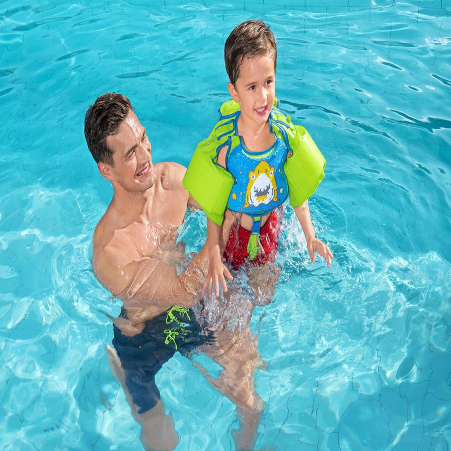 • La innovadora estructura de manguito y chaleco salvavidas mantiene a los niños seguros en el agua