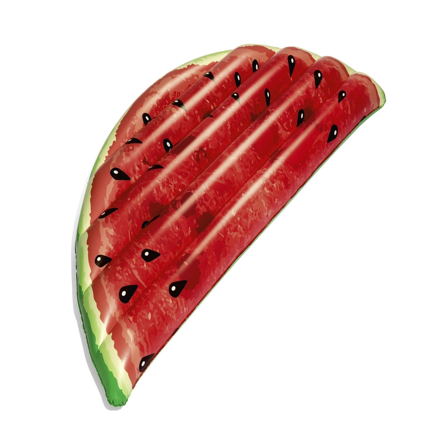 La colchoneta Frutas de Verano es el inflable más refrescante para cualquier fiesta en la piscina en el lago. Estos inflables tienen un diseño muy realista y hay dos opciones disponibles: una piña y una sandía. Con más 1,70 m de superficie, podrás disfrutar de tu colchoneta frutal todo el día. Cuenta con 2 cámaras de aire que aceleran el proceso de inflado y aumentan la estabilidad sobre el agua.