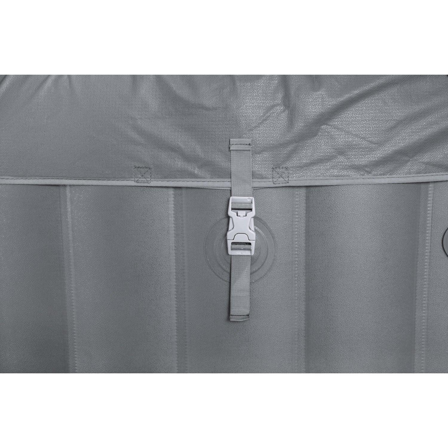 Construcción Duradera: Las paredes hinchables de este spa están hechas de material DuraPlus™, duradero y resistente a los pinchazos, que previene los daños. En comparación con el PVC, el material DuraPlus de 3 capas es un 33% más resistente a los desgarros y un 56% más resistente al estiramiento. Este tipo de construcción interna previene la dilatación con el tiempo, lo que permite que el spa conserve la misma forma sin importar cuántas veces se infle o desinfle.