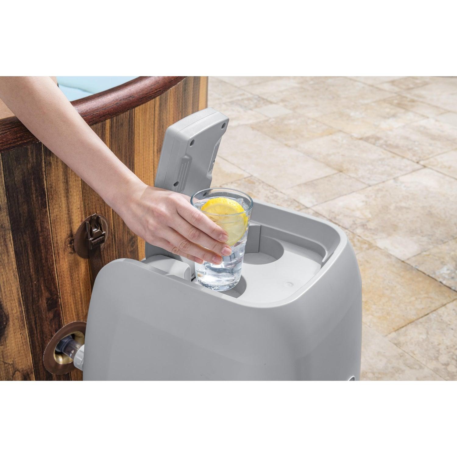 • Panel de control digital y bomba de spa con sistema de filtración integrado que incluye portavasos y es accesible desde el interior del spa