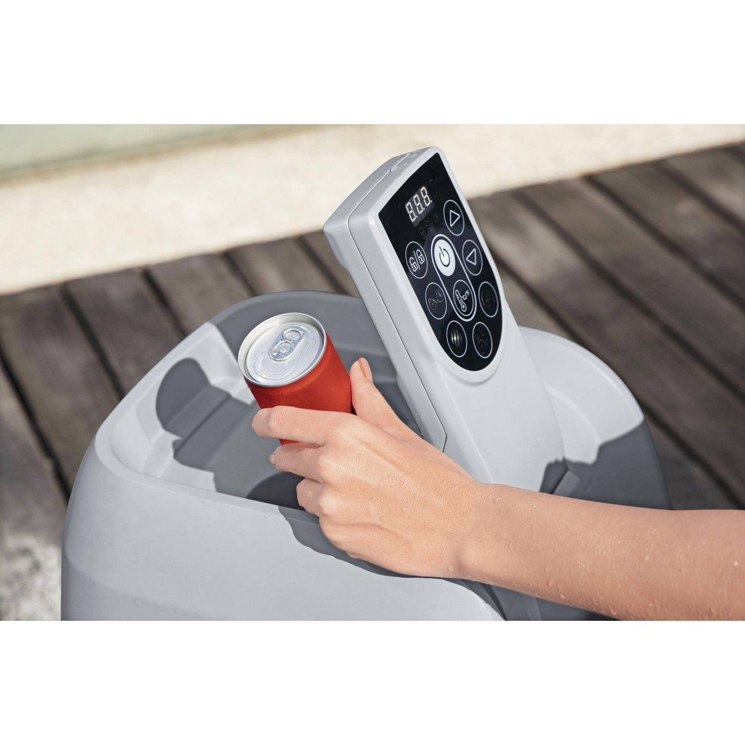• El panel de control digital y la bomba del spa con sistema de filtración integrado incluyen portavasos y son accesibles desde el interior del spa