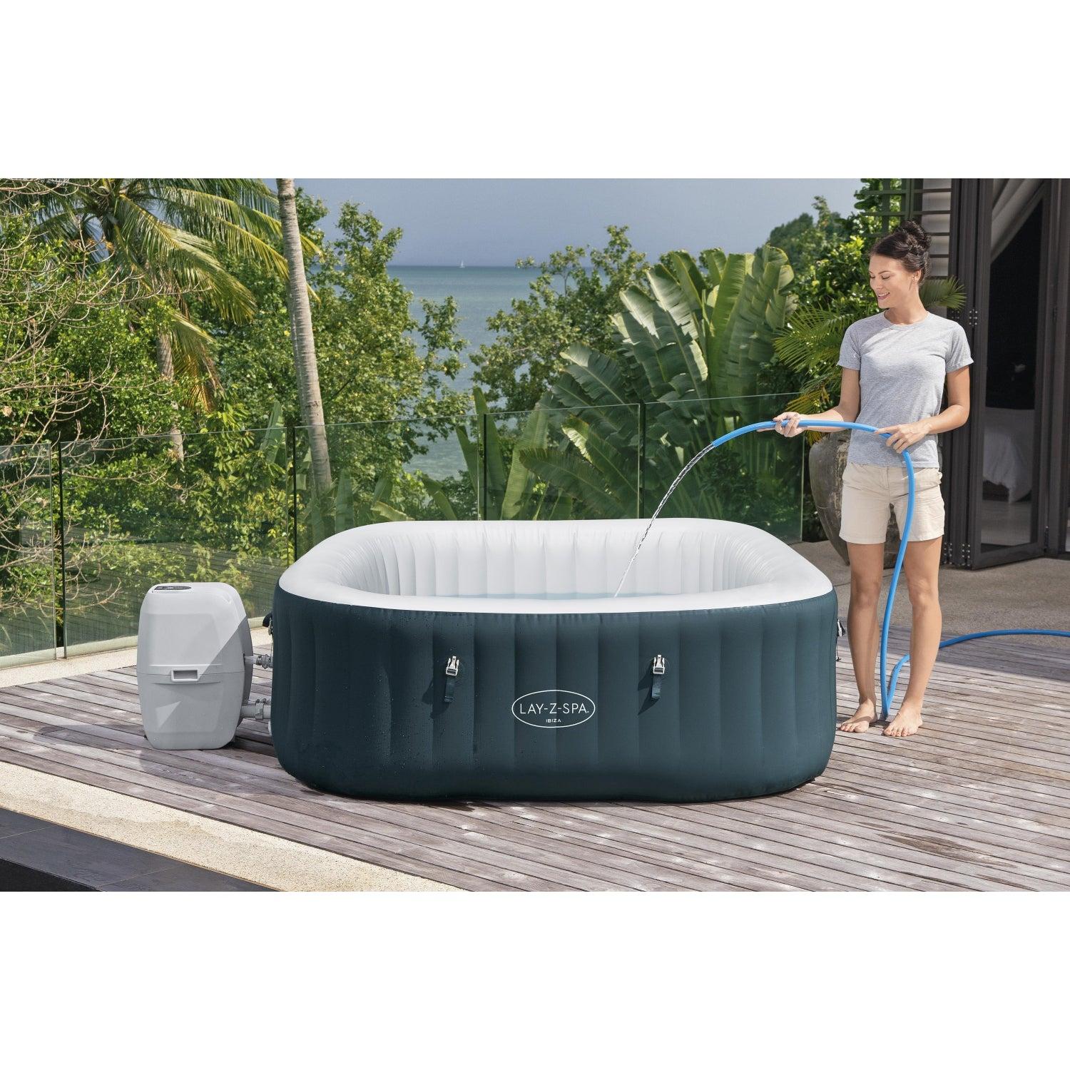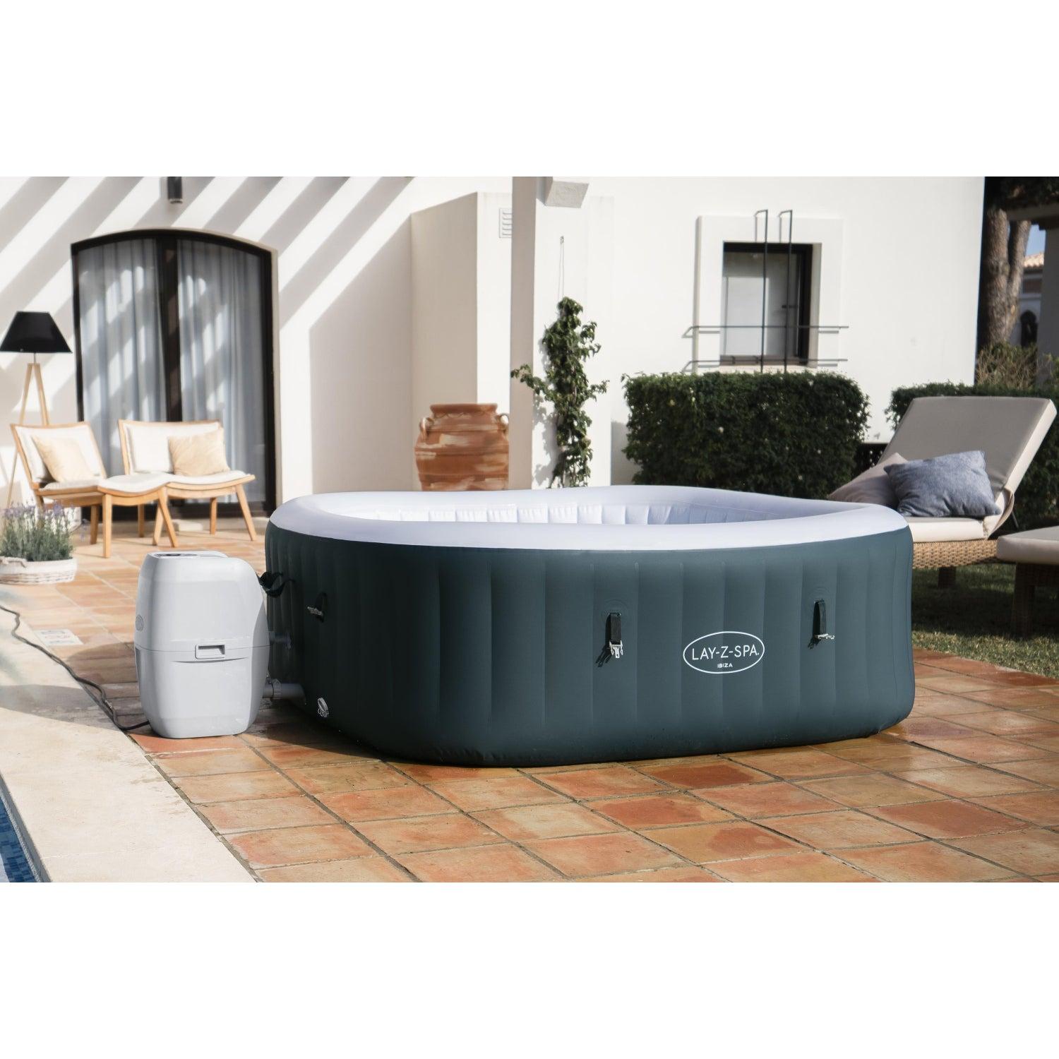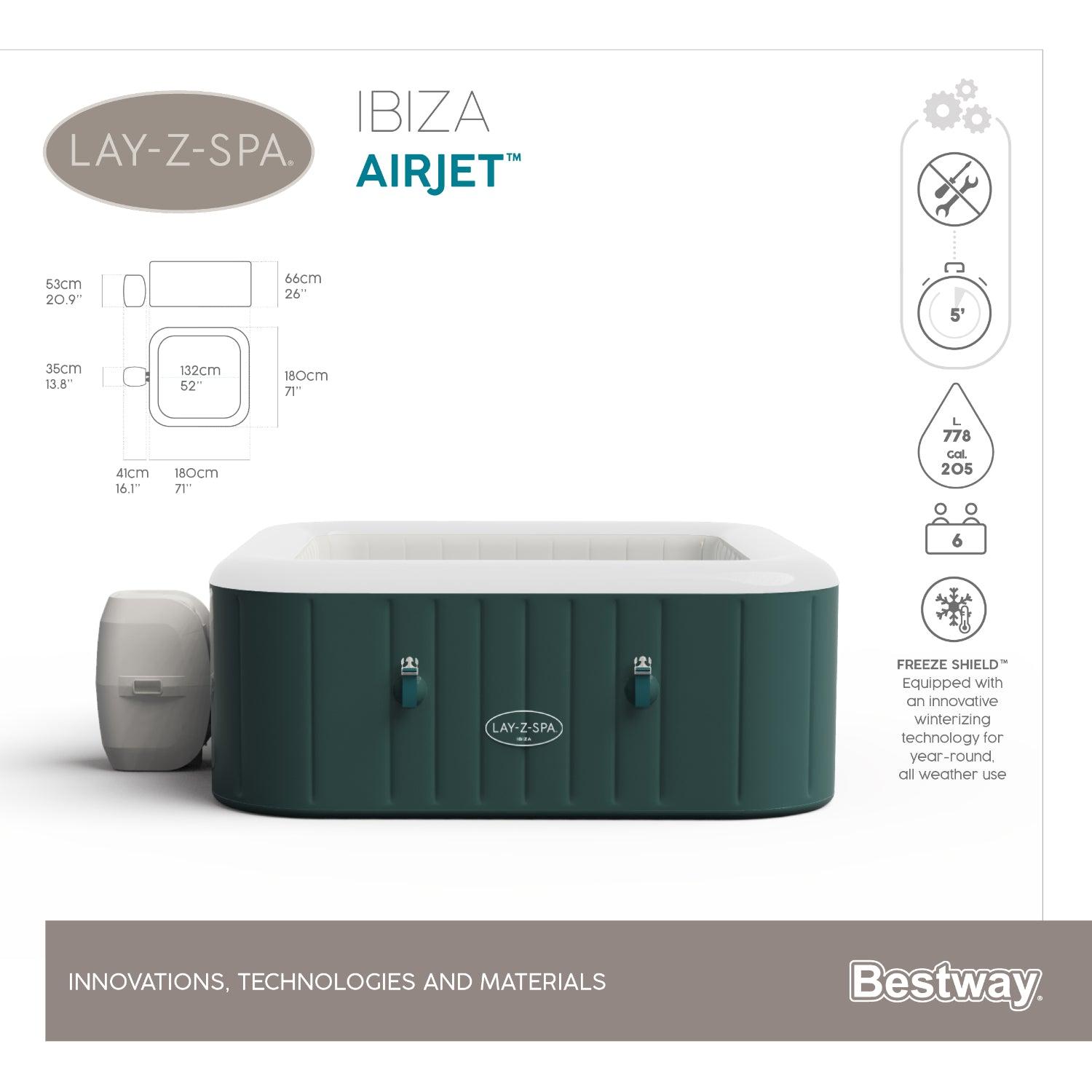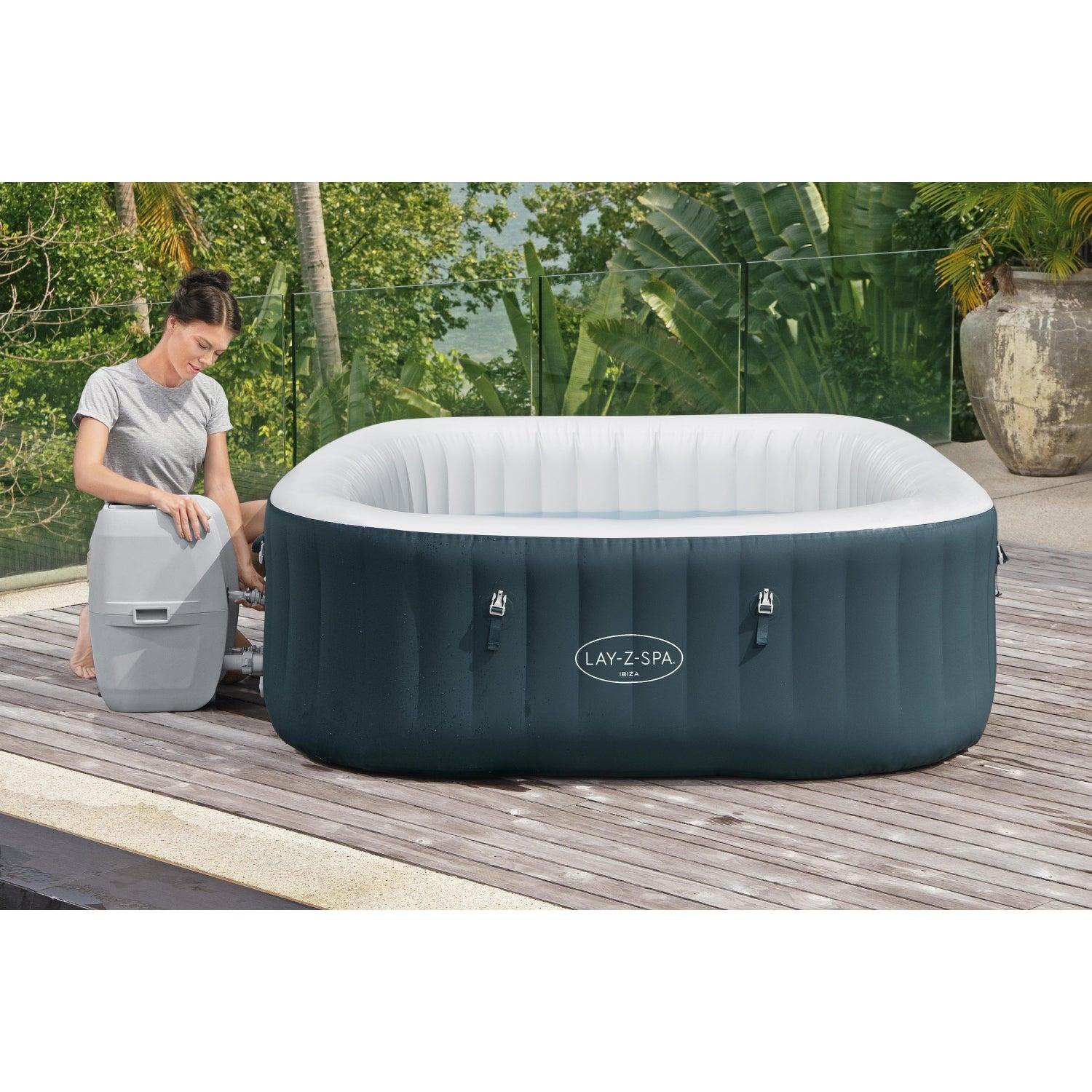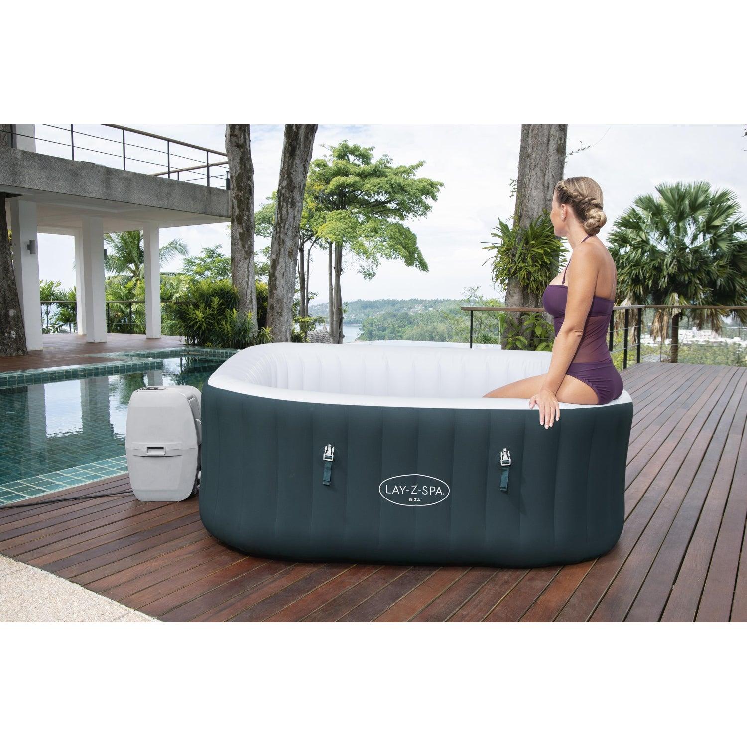 Después de un largo día, no hay nada más relajante que sumergirse en agua caliente y burbujeante en tu propio patio trasero. El Lay-Z-Spa® Ibiza AirJet™ proporciona una experiencia de masaje relajante para hasta 6 personas, sin dejar de ser rápido y sencillo de montar. Sólo tienes que conectar la bomba y mirar mientras se infla.