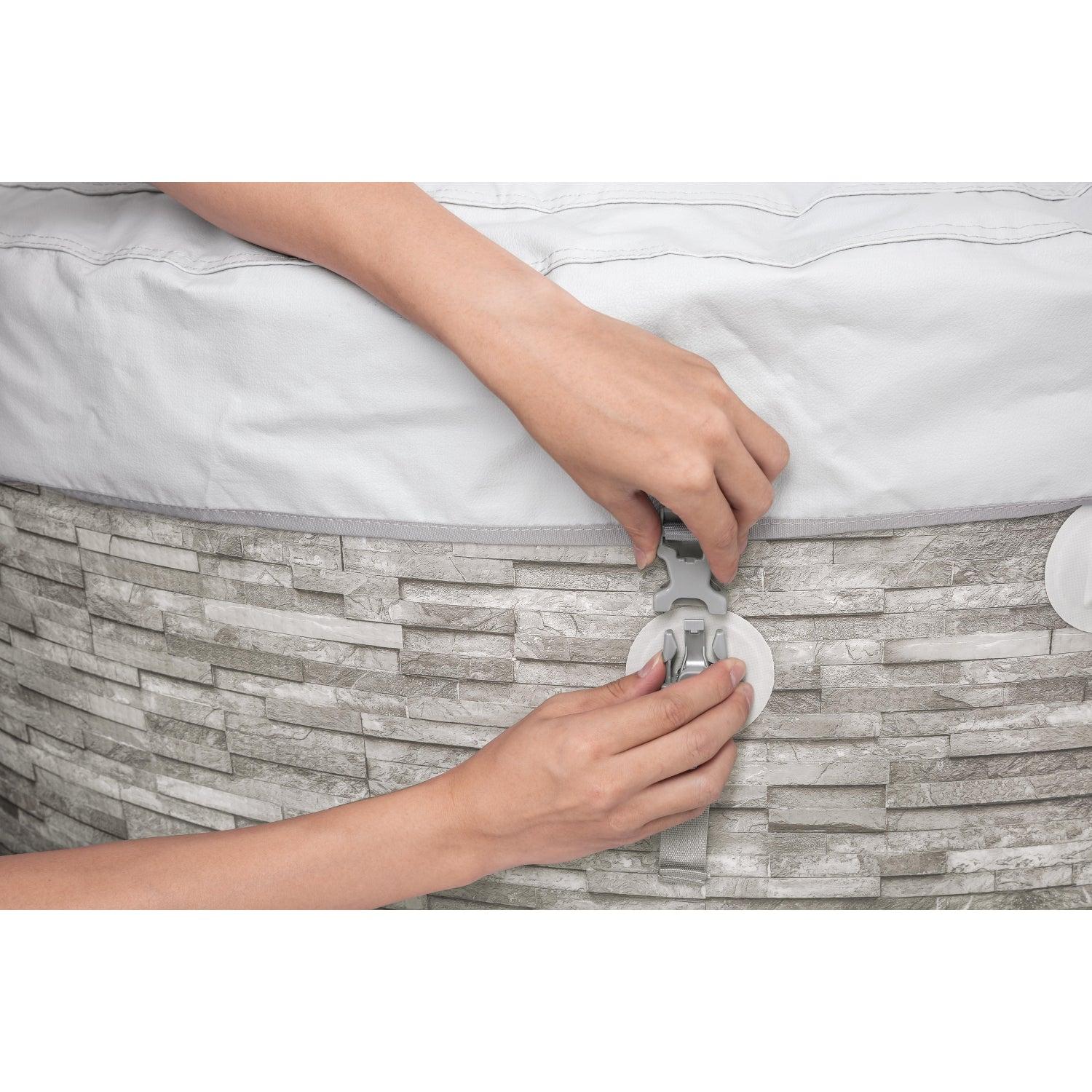 • Las paredes están hechas de materia drop stitch, proporcionando un spa resistente y duradero