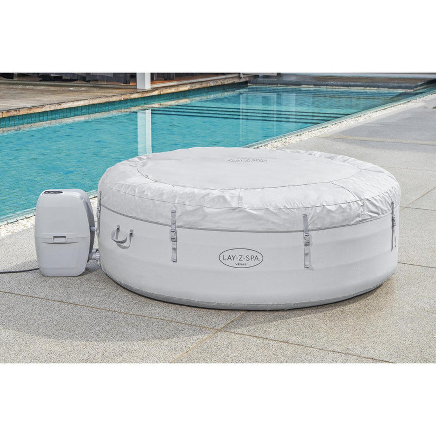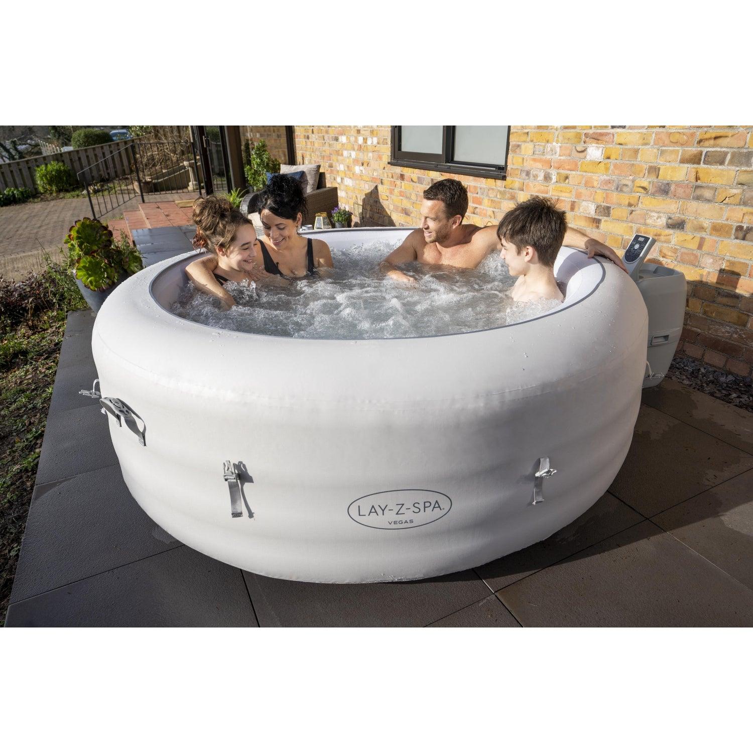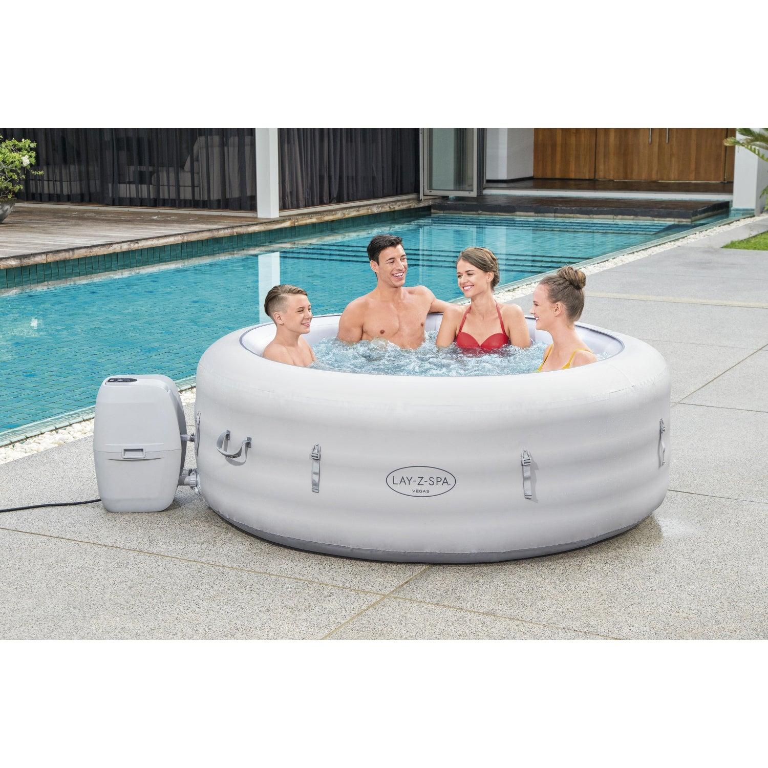 Después de un largo día, no hay nada más relajante que sumergirse en agua tibia y burbujeante en su propio patio trasero. El Jacuzzi Lay-Z-Spa® Vegas AirJet™ brinda una experiencia de masaje relajante para hasta 6 personas y, al mismo tiempo, es rápido y fácil de configurar. Simplemente conecte la bomba y observe cómo se infla.