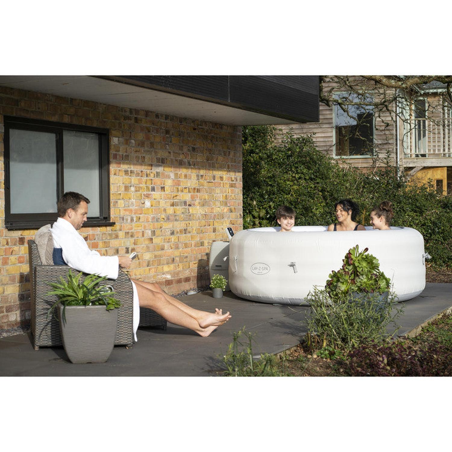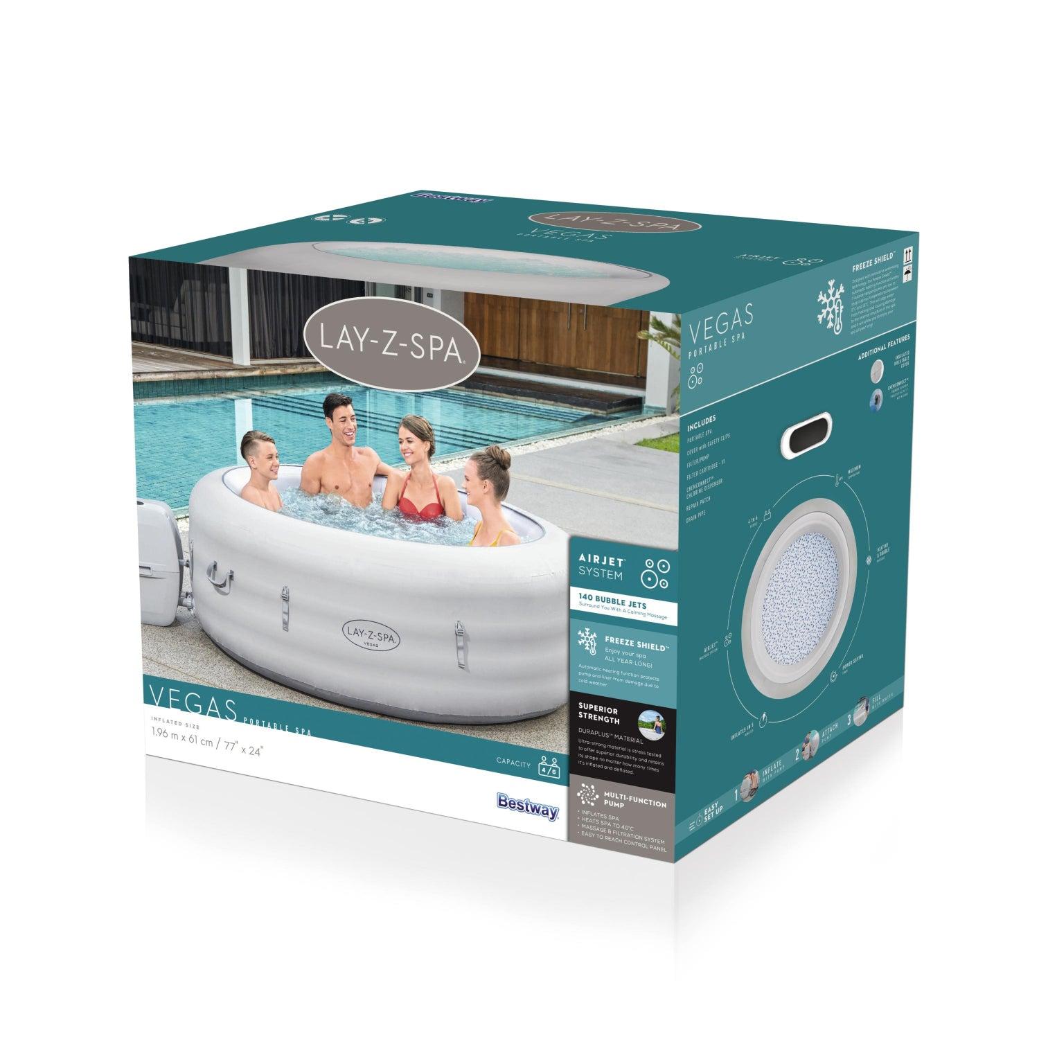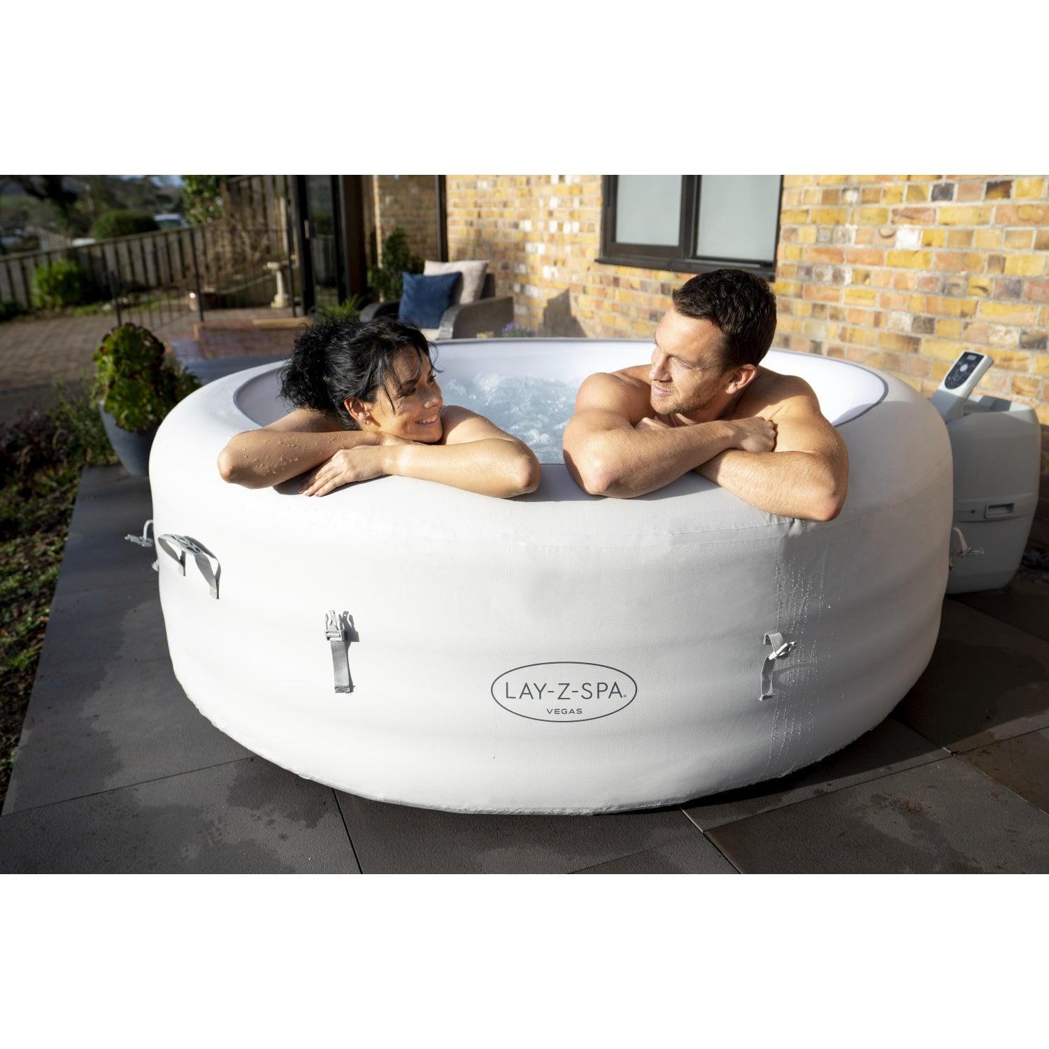 Después de un largo día, no hay nada más relajante que sumergirse en agua tibia y burbujeante en su propio patio trasero. El Jacuzzi Lay-Z-Spa® Vegas AirJet™ brinda una experiencia de masaje relajante para hasta 6 personas y, al mismo tiempo, es rápido y fácil de configurar. Simplemente conecte la bomba y observe cómo se infla.