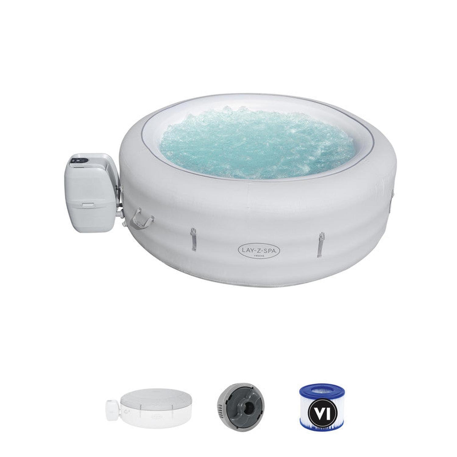 • Contenido: 1 spa, 1 cubierta para spa, 1 bomba de spa, 1 dispensador ChemConnect™, cartucho de filtro (VI), parche de reparación, sistema AirJet™
