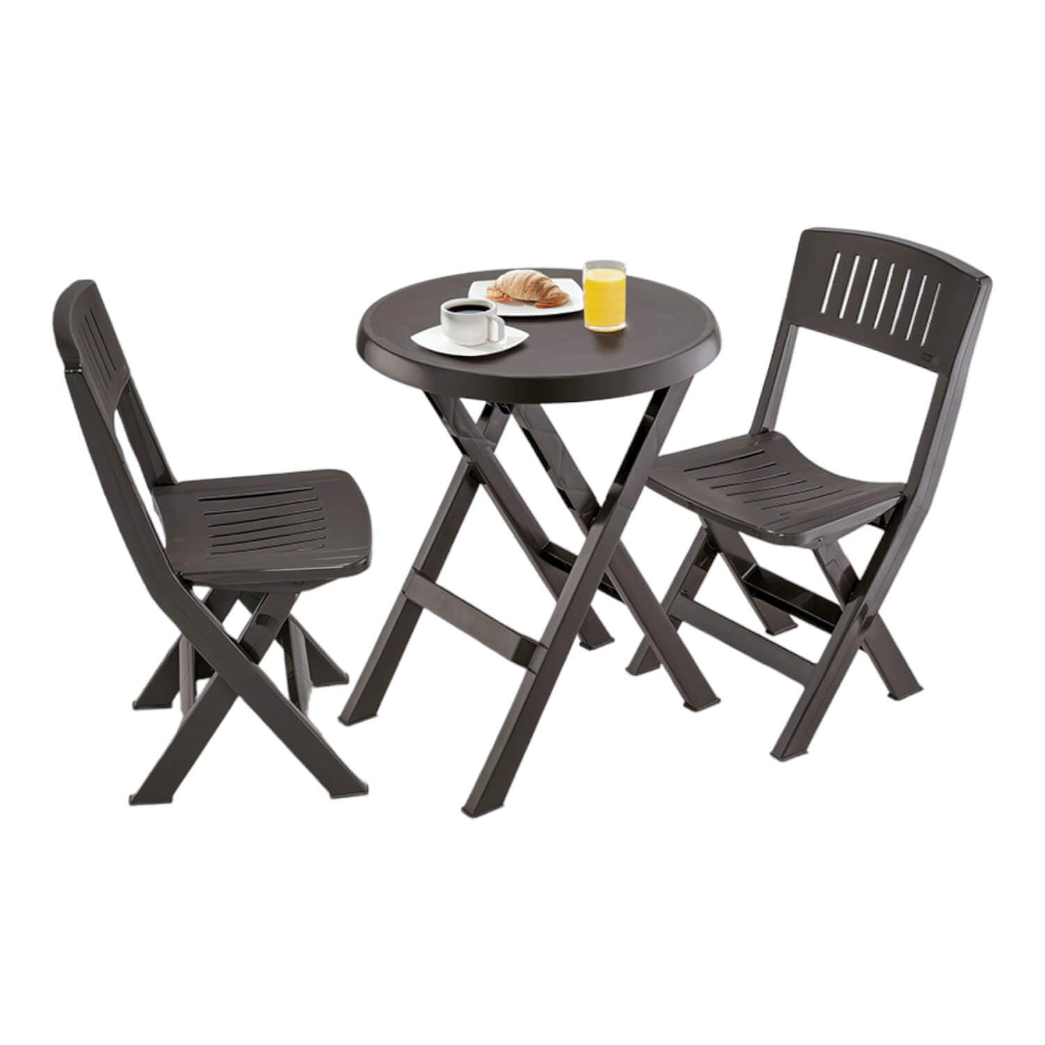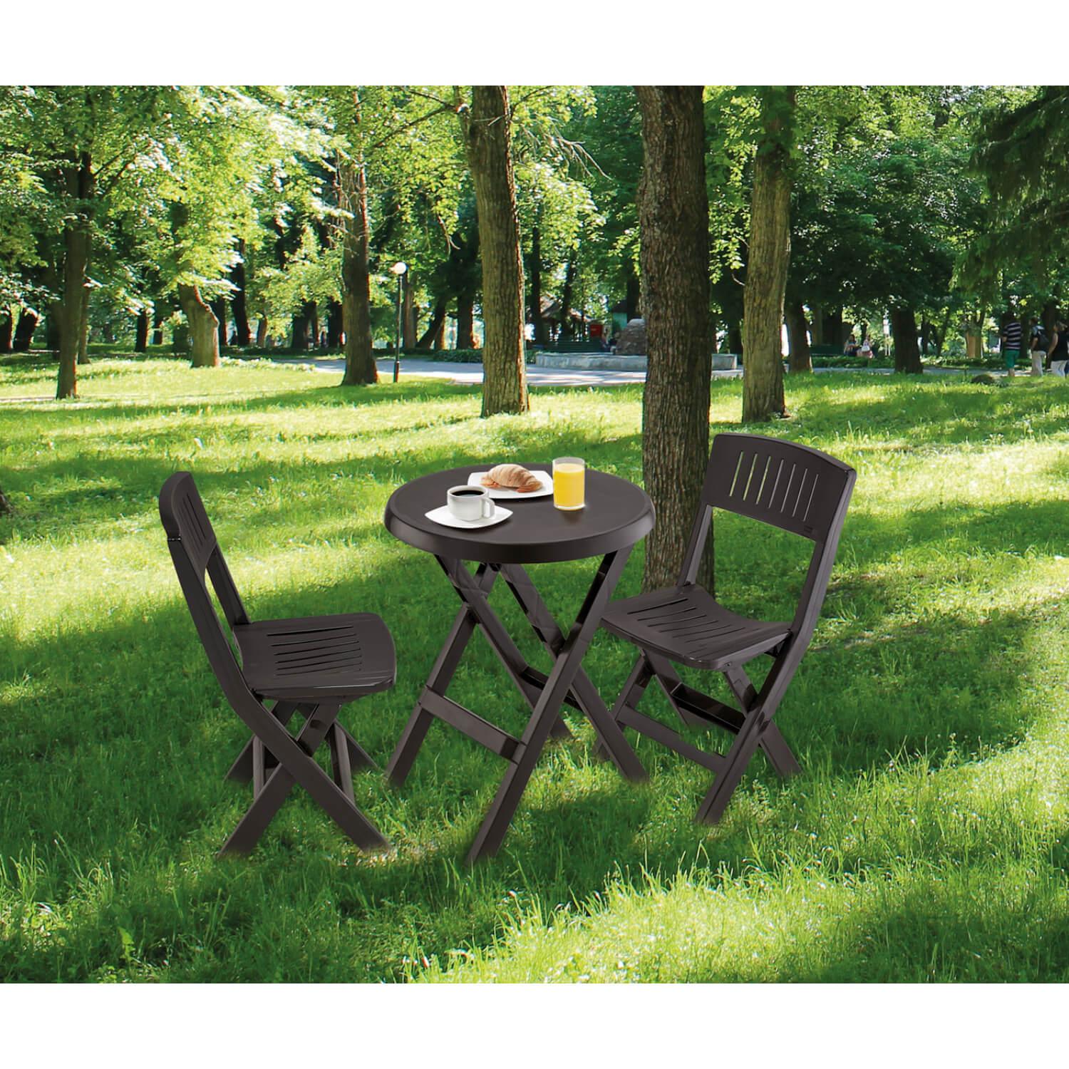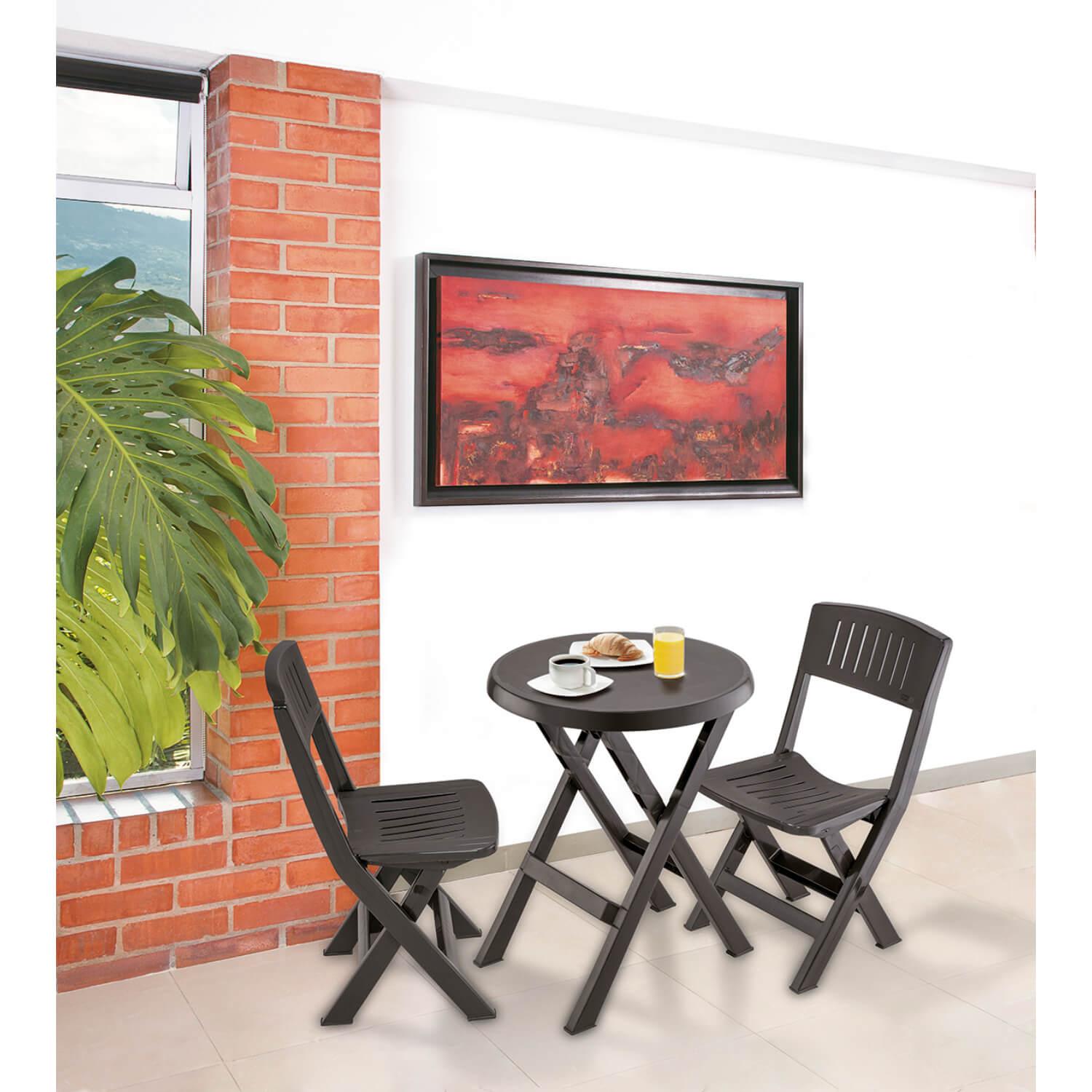 Este Set de mesa y sillas se mantiene en las mejores condiciones durante mucho tiempo, porque el plástico resiste la decoloración y es estable ante los rayos UV, para evitar la formación de grietas y la sequedad. El estilo sencillo realza cualquier balcón o patio. Además, es muy fácil de limpiar y te durará muchos años.