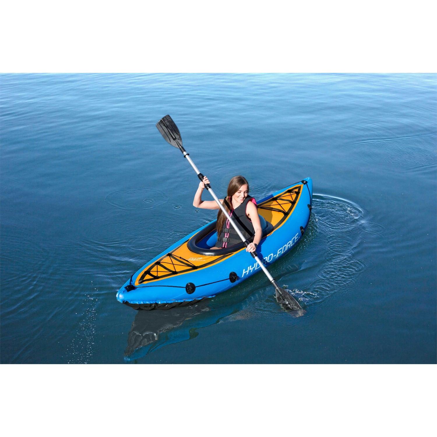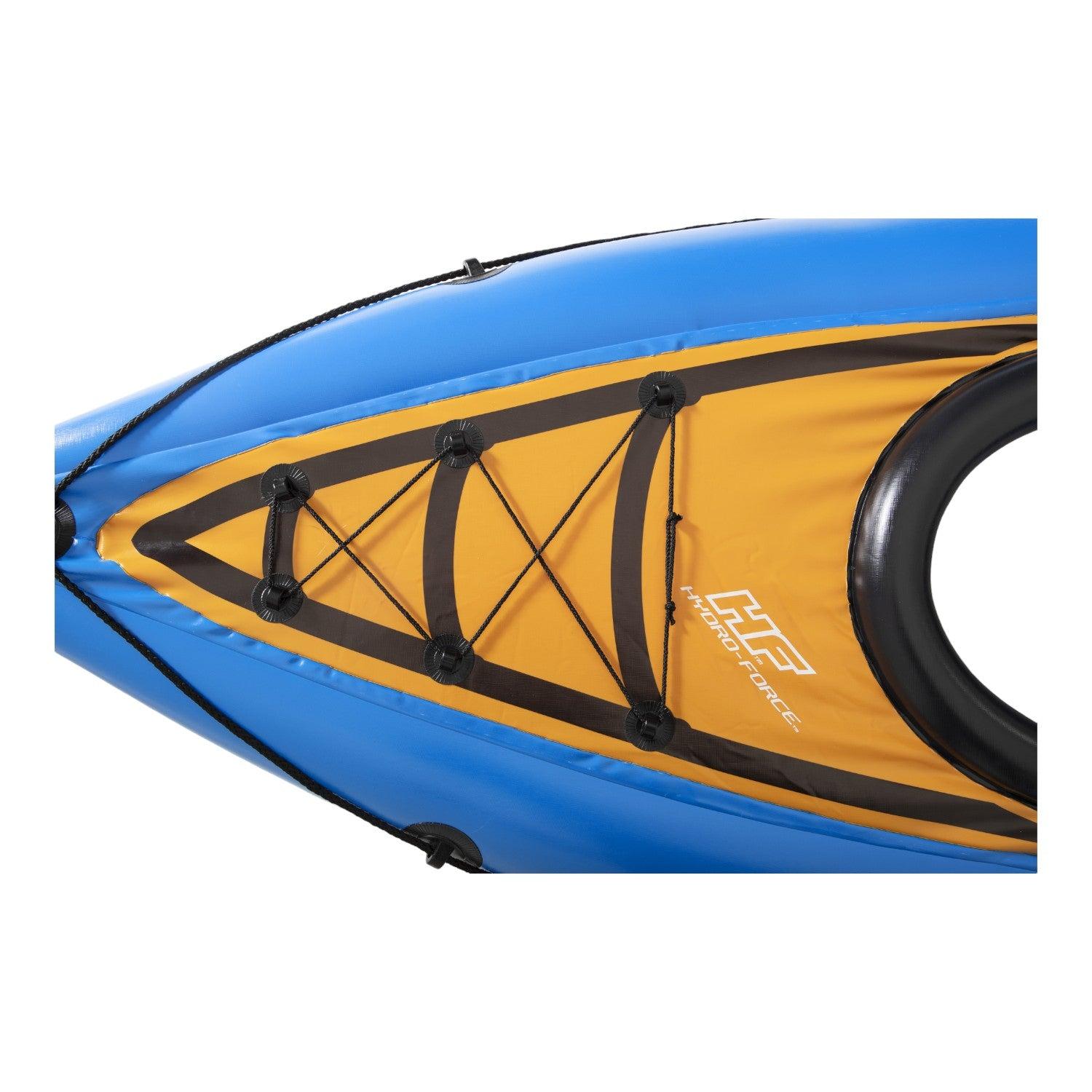 Lleva tu verano al siguiente nivel y navega por el lago, el río o el océano en el kayak inflable Champion Hydro-Force™ Cove. Este set viene con todo lo que necesitas para un gran día en el agua: un remo, una bomba y un parche. Diseñado para una configuración rápida y fácil, este kayak liviano es fácil de inflar usando la bomba manual Air Hammer™ incluida. La cabina de tamaño cómodo cuenta con un asiento ajustable con respaldo para mayor soporte. Este kayak también tiene mucho espacio de almacenamiento para bocadillos, equipo adicional o cualquier otra necesidad de agua. Además, navega por el agua con facilidad utilizando las aletas en la parte inferior que son extraíbles para garantizar un almacenamiento fácil y compacto. Transportar este kayak es muy fácil con la cuerda de agarre envolvente. Fácil de usar y fácil de almacenar: saca a la luz tu explorador interno con el kayak inflable Champion Hydro-Force Cove.