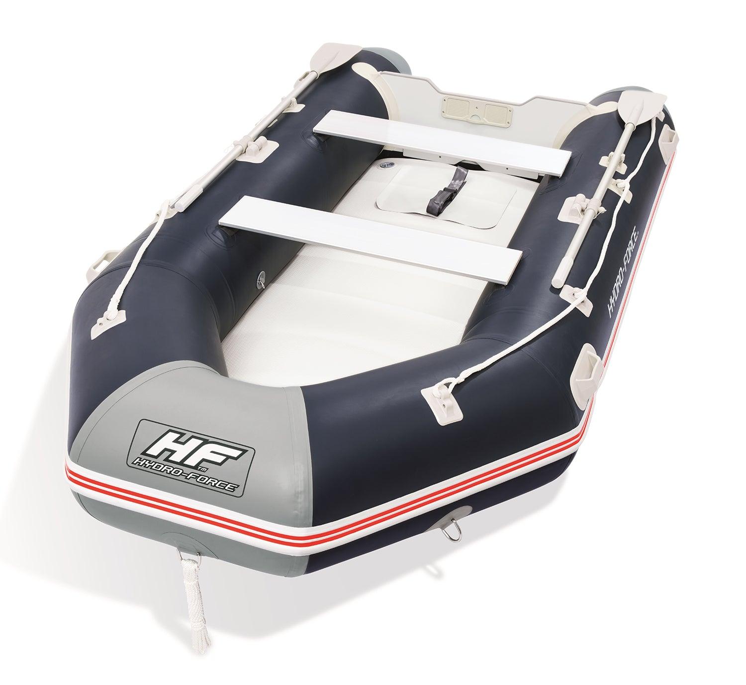• Contenido: Un bote, un par de remos, una bomba de mano, un manómetro, una bolsa de transporte, kit de reparación