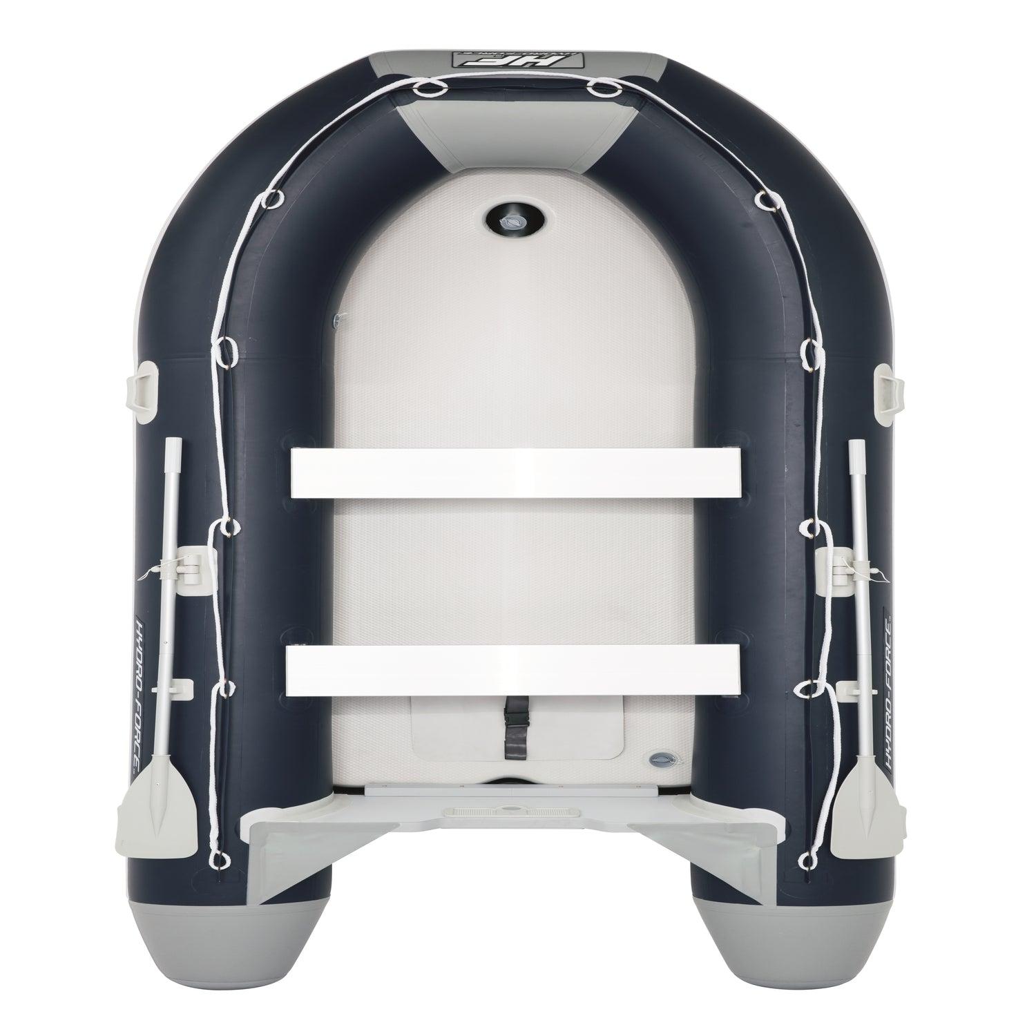 La lancha deportiva inflable Hydro-Force™ Sunsaille está diseñada para 6 personas y te brindará increíbles aventuras de fin de semana, aunque también está pensada para un uso prolongado y regular. Si quieres dotar a esta lancha de más potencia, puedes colocar un motor de 25 HP en su correspondiente soporte, gracias al travesaño de tablero marino contrachapado. Las 3 cámaras de aire brindan a esta lancha mayor flotabilidad y estabilidad en el agua, y minimizan el impacto de posibles perforaciones. Esta lancha está fabricada con tecnología Tritech™, un material reforzado de 3 capas con un núcleo de malla de poliéster alojado entre 2 capas de PVC, lo que la dota de mayor resistencia sin que resulte pesada o voluminosa. La quilla del barco apunta al agua, lo que proporciona más velocidad y capacidad para controlar las olas.