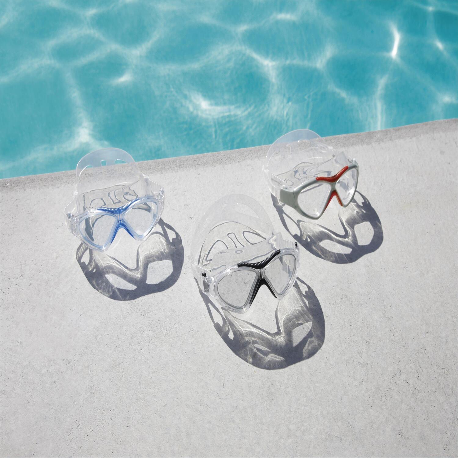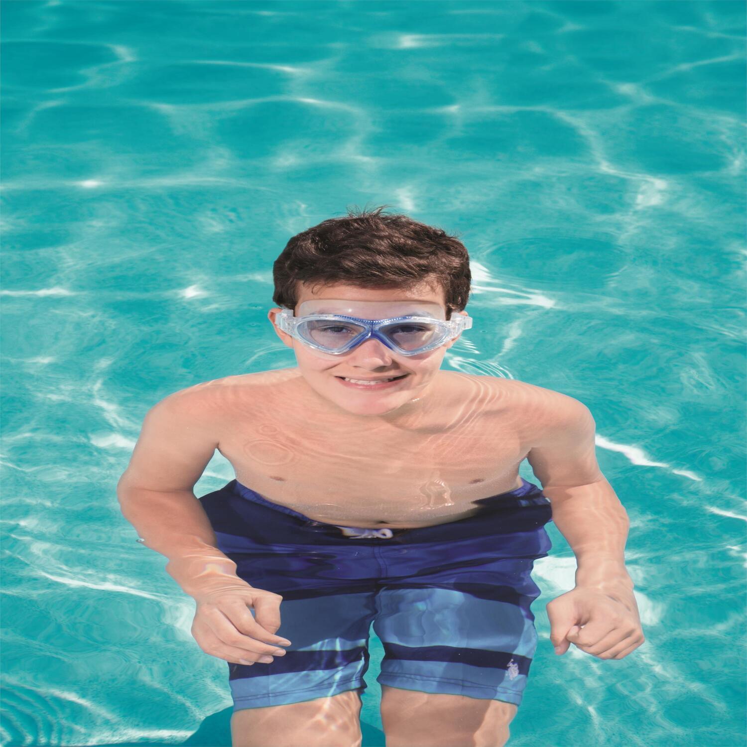 • Medidas: 17 x 7 x 7 cm• Peso: 0.129 kg• Copas oculares de silicona suaves y de ajuste cómodo• Lentes de policarbonato reflectantes y espejadas con revestimiento protector UV• Revestimiento antivaho• Correa de silicona para la cabeza• 100% libre de látex• Contenido: Un par de gafas• Marca: Bestway”