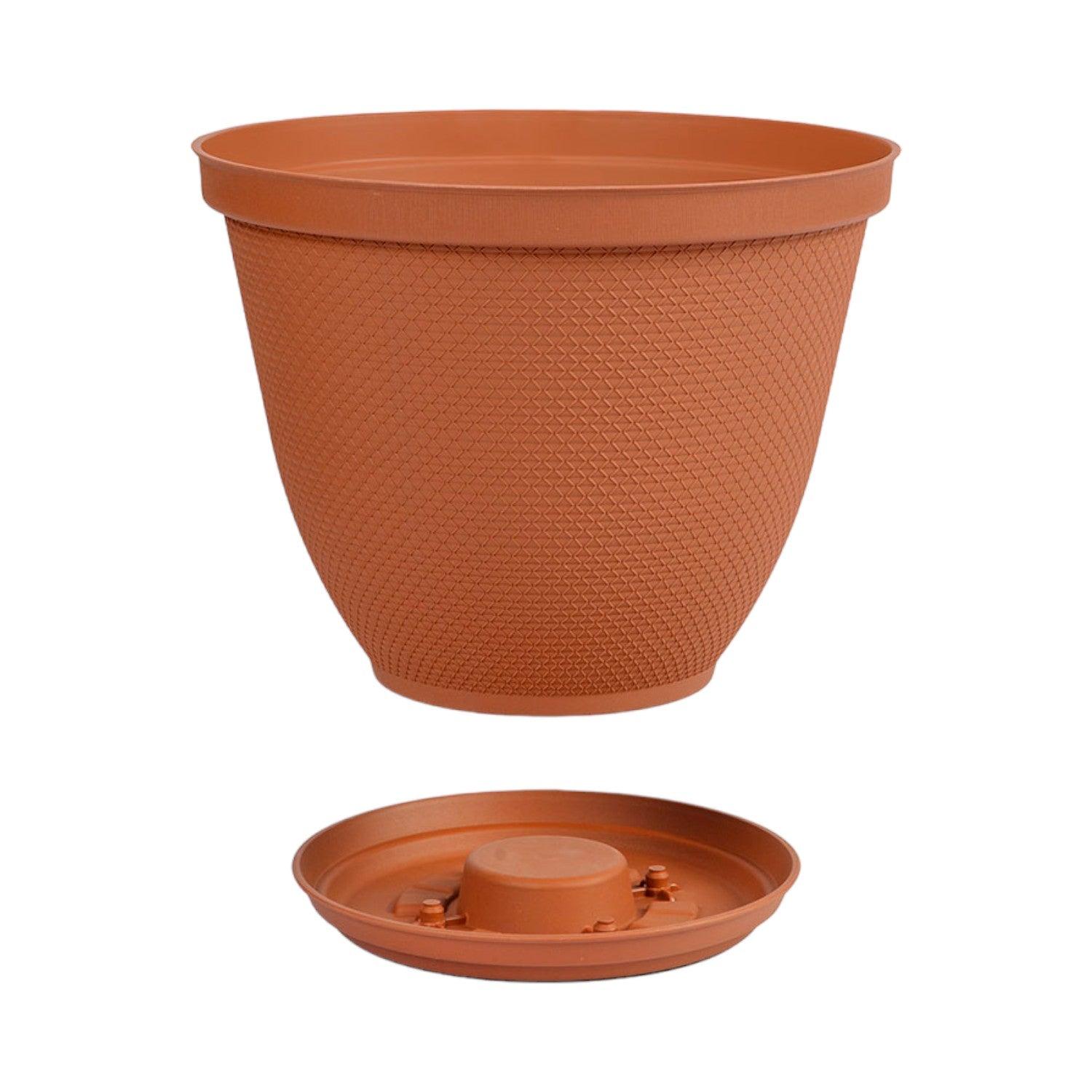 Añade un toque de elegancia a tu jardín o terraza con el Macetero Plástico con Plato Redondo Rafia de Rimax. Con un diámetro de 35 cm, este matero combina estilo y funcionalidad. Fabricado con plástico de alta calidad, incluye un plato para evitar derrames, manteniendo tus espacios limpios y organizados.