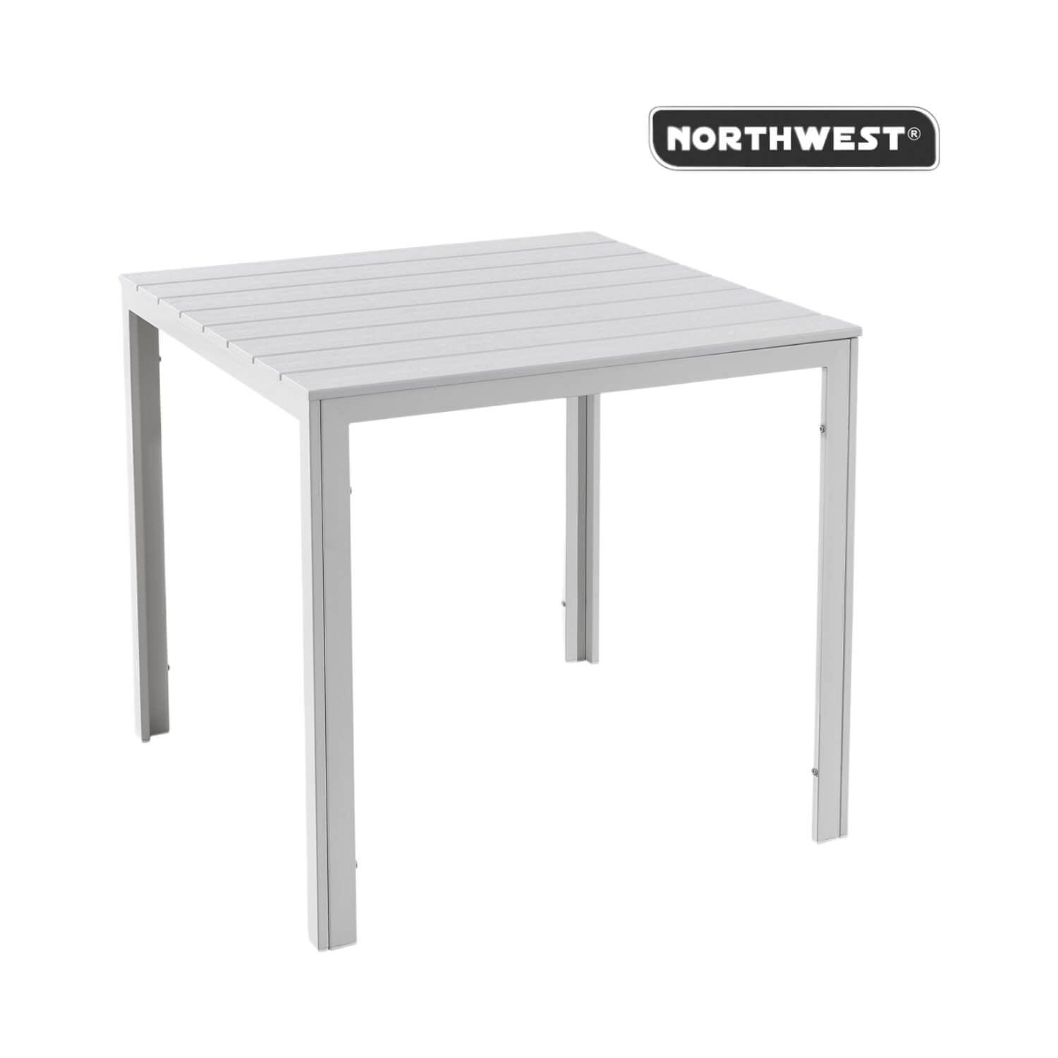 Sumérgete en la elegancia con Mesa Cuadrada 78X78X74 cm Polywood impermeable Blanco Northwest. Su diseño de listones de madera en blanco crea un ambiente encantador. Resistente (soporta hasta 100kg) y ligera (10kg), es perfecta para 4 personas. Hecha de polietileno y metal, combina estilo y durabilidad. Unisex y versátil, es ideal para cualquier ocasión. Con Northwest, cada reunión se transforma en un momento inolvidable.