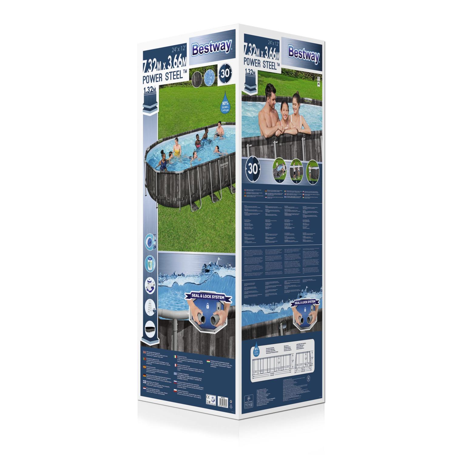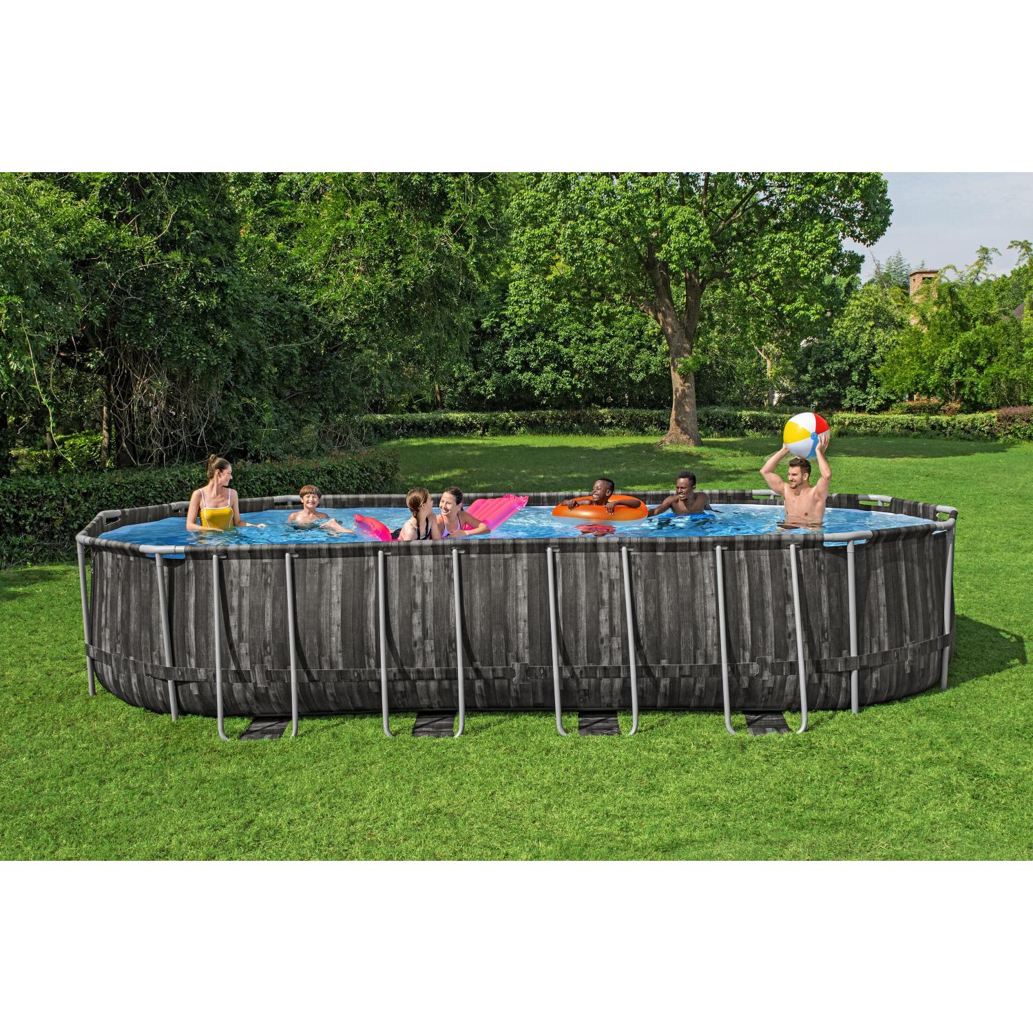 Las piscinas Power Steel™ de Bestway® son la mejor opción para familias debido a su diseño de estructura de acero reforzado, diseñado para lograr máxima resistencia y durabilidad. Además, el montaje sin herramientas hace que estas piscinas sean una excelente opción para las necesidades de piscinas en el patio trasero. El revestimiento Tritech™ duradero y resistente a las perforaciones y la estructura de acero resistente a la corrosión con Seal & Lock System™ hacen que esta serie de piscinas sea fuerte y resistente para usar en el patio trasero durante toda la temporada. Los modelos con forma ovalada brindan un ajuste más conveniente para varios patios traseros y también requieren menos agua sin sacrificar el área de la piscina.