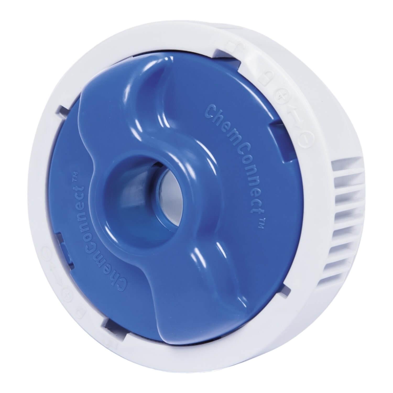 • El dispensador ChemConnect™ mantiene el agua de la piscina limpia y saludable. Completamente ajustable, simplemente agregue tabletas de cloro multifunción y ajuste el dispensador para que agregue la cantidad justa de químicos a la piscina