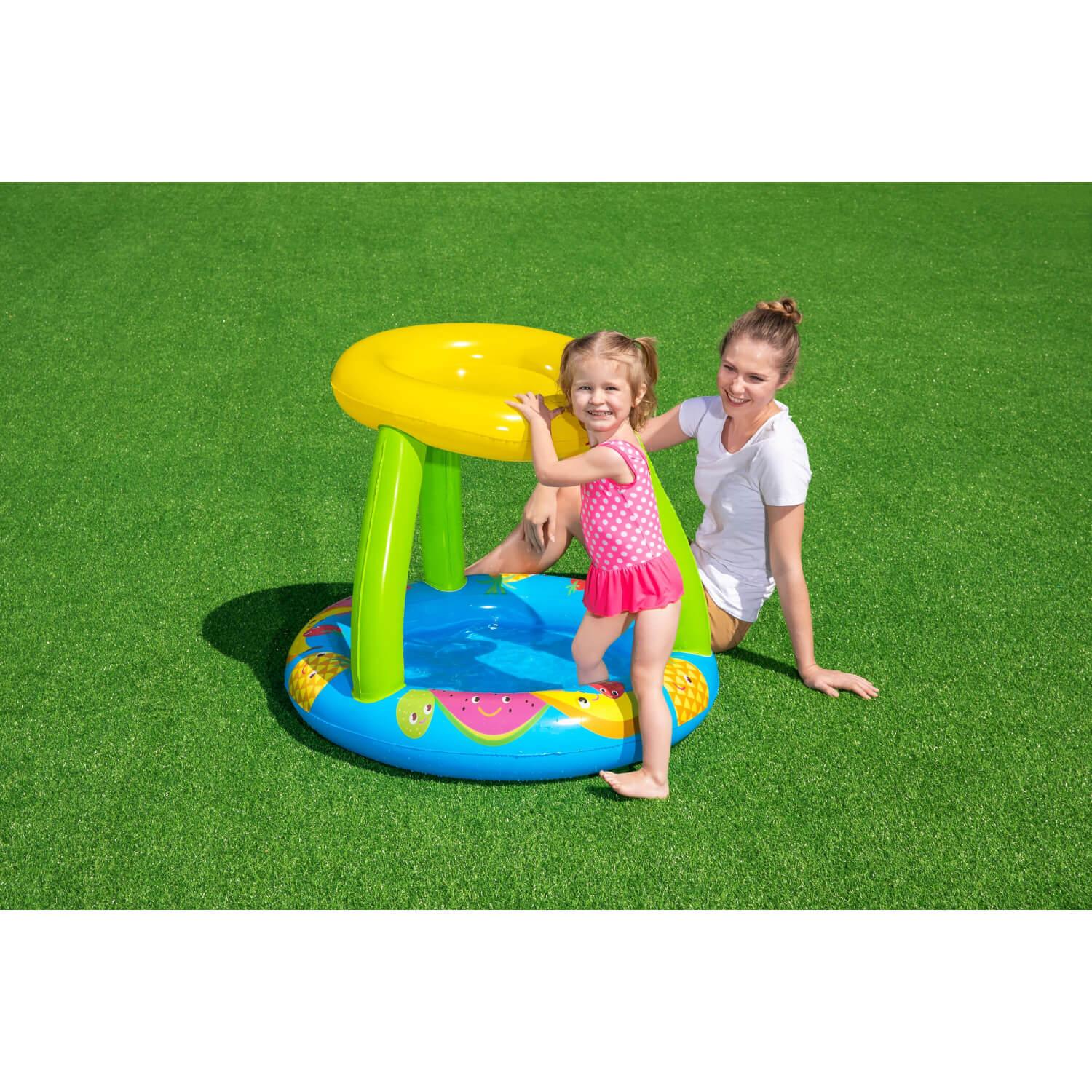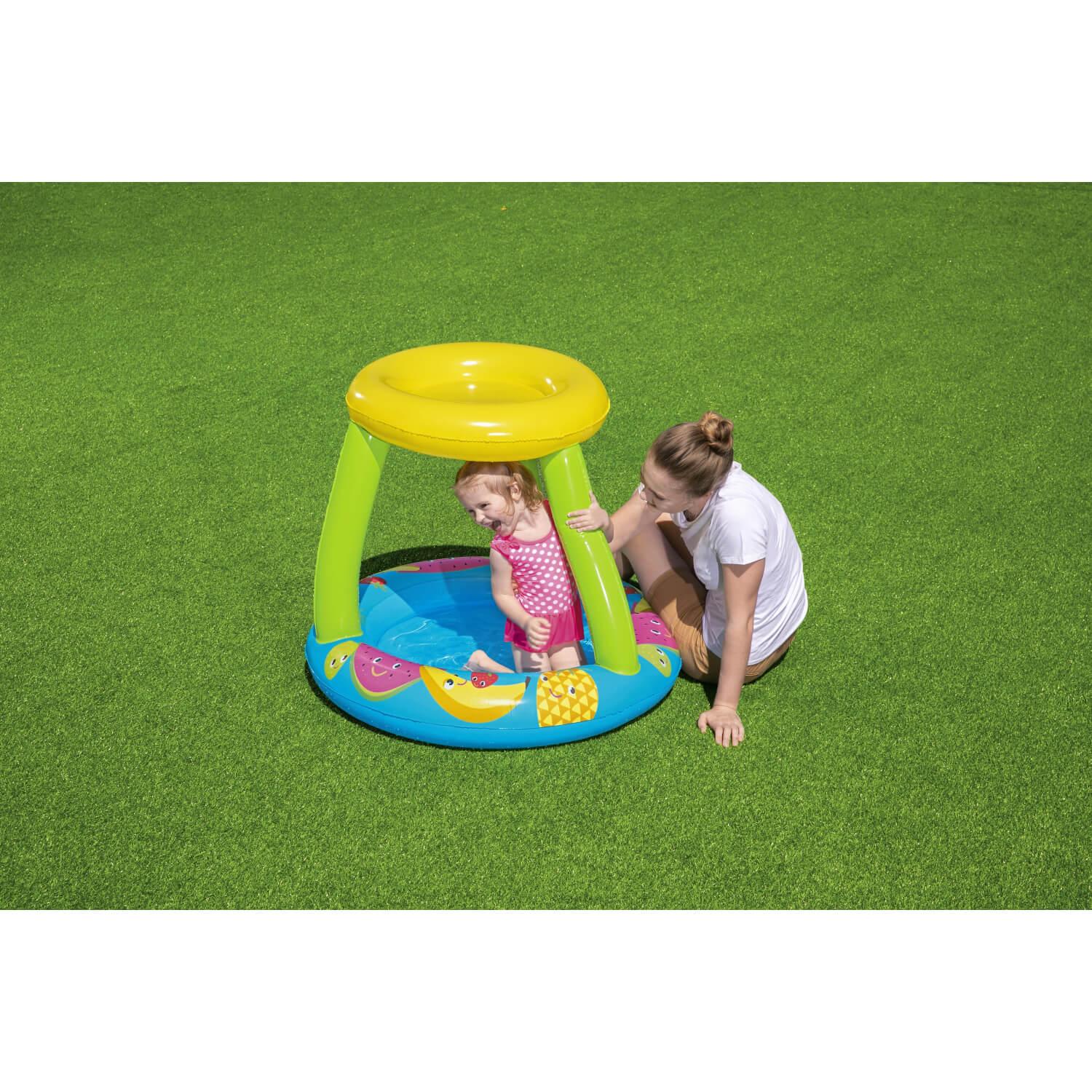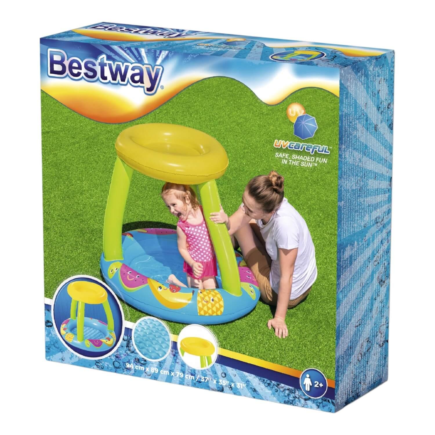 Pase un día fantástico al sol con su pequeño en la piscina para bebés Bestway® UV Careful™ Fruit Canopy. Con un fondo suave e inflable, ésta piscina de juegos puede brindarle a su hijo horas y horas de diversión. Además, el toldo parasol con UV Careful incorporado brinda protección adicional contra el sol para garantizar que los niños se mantengan frescos y seguros. ¡Lleve a sus hijos afuera y al agua con la piscina para bebés Bestway UV Careful Fruit Canopy!