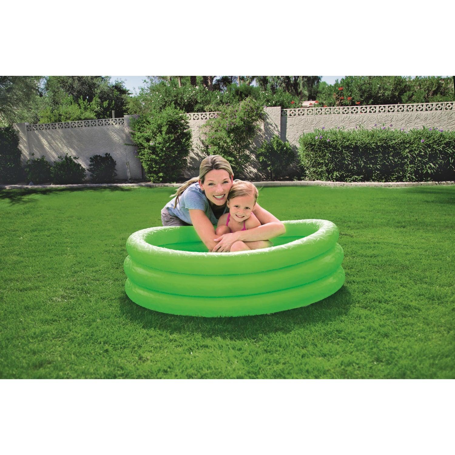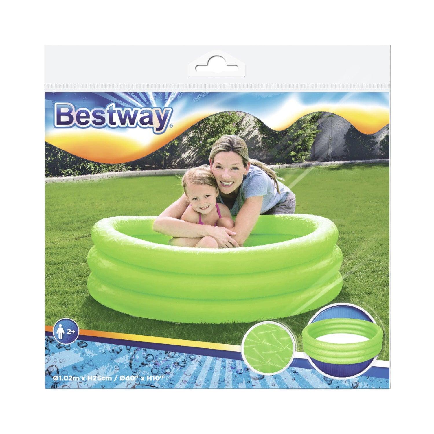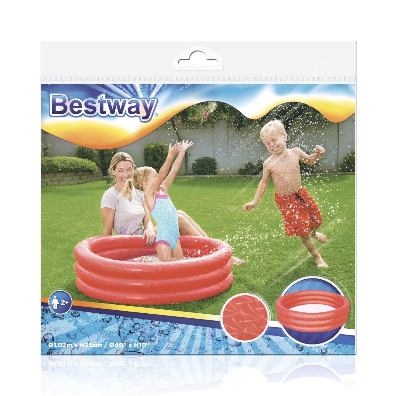 Diseñada para que los niños correteen y disfruten fuera casa, ¡esta piscina de juegos tiene unas dimensiones de Φ102 x H 25 cm y es un producto de calidad probada pensado únicamente para divertir! Esta piscina de juegos está disponible en 3 brillantes colores distintos. Tres anillos del mismo tamaño hacen que sea la piscina perfecta para los más peques. ¡Esta piscina de juegos hará que se diviertan chapoteando bajo el sol como nunca!
