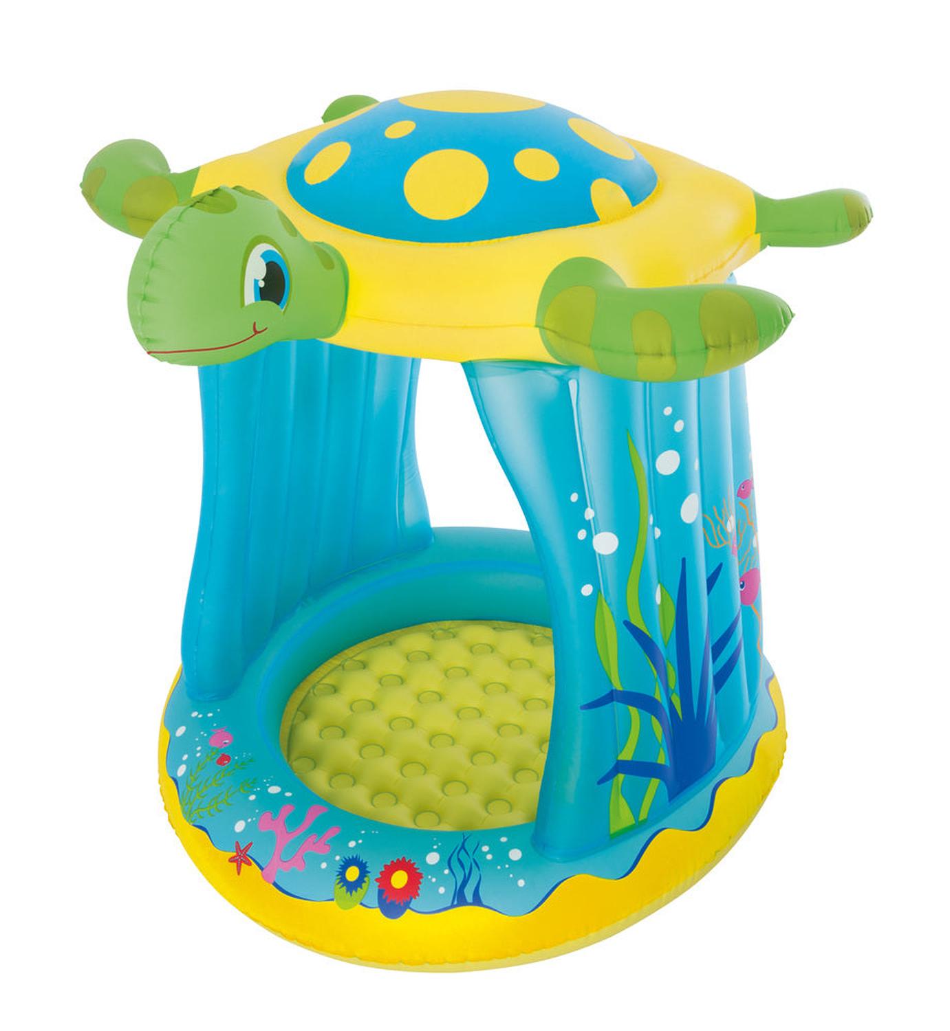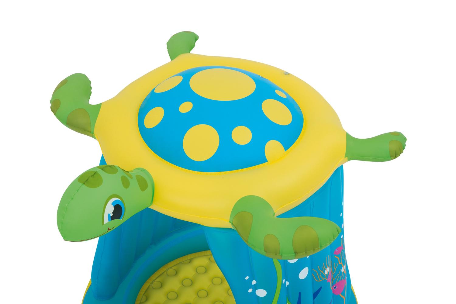 Diseñada para que los peques jueguen y se entretengan fuera de casa, ¡la piscina de juegos Tortuga es un producto de calidad probada pensado únicamente para divertir! Este inflable en forma de tortuga dispone de parasol para que los más peques estén fresquitos mientras chapotean en su nuevo entorno acuático. El suelo inflable es muy blando y proporciona confort adicional mientras fantasean con explorar el fondo marino. ¡Esta piscina de juegos Tortuga hará que se diviertan chapoteando bajo el sol como nunca!