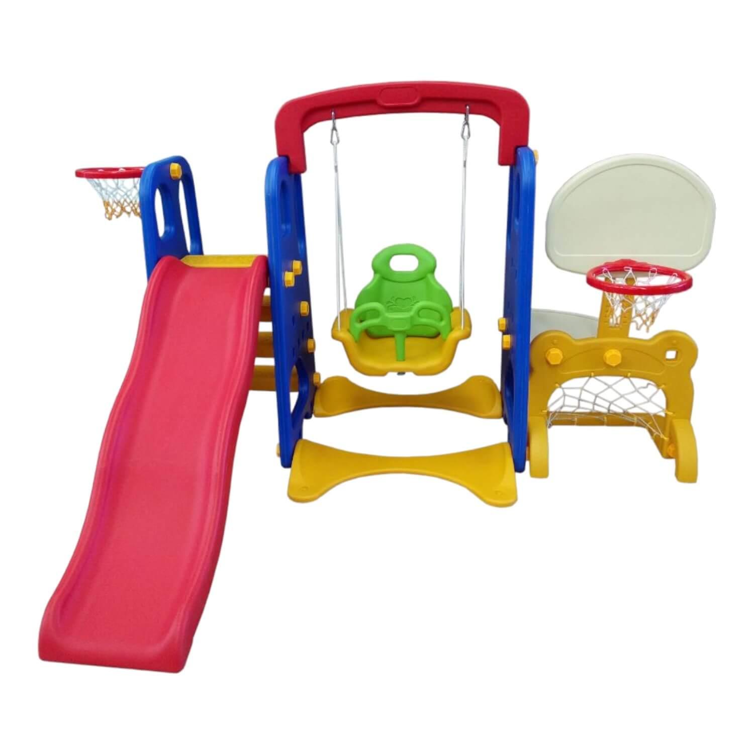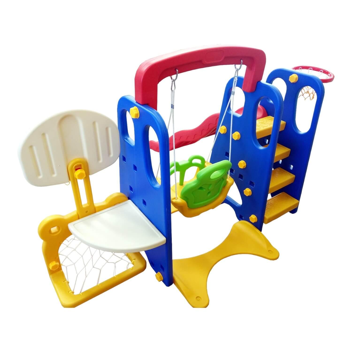 5 funciones en una sola pieza para satisfacer las necesidades de sus niños de resbalin, columpio, baloncesto, fútbol y mesa