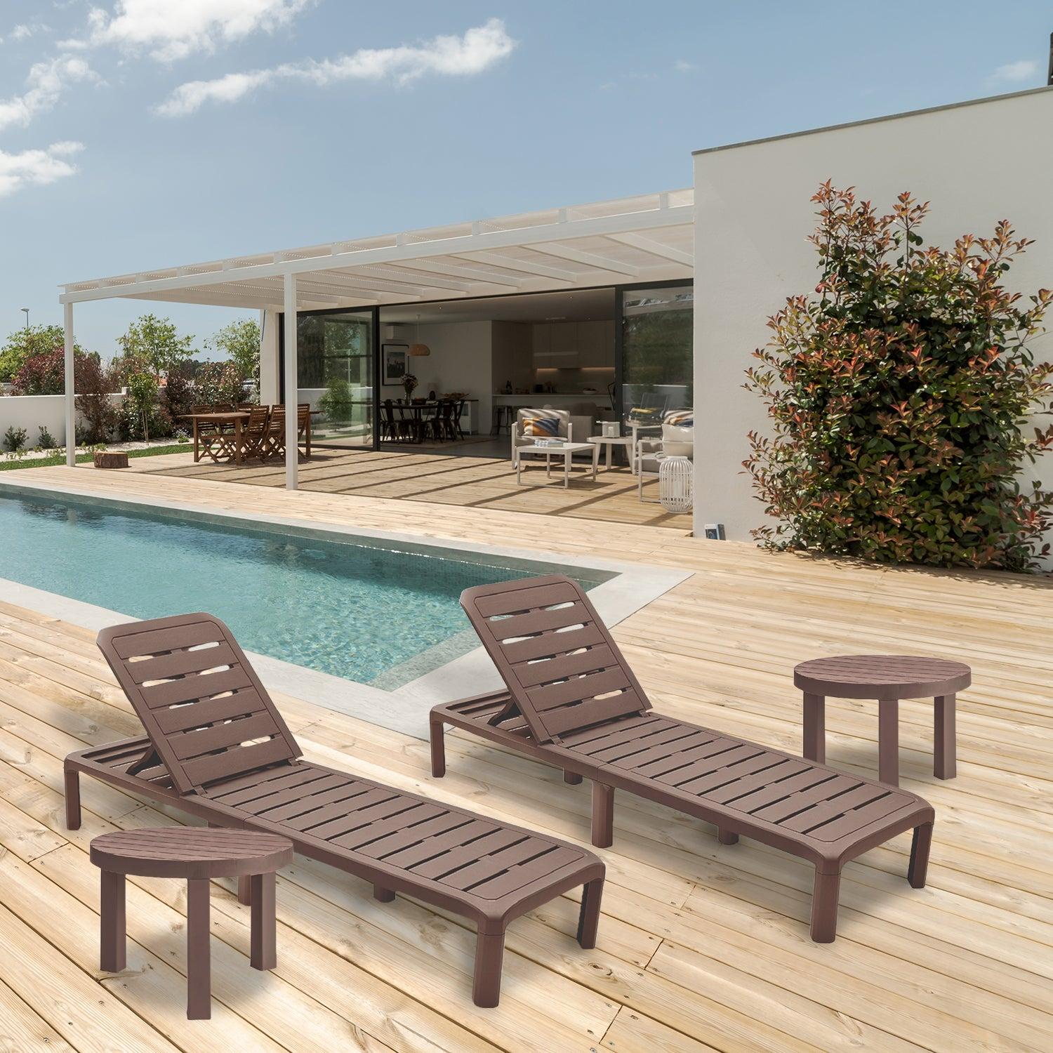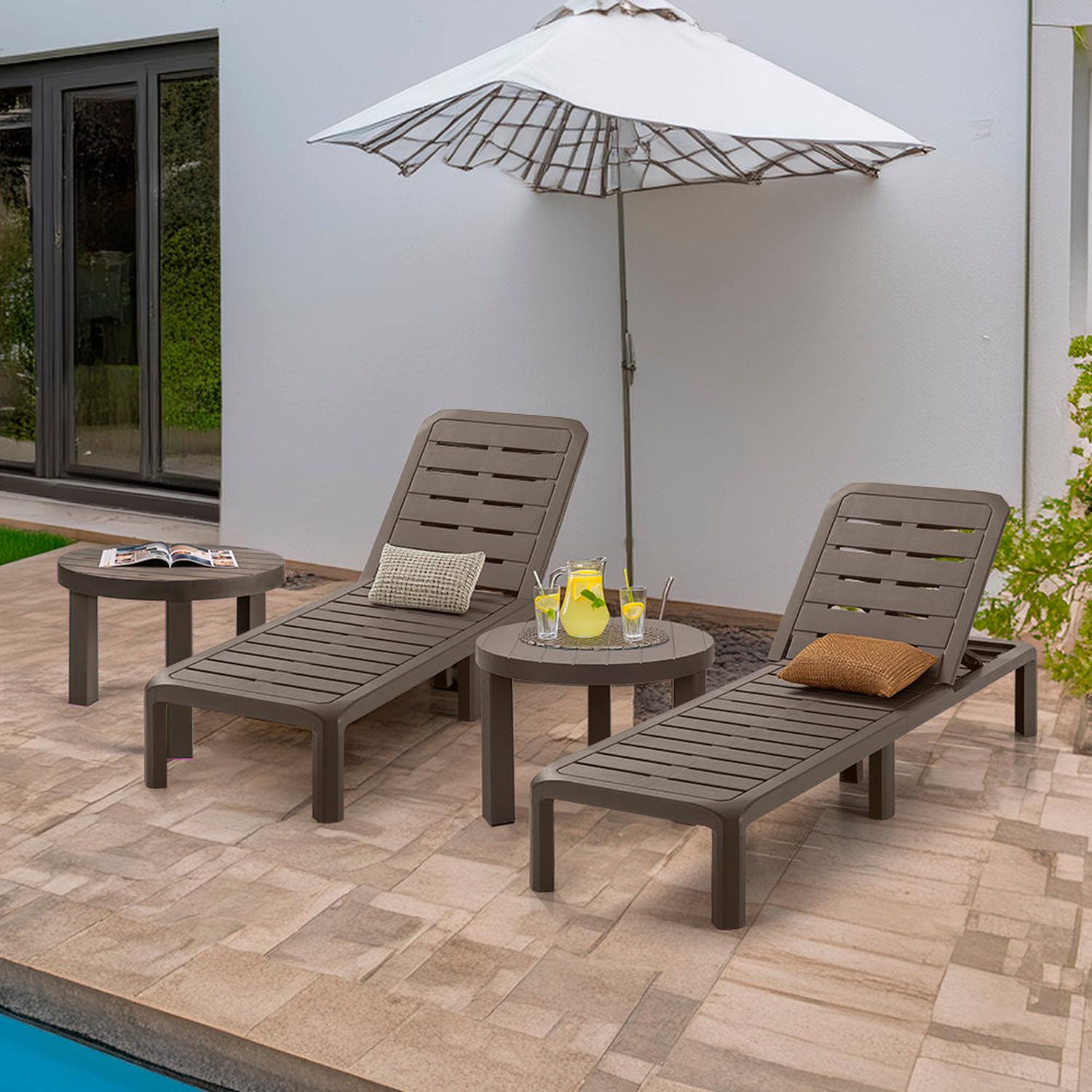 Eleva tu experiencia al aire libre con el Set de 2 Reposeras y 2 Mesas Café Baru de Rimax. Este conjunto práctico y elegante incluye dos reposeras reclinables y dos mesas auxiliares, todos en un sofisticado color café. Fabricados con plástico de alta calidad, estos muebles son duraderos y resistentes a las condiciones climáticas. Las reposeras están diseñadas para ofrecer la máxima comodidad, mientras que las mesas proporcionan superficies prácticas para tus bebidas y objetos personales. Perfecto para jardines, terrazas o patios, este set combina funcionalidad y estilo para tus momentos de relajación al aire libre.